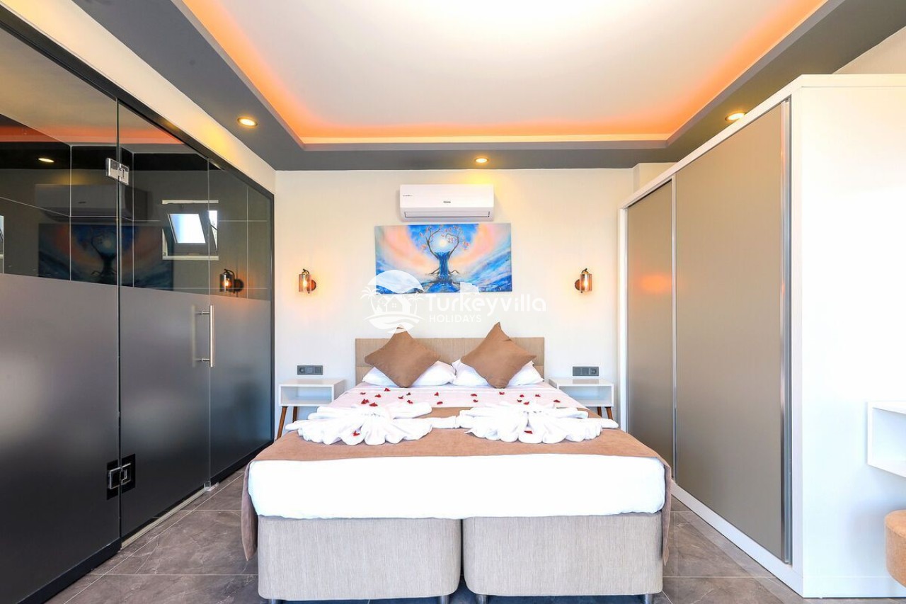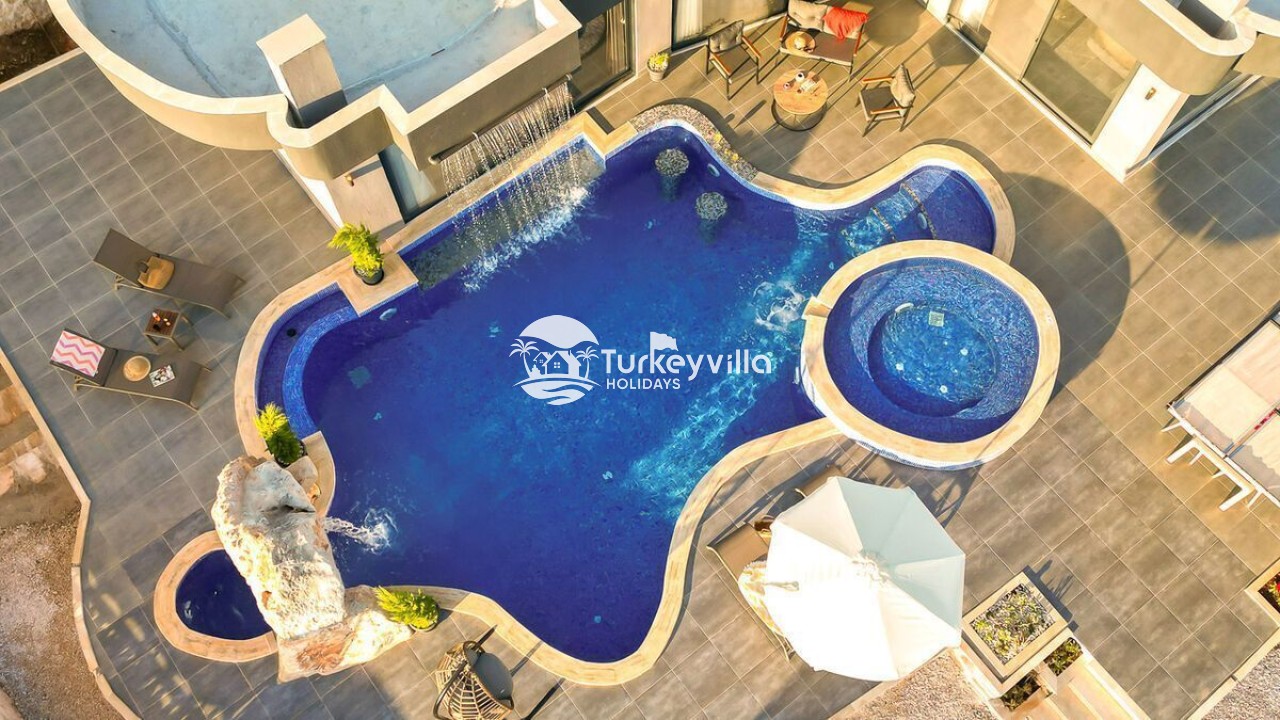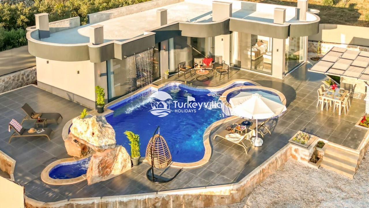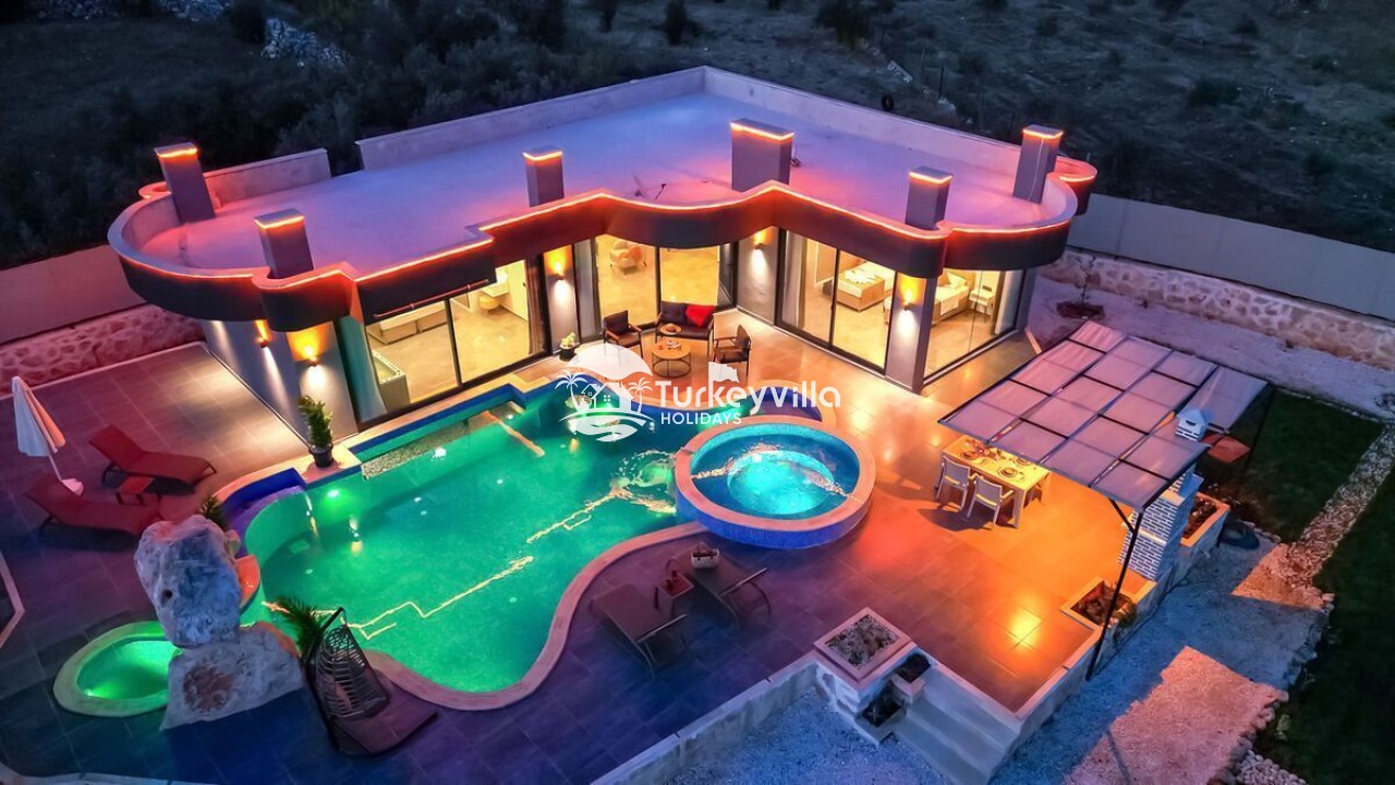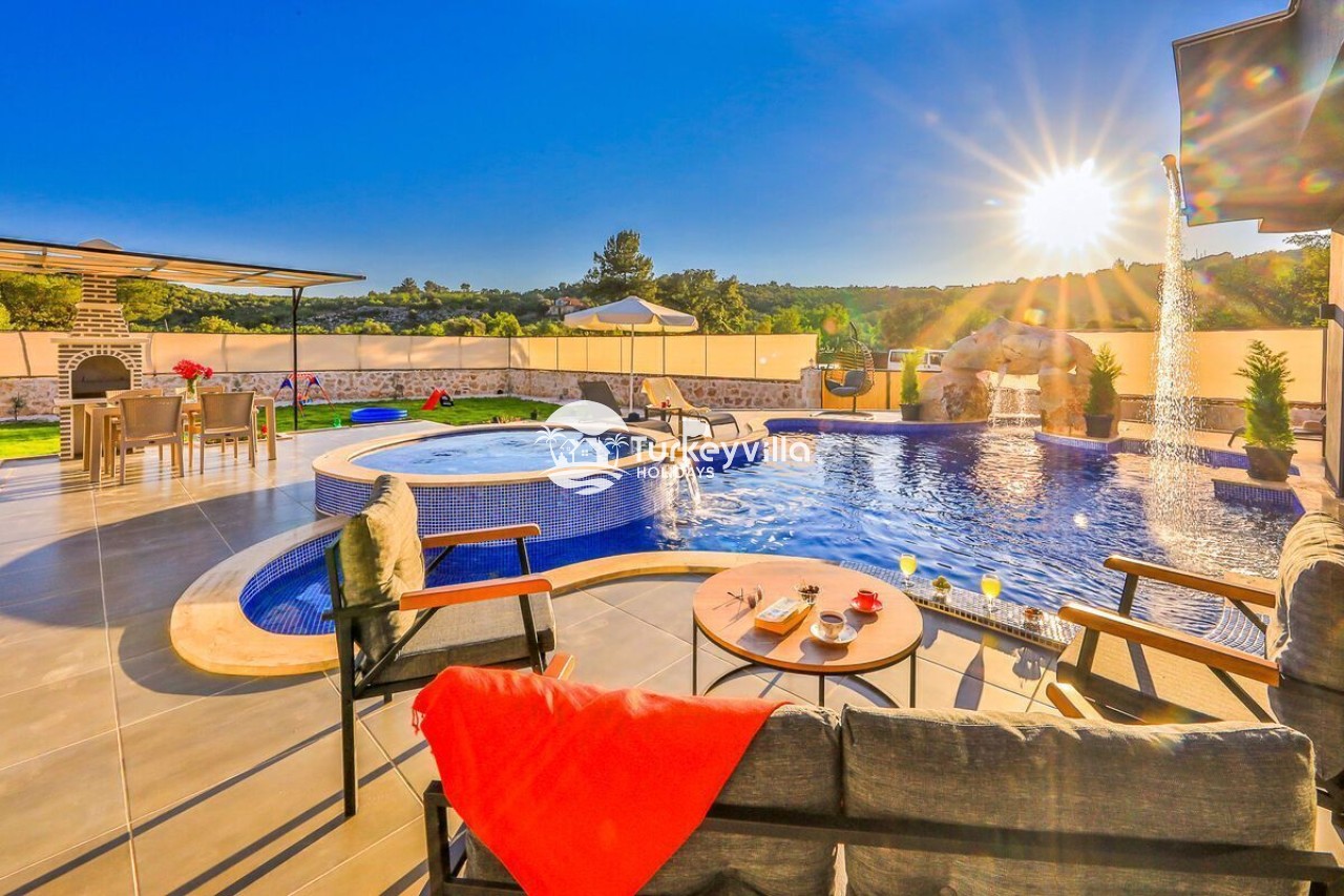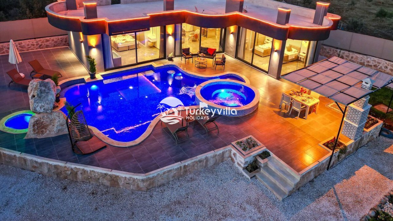 Es ist eine Mietvilla mit 2 Schlafzimmern und einer Unterkunftskapazität von 4 Personen in der Gegend von Kas Belenli. Es wurde sorgfältig mit modernen und komfortablen Möbeln gestaltet und heißt Sie, seine Gäste, auf die bestmögliche Weise willkommen. Im Inneren der Villa Agarta wurden alle Details berücksichtigt. Auf der Poolterrasse und im Garten mit modernen und angenehmen Gartenmöbeln können Sie Zeit mit Ihrer Familie und Ihren Lieben verbringen.