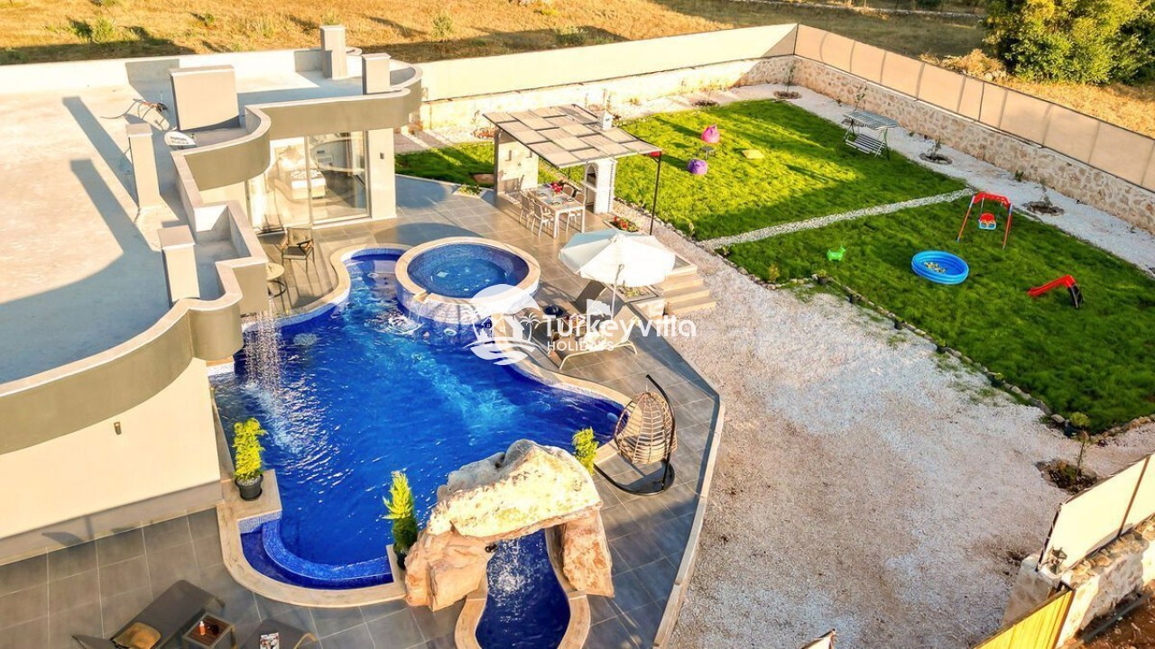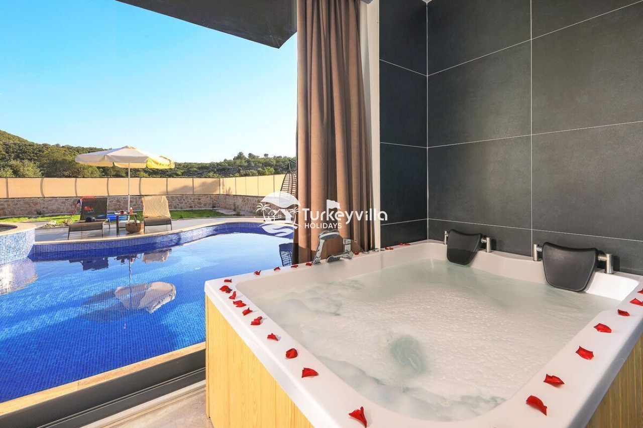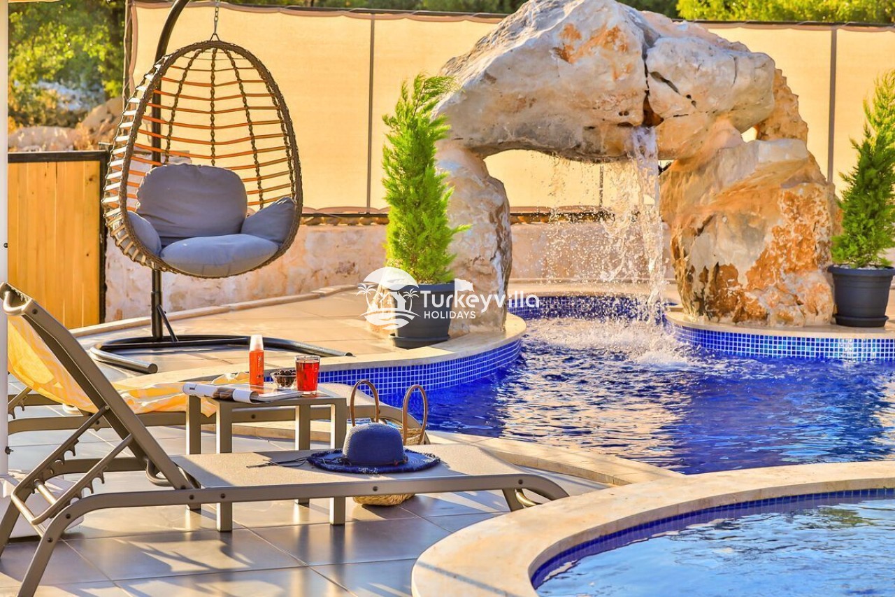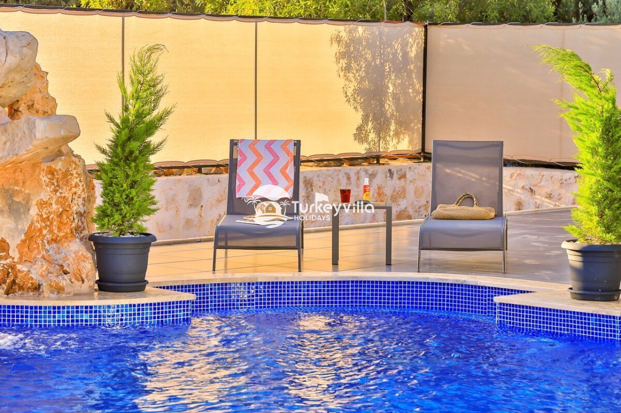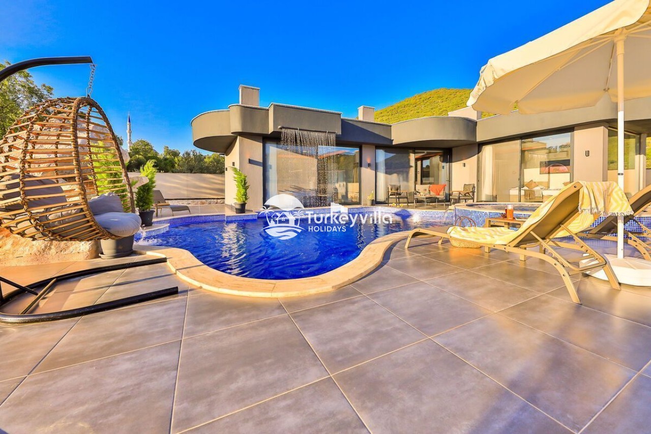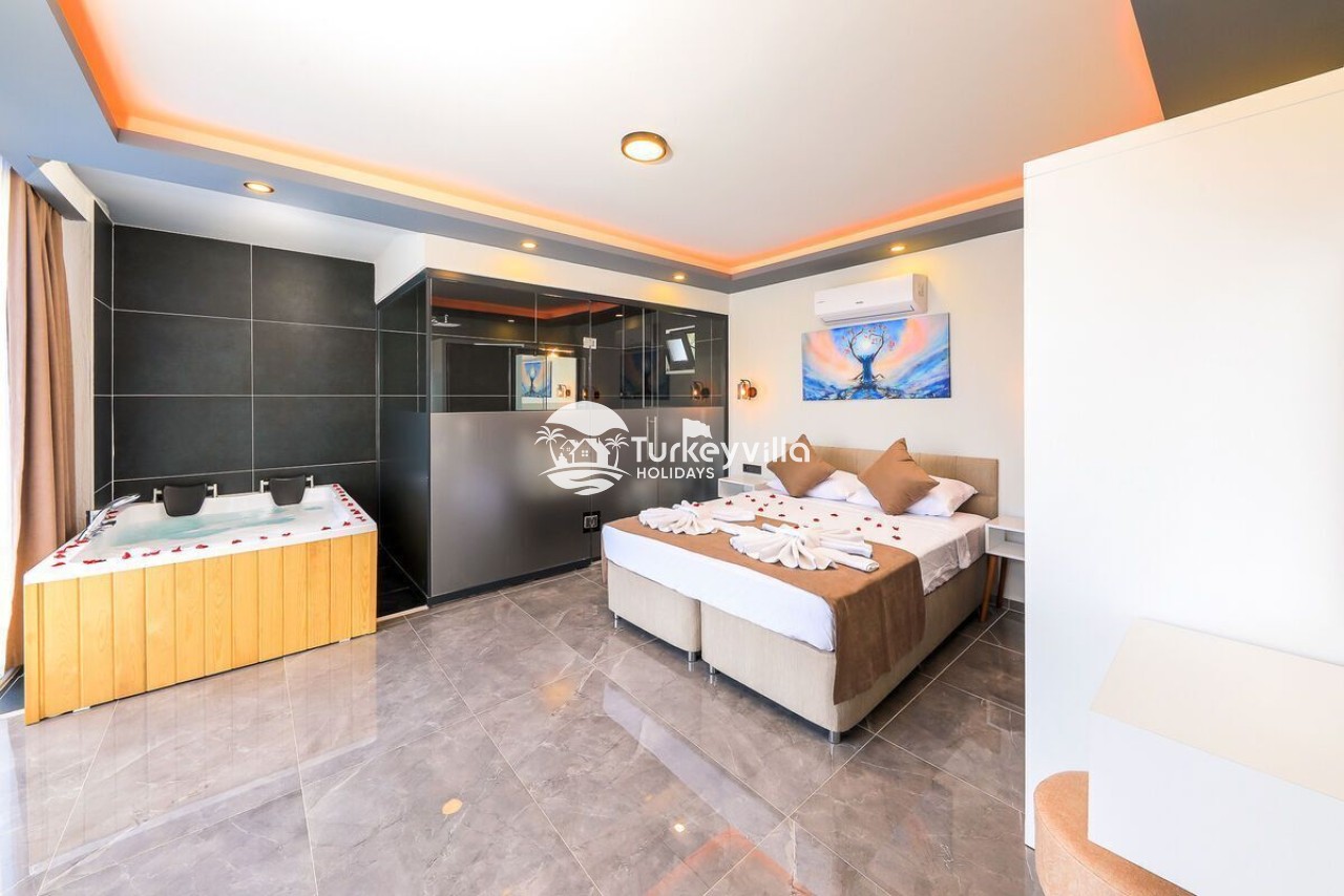Es ist eine Mietvilla mit 2 Schlafzimmern und einer Unterkunftskapazität von 4 Personen in der Gegend von Kas Belenli. Es wurde sorgfältig mit modernen und komfortablen Möbeln gestaltet und heißt Sie, seine Gäste, auf die bestmögliche Weise willkommen. Im Inneren der Villa Agarta wurden alle Details berücksichtigt. Auf der Poolterrasse und im Garten mit modernen und angenehmen Gartenmöbeln können Sie Zeit mit Ihrer Familie und Ihren Lieben verbringen.