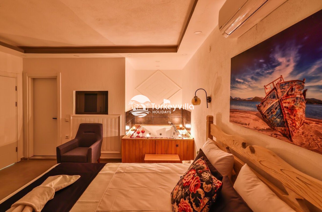 Villa Asar, die Stadt Kaş, berühmt für ihre einzigartige Natur, ihre historische Struktur und ihr türkisfarbenes Meer, ist vor allem in den Sommermonaten zu einem beliebten Reiseziel für Urlauber geworden. Die Villa Asar liegt inmitten dieser Naturschönheiten und bietet Ihnen ein unvergessliches Urlaubserlebnis im Dorf Bayındır. Unsere Villa erstreckt sich über eine große Fläche und besteht aus 2 Schlafzimmern, 2 Bädern, einer Küche und einem Wohnzimmer. Unsere Villa, in der jedes Detail sorgfältig durchdacht wurde, bietet Ihnen die Möglichkeit für einen komfortablen Urlaub. Während jedes unserer Schlafzimmer mit seinen gemütlichen und bequemen Betten zum Ausruhen einlädt, wurde das Wohnzimmer mit seinem großen und geräumigen Bereich so gestaltet, dass Sie sich an heißen Sommertagen auf die bequemste Art und Weise abkühlen können. Der Küchenbereich unserer Villa ähnelt einer vollwertigen Küche. Alle notwendigen Küchenutensilien und Geräte sind vorhanden, was für unsere kochbegeisterten Gäste ein Segen ist. Das auffälligste Merkmal der Villa Asar ist ihr herrlicher Blick auf die Natur. Während die Bäume und Blumen in unserem Garten Ihnen alle Grüntöne bieten, begrüßen sie Sie auch jeden Morgen mit dem Sonnenaufgang.