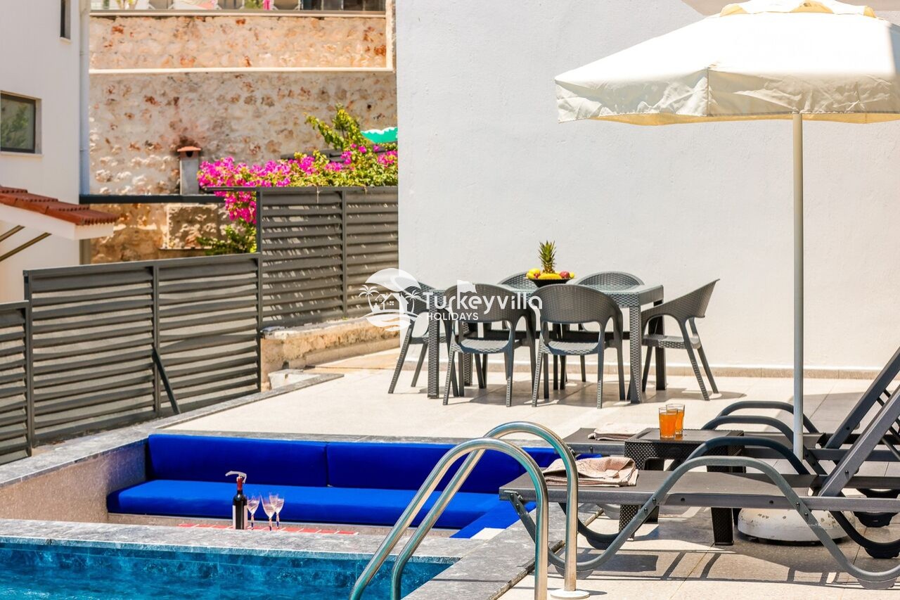 Dank ihrer zentrumsnahen Lage ist die Villa ein perfekter Ausgangspunkt, um Kalkan zu erkunden, und gleichzeitig ein ruhiger Rückzugsort für einen erholsamen und romantischen Urlaub.