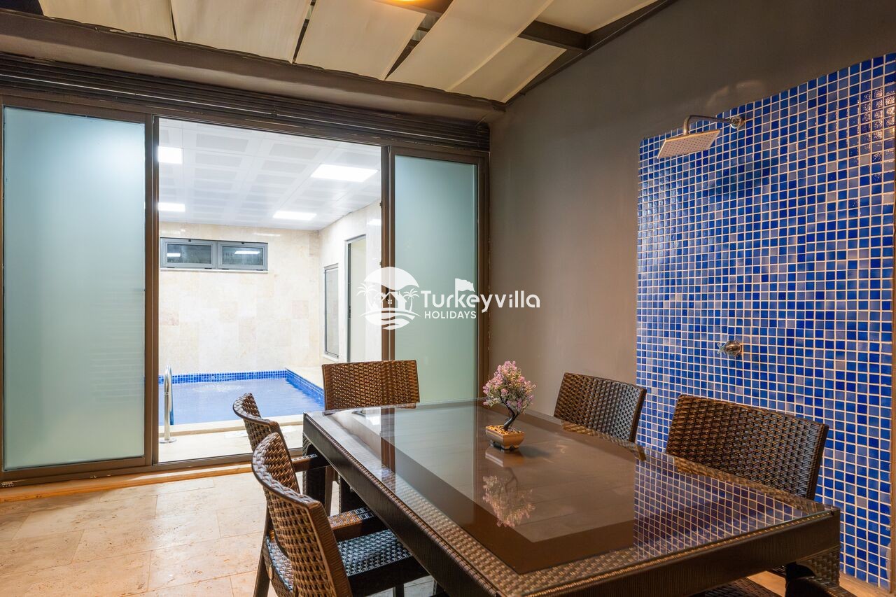Zu den bemerkenswertesten Merkmalen der Villa gehören der beheizte Innenpool, die Sauna und das Türkische Bad. Gerade für Gäste, die einen Urlaub zu allen vier Jahreszeiten verbringen möchten, bieten diese im Erdgeschoss gelegenen Räumlichkeiten einen großen Vorteil. Der Poolbereich verfügt auch über einen flachen Poolbereich und dieser Bereich ist sicher für Familien mit Kindern. Die große Poolterrasse wird von einer Liegewiese und Sitzbereichen unterstützt, wo Sie eine angenehme Zeit mit Blick auf die Aussicht verbringen können.