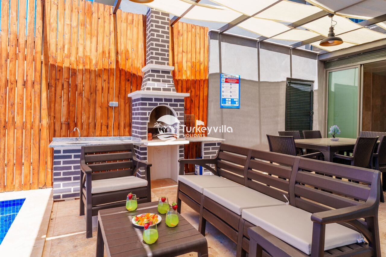 Die Villa Grand Emora 1 liegt in der Region Kördere in Kalkan und ist eine moderne Ferienvilla mit fünf Schlafzimmern und einer Kapazität für zehn Personen, die problemlos große Familien und große Gruppen von Freunden unterbringen kann. Die Villa, die dank ihrer hohen Lage inmitten der Natur die Möglichkeit bietet, die einzigartige Aussicht auf Kalkan zu genießen, ist aufgrund ihrer Nähe zum Zentrum auch eine ideale Option für Gäste, die einen praktischen und angenehmen Urlaub suchen. Der geschützte Poolbereich gibt Gästen, die Wert auf Privatsphäre legen, ein sicheres Gefühl und macht die Villa zu einem geeigneten Wohnort für konservative Familien.