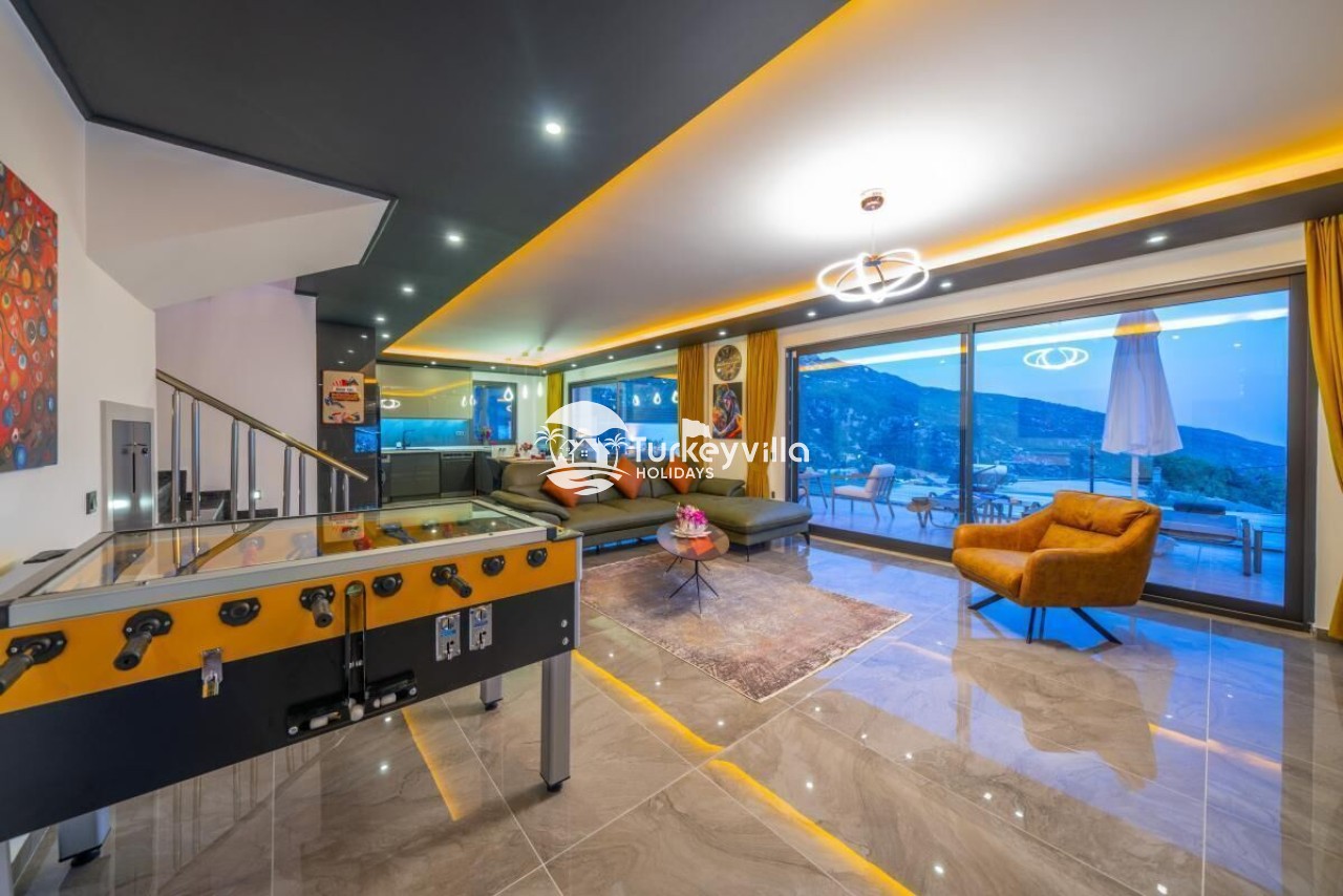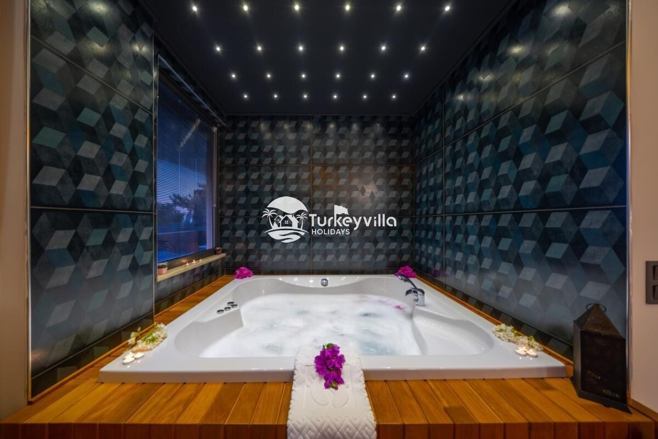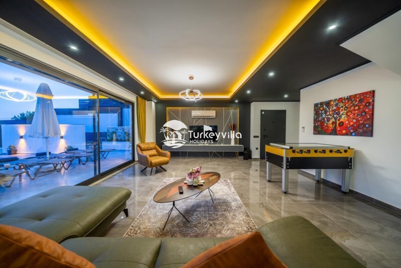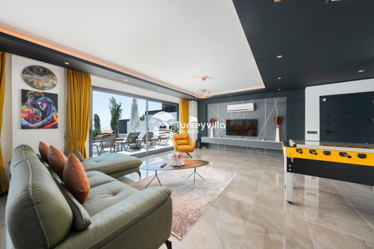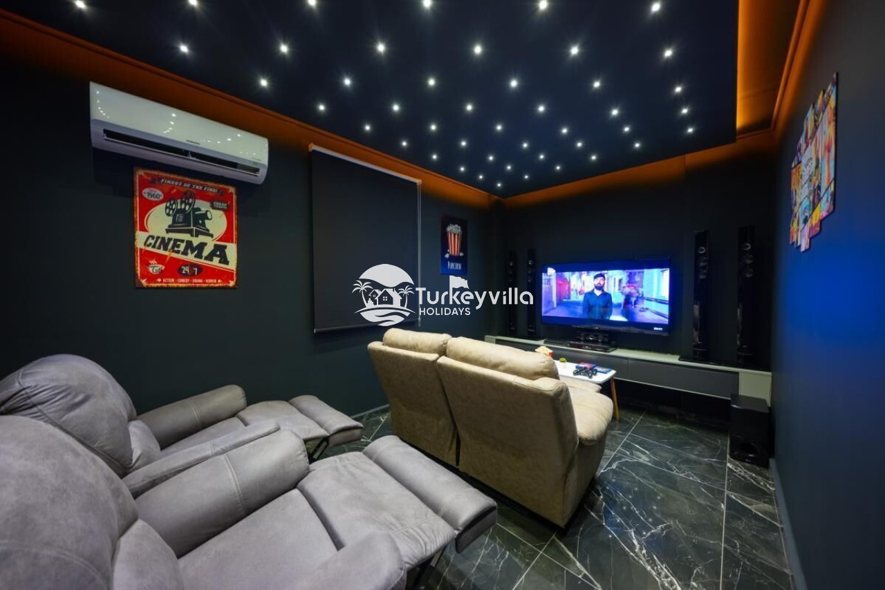 Die Villa Güney verfügt über einen voll ausgestatteten Kinoraum, Doppel- und Einzelsofas mit großen Sitzgelegenheiten und bequemen Schlafmöglichkeiten, einen LCD-Großbildfernseher,