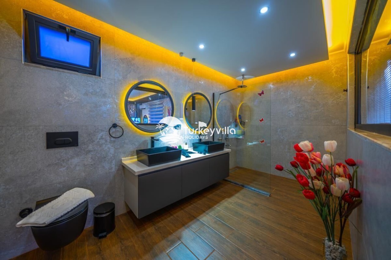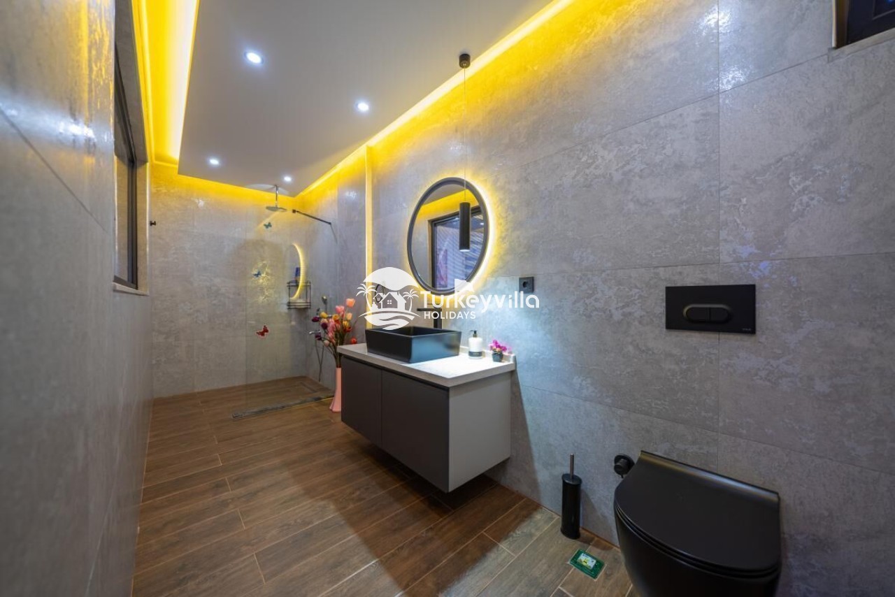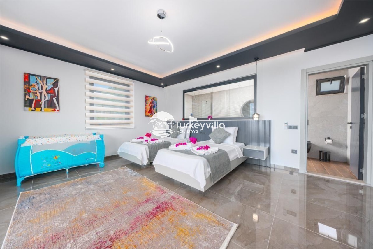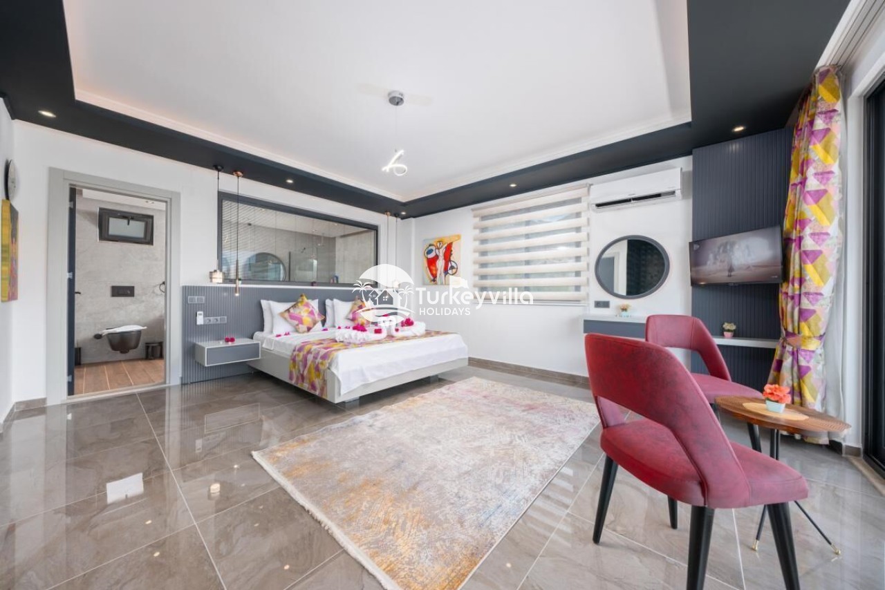 Die Villa Güney verfügt über einen voll ausgestatteten Kinoraum, Doppel- und Einzelsofas mit großen Sitzgelegenheiten und bequemen Schlafmöglichkeiten, einen LCD-Großbildfernseher,