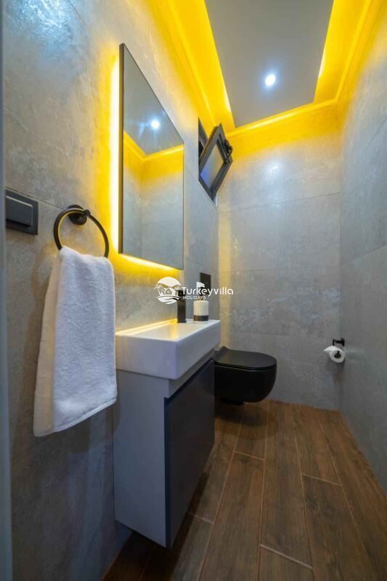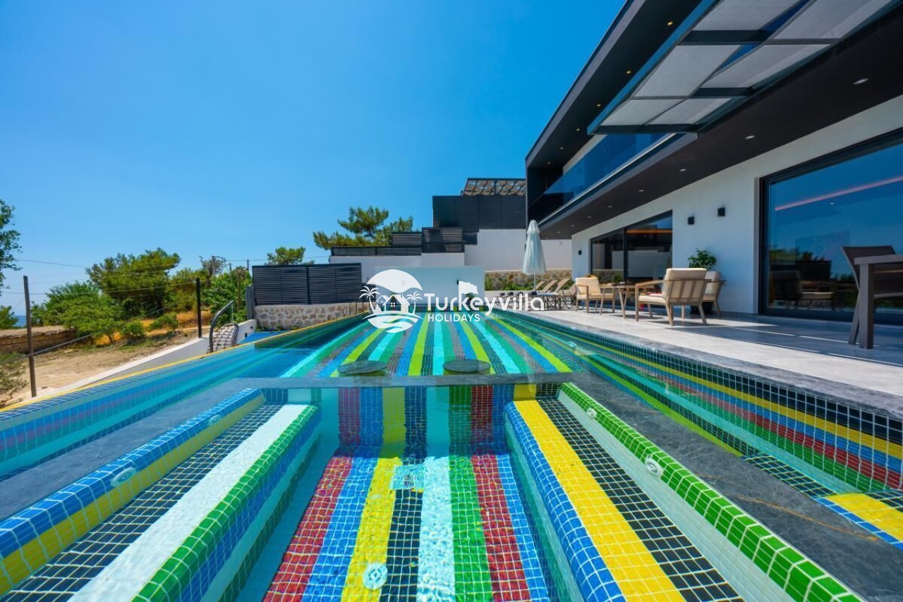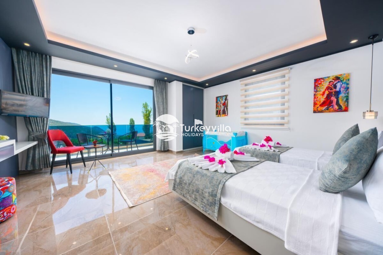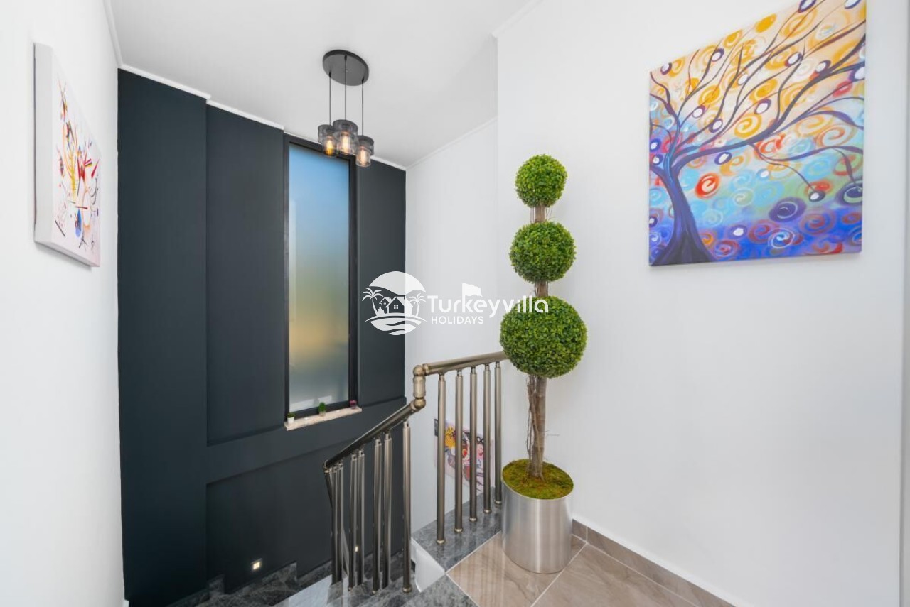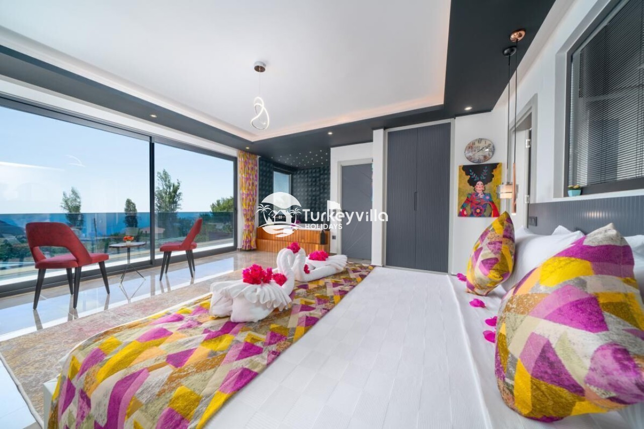 Die Villa Güney verfügt über einen voll ausgestatteten Kinoraum, Doppel- und Einzelsofas mit großen Sitzgelegenheiten und bequemen Schlafmöglichkeiten, einen LCD-Großbildfernseher,