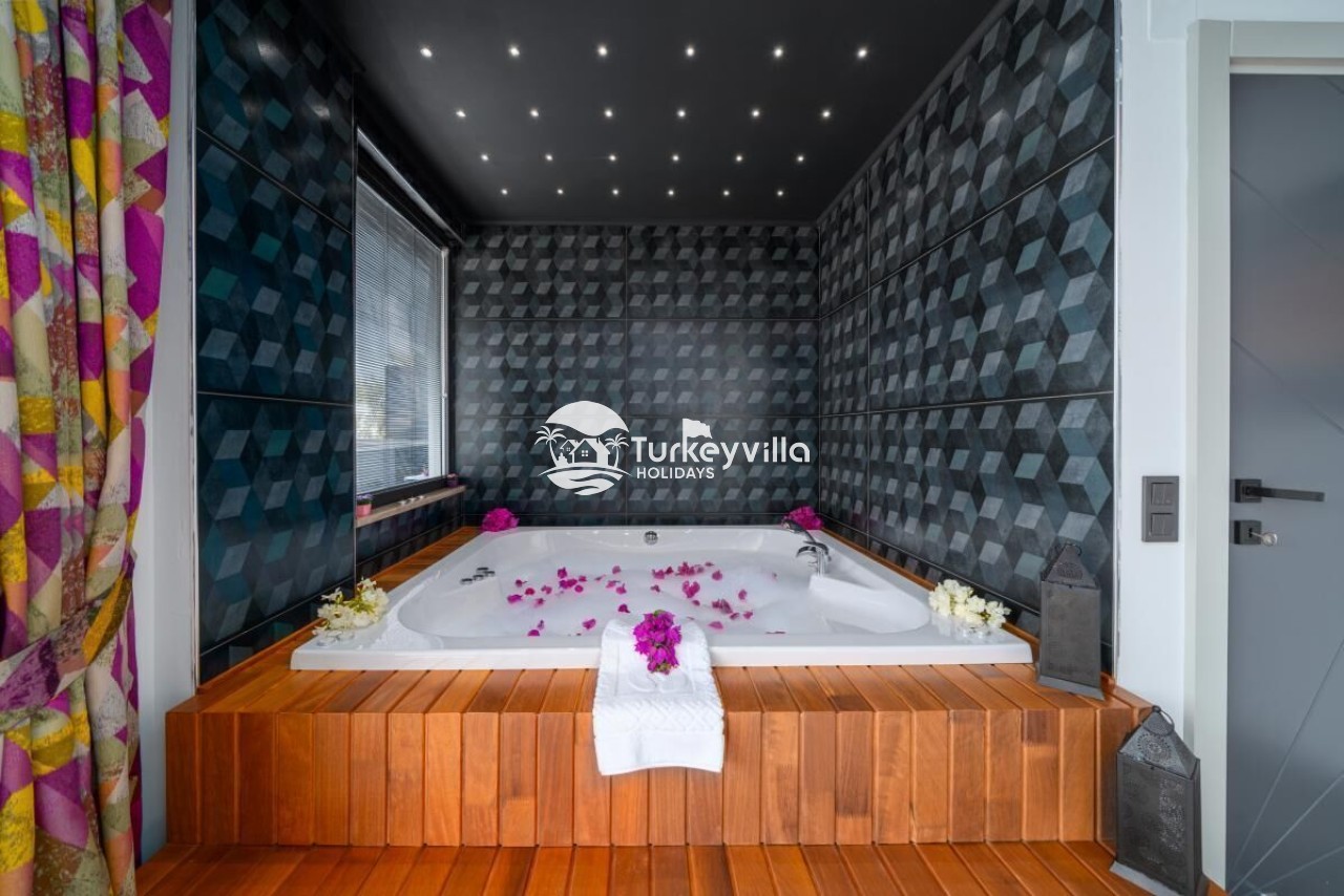Villa Güney kann als Jacuzzi-Pool im Infinity-Pool genutzt werden und auch der Jacuzzi-Pool kann als Kinderbecken genutzt werden.