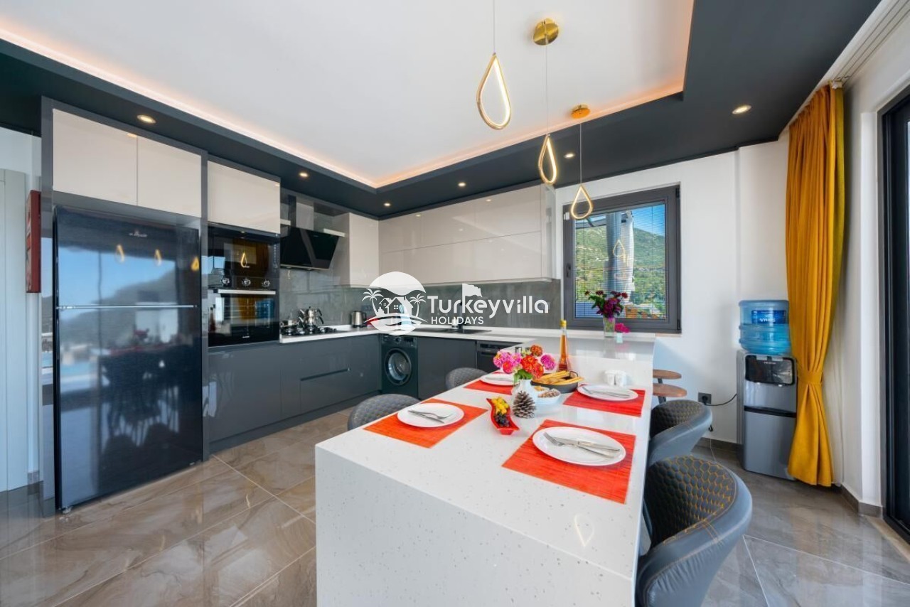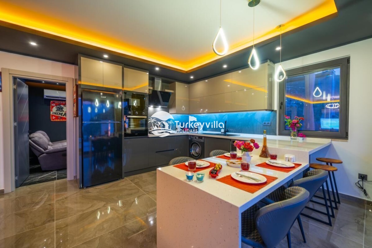 Villa Güney verfügt über eine luxuriöse, geräumige und hochwertige Küche. Hochstuhl für Babys, Kühlschrank, Waschmaschine, Geschirrspüler, Backofen, Mikrowelle, 4 Herdplatten, Ketil, Toaster, türkische Kaffeemaschine, Saftpresse, Wasserspender, Geschirr für 6 Personen, Pfanne, Töpfe, Gabel, Messer usw. In unserer Küche wurde an alles für unsere Gäste gedacht. Wenn während der Feiertage ein Produkt fehlt, liefern wir es außerdem sofort für Sie, wenn Sie es uns mitteilen.
