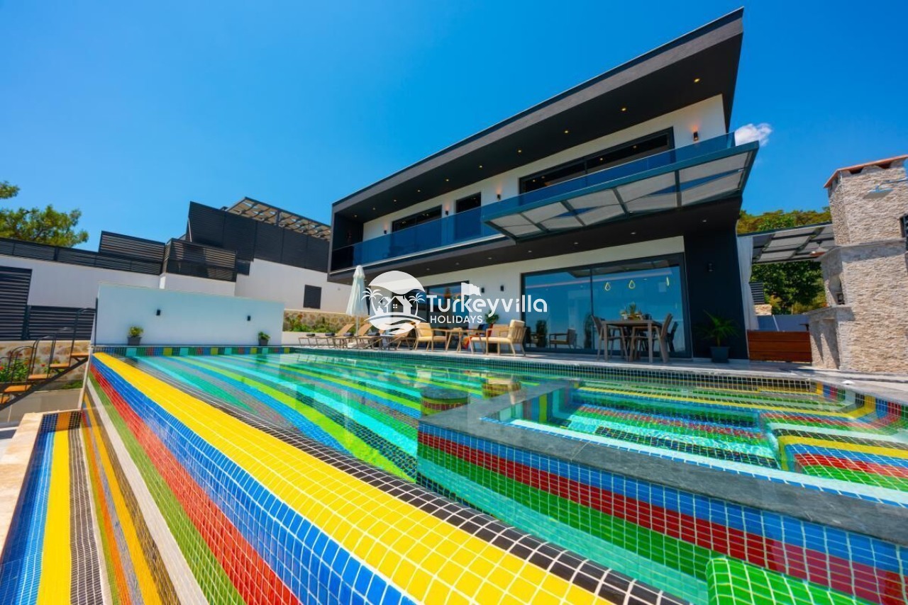 Die Villa Güney verfügt über 2 Schlafzimmer und wird unseren geschätzten Kunden mit ihrer einzigartigen Lage in der Natur und dem Meerblick im Dorf Kalkan Islamlar angeboten, das 2021 fertiggestellt wurde und über ein modernes Luxusdesign verfügt.