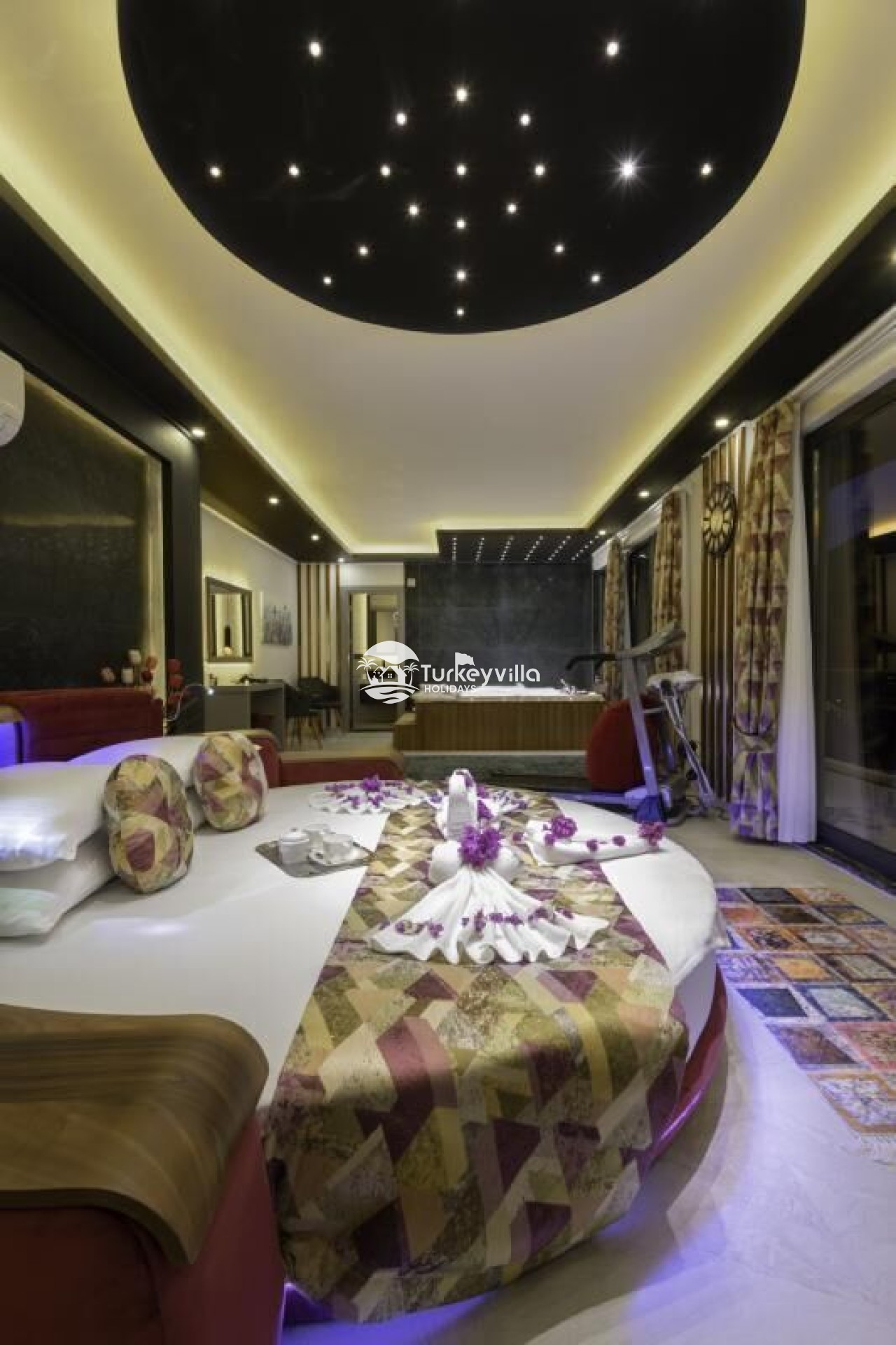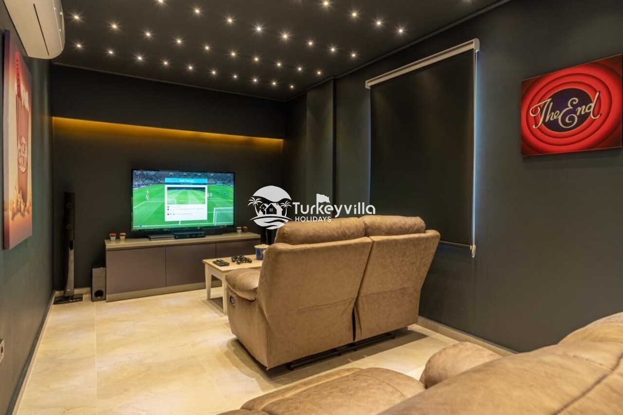 Neben dem Infinity-Pool der Villa North gibt es auch einen horizontalen Pool und ein Kinderbecken. Auf der Poolterrasse können Sie sich beim Tischtennis vergnügen und auf der Schaukel auf der Poolterrasse die Sommerbrise spüren. Darüber hinaus verfügt die Villa Kuzey über Dienstleistungen wie einen Filmraum, einen Whirlpool im Zimmer, ein Laufband, eine Playstation, Tischtennis und einen Fernseher in jedem Zimmer, in denen Sie während Ihres Urlaubs eine angenehme Zeit verbringen können. Villa Kuzey ist eine 100% konservative Villa, die Ihnen zweifellos die Möglichkeit gibt, einen konservativen islamischen Urlaub zu verbringen. Unsere Villa verfügt über einen privaten Parkplatz und unser Parkplatz ist groß genug, um 2 Autos sehr bequem unterzubringen.