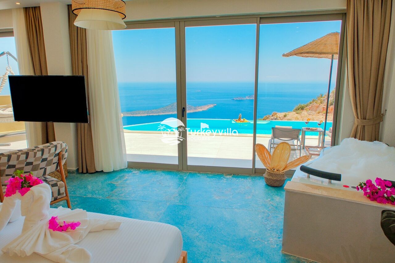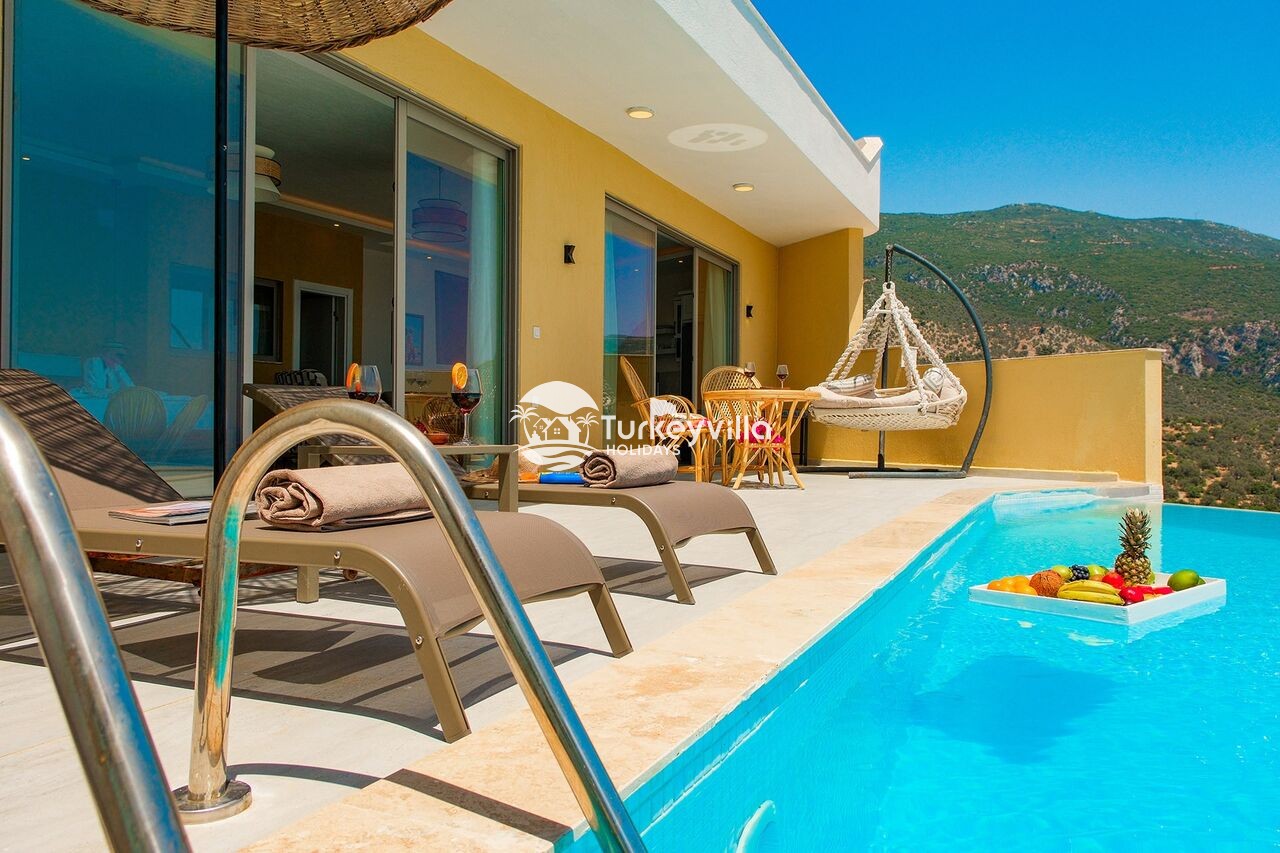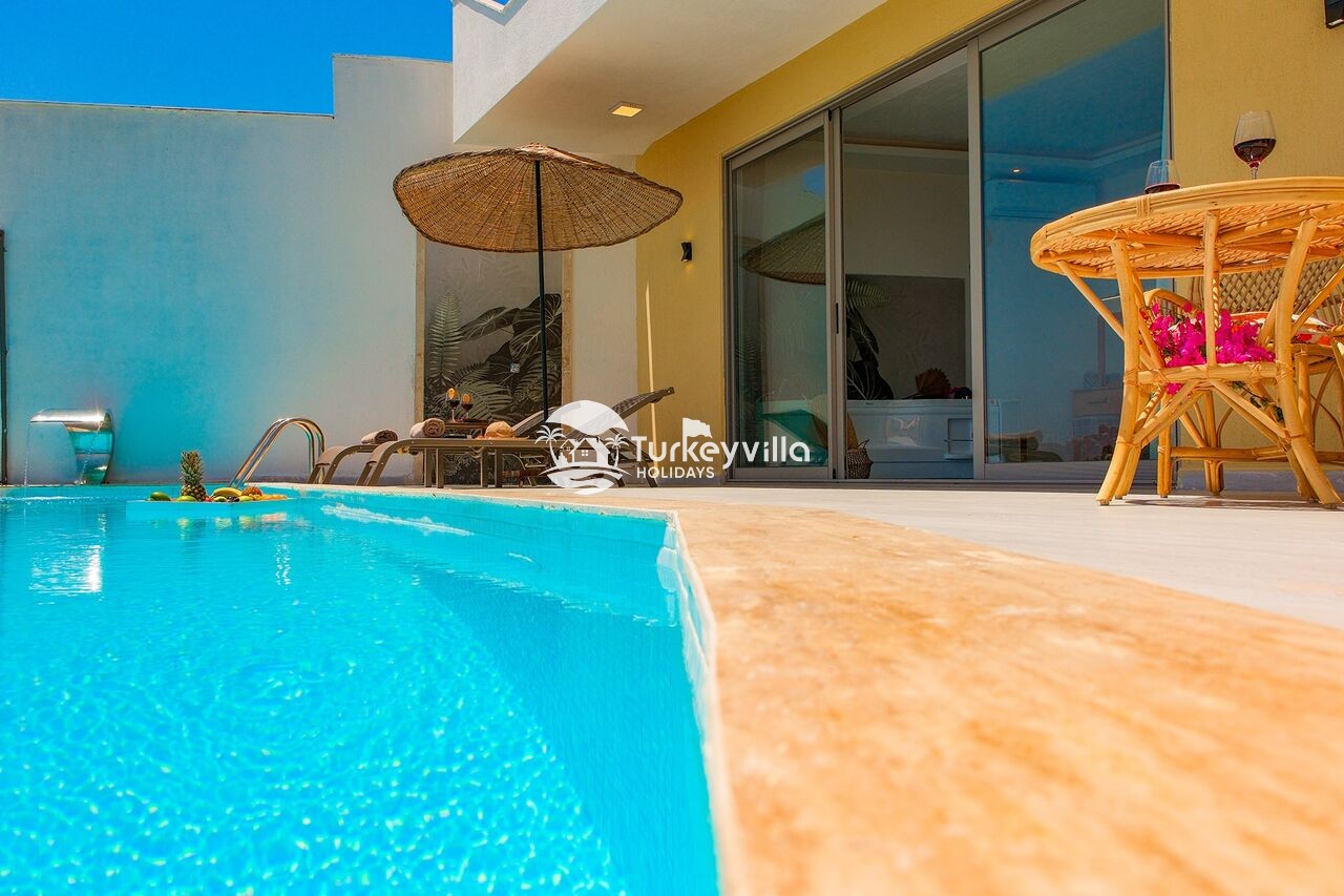 Unsere Villa, die zu den Optionen Kalkan-Villa, Kalkan-Mietvillen, Kalkan-Ferienvillen, Flitterwochen-Villen und Villen mit Meerblick gehört, bietet Ihnen mit ihrer modernen Architektur ein angenehmes Urlaubserlebnis.