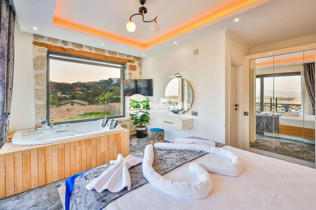 Die Villa Sandak 4 gehört zur Kategorie der konservativen Ultra-Luxus-Villen für 4 Personen mit 2 Schlafzimmern und Pool in der Region Muğla Seydikemer Kumluova. Villa Sandak 4, Baujahr 2023, gehört zu unseren Optionen für Villen mit Blick auf die Natur, konservative Villen, Whirlpool-Villen und Flitterwochen-Villen. Es ist eine ideale Option für Kleinfamilien und Flitterwochenpaare.