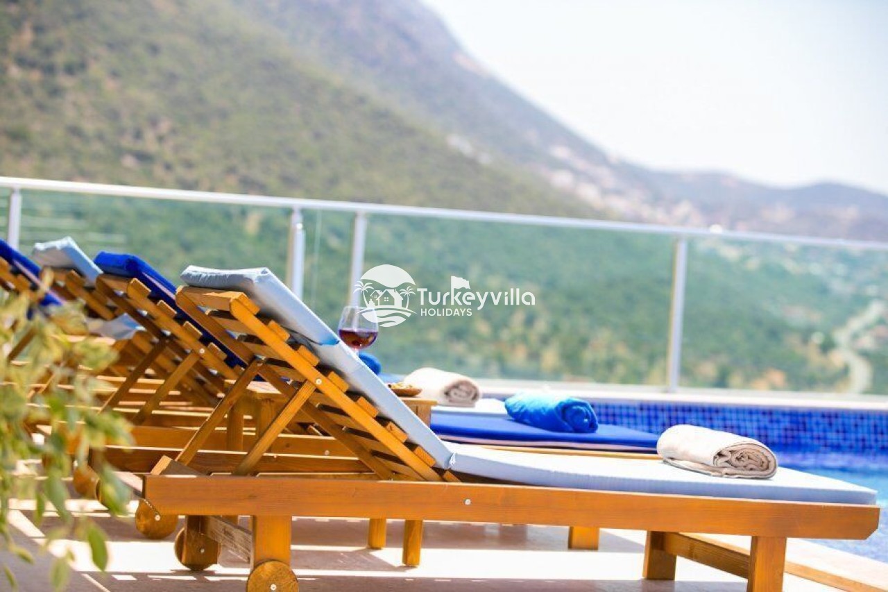 Villa Saray, Türkiye’nin gözde tatil beldesi Kalkan’ın Akbel mevkiinde yer almaktadır. Muhteşem Patara ve Kalkan manzaralarıyla ön plana çıkan villamız seçkin bir villa tatili arzu eden misafirlerimiz için ideal bir seçenektir. Modern mimarisi ve özgün dekorasyonu ile dikkat çeken iki katlı villa, 4 odasıyla 8 kişiye kadar konaklama imkanı sunmaktadır. Büyüleyici deniz ve doğa manzarası eşliğinde akşamları sevdiklerinizle birlikte unutulmaz anlar yaşayabilirsiniz. Muhafazakar konseptteki korunaklı özel yüzme havuzu dışarıdan görünmemektedir. Çekirdek aileler ve balayı çiftleri için oldukça ideal bir yazlık olan villada, kusursuz ve unutulmaz bir tatil geçirmeniz için tüm detaylar en ince ayrıntılarına kadar düşünülmüş ve hizmetinize sunulmuştur. Villamız engelliler için uygundur.