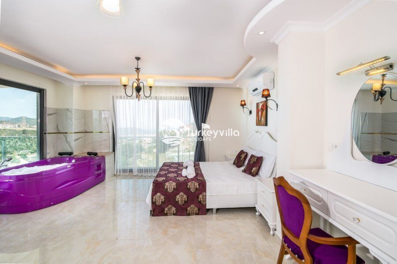 1. Yatak Odası : Klimalı, suit VIP aile yatak odasıdır. 1 adet çift kişilik yatak, jakuzi, makyaj masası, komodin, elbise dolabı, banyo/WC yer almaktadır.