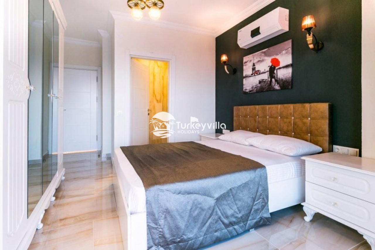 2. Schlafzimmer: Es ist ein Doppelzimmer. Es gibt 1 Doppelbett, Klimaanlage, Kleiderschrank, Nachttisch, Schminktisch, Bad und WC.