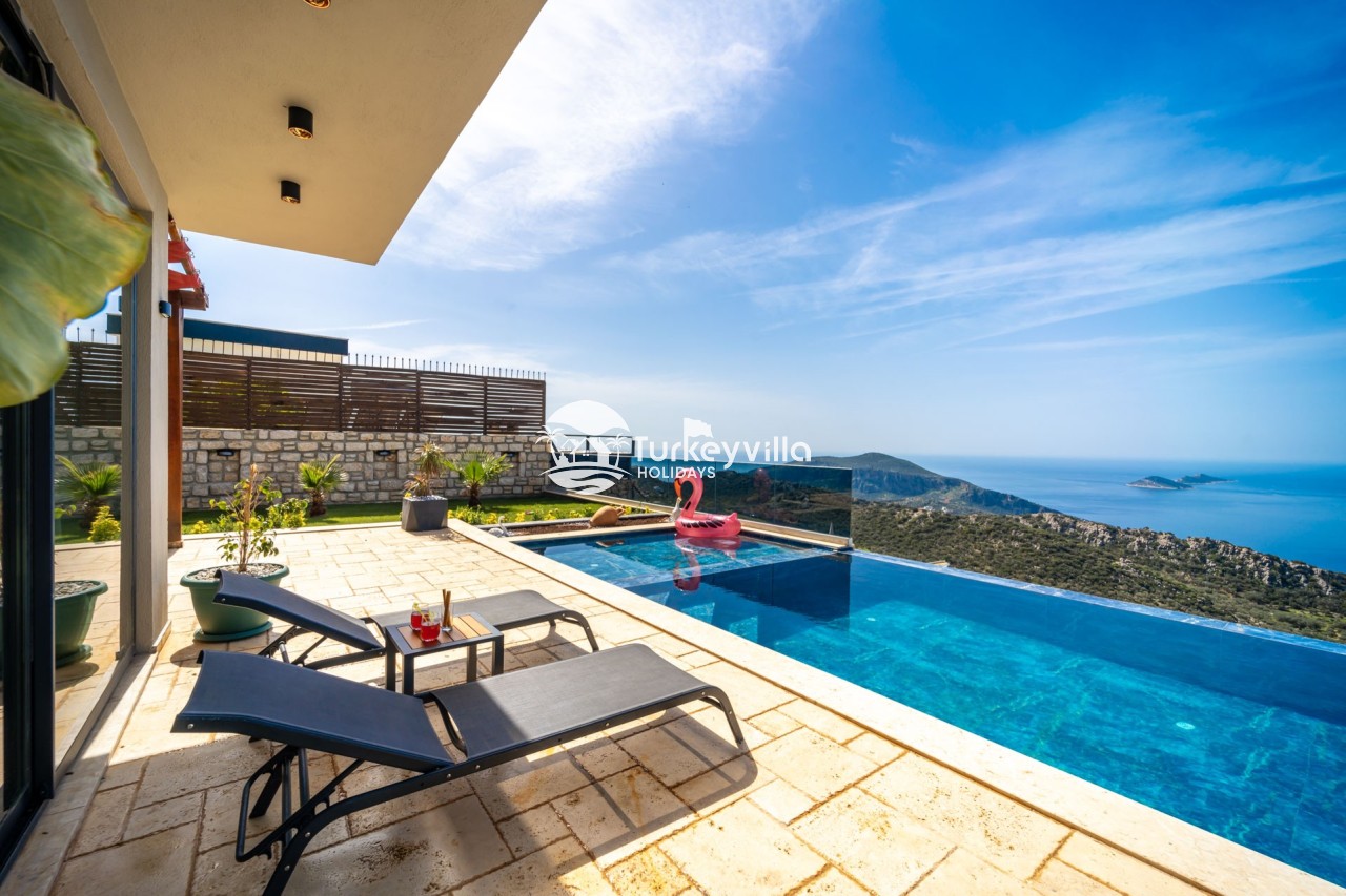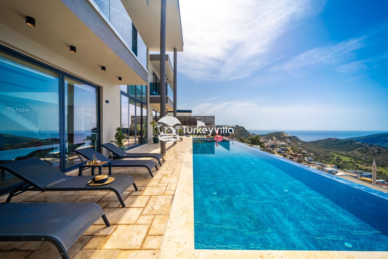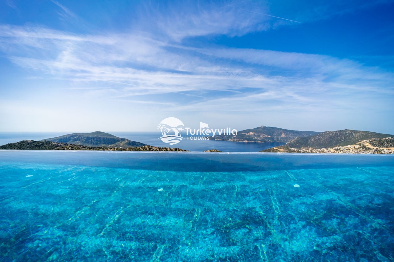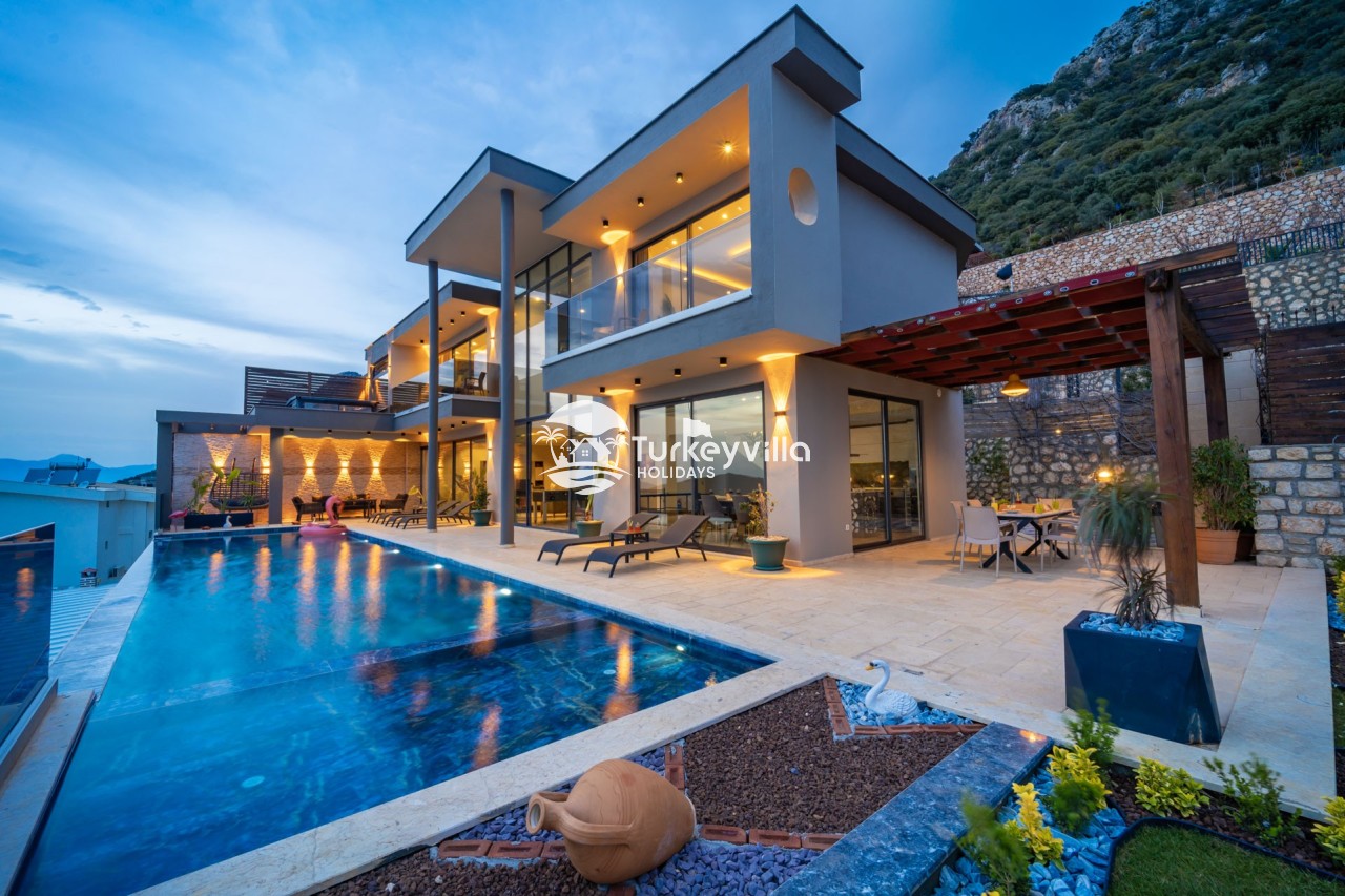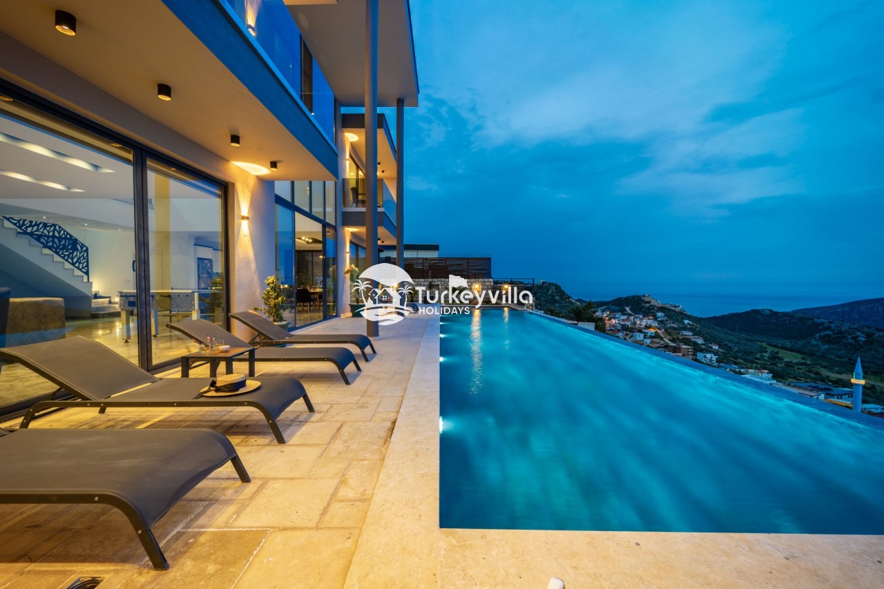 Villa Anıl, stands out as a luxury villa in the Kördere region of Kalkan, in a peaceful environment surrounded by nature, with a unique sea view. This special villa is a perfect option for those looking for a quiet holiday. Luxurious facilities such as an infinity pool, Turkish bath, sauna and jacuzzi are designed to offer comfort and convenience to their guests.