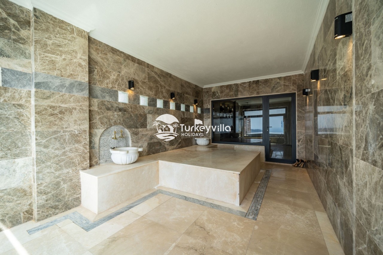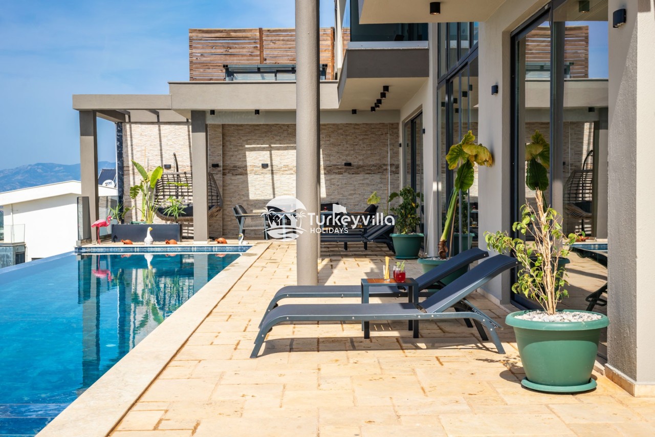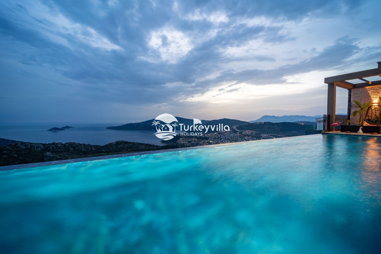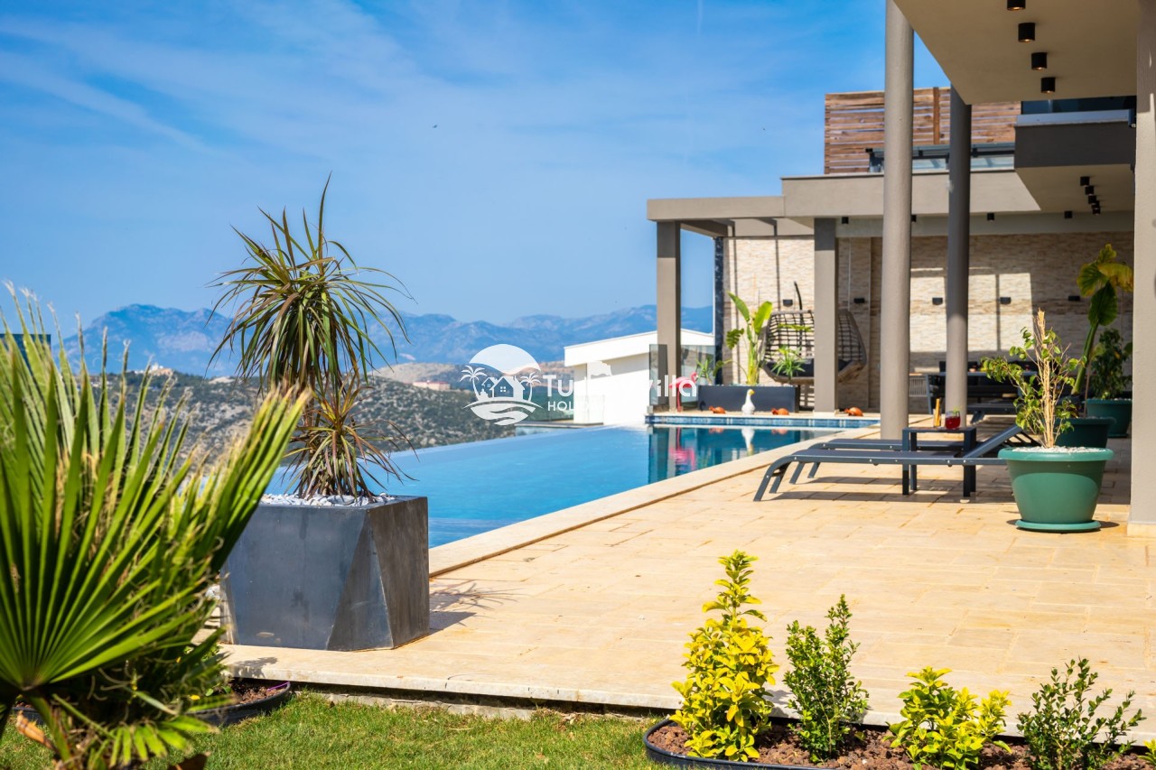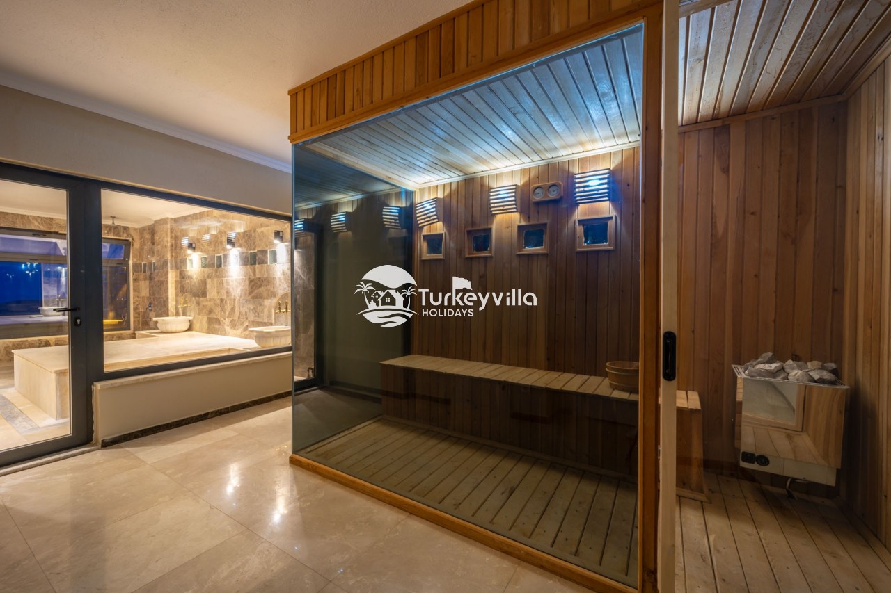 Villa Anıl, stands out as a luxury villa in the Kördere region of Kalkan, in a peaceful environment surrounded by nature, with a unique sea view. This special villa is a perfect option for those looking for a quiet holiday. Luxurious facilities such as an infinity pool, Turkish bath, sauna and jacuzzi are designed to offer comfort and convenience to their guests.