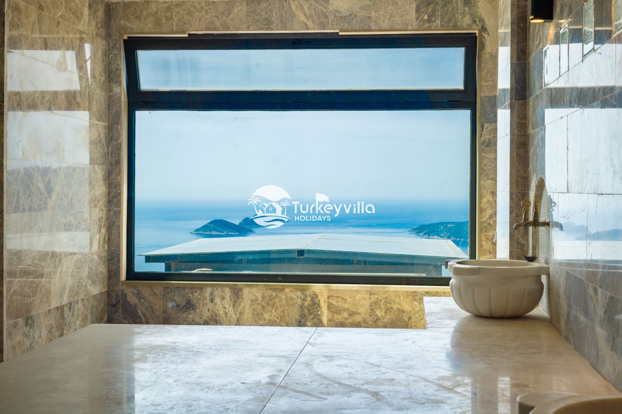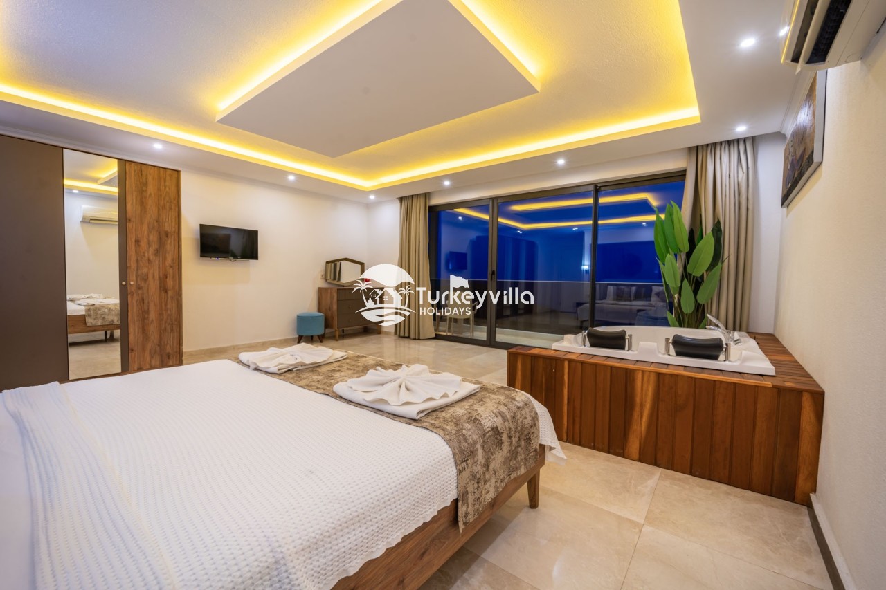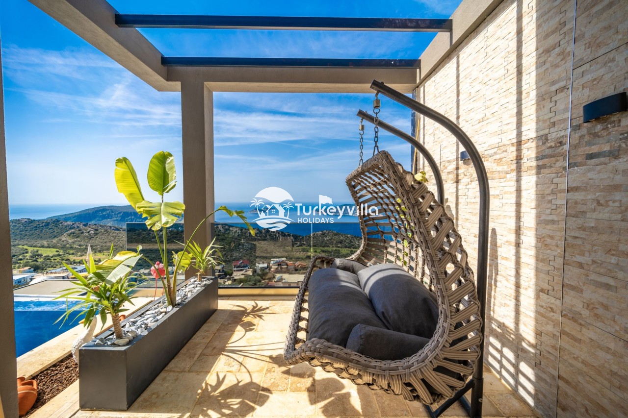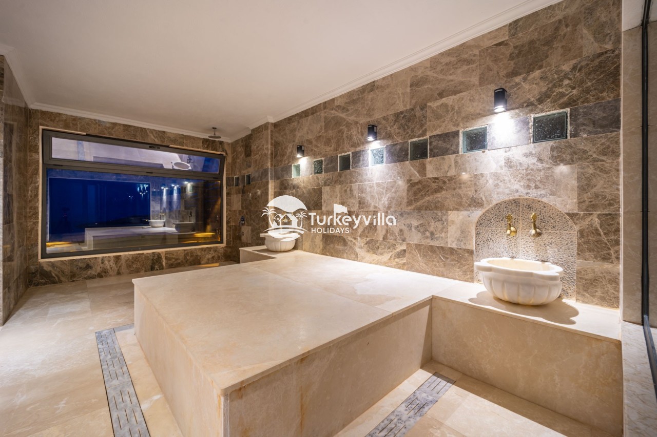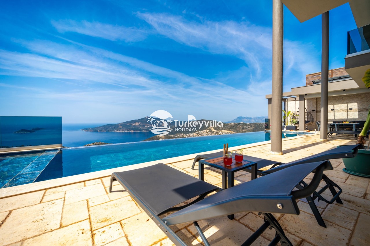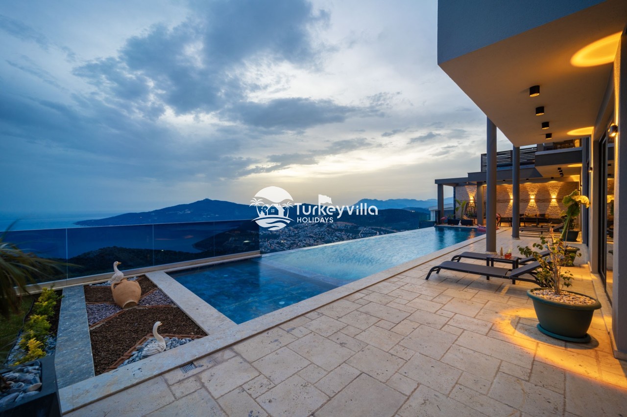 Villa Anıl, stands out as a luxury villa in the Kördere region of Kalkan, in a peaceful environment surrounded by nature, with a unique sea view. This special villa is a perfect option for those looking for a quiet holiday. Luxurious facilities such as an infinity pool, Turkish bath, sauna and jacuzzi are designed to offer comfort and convenience to their guests.