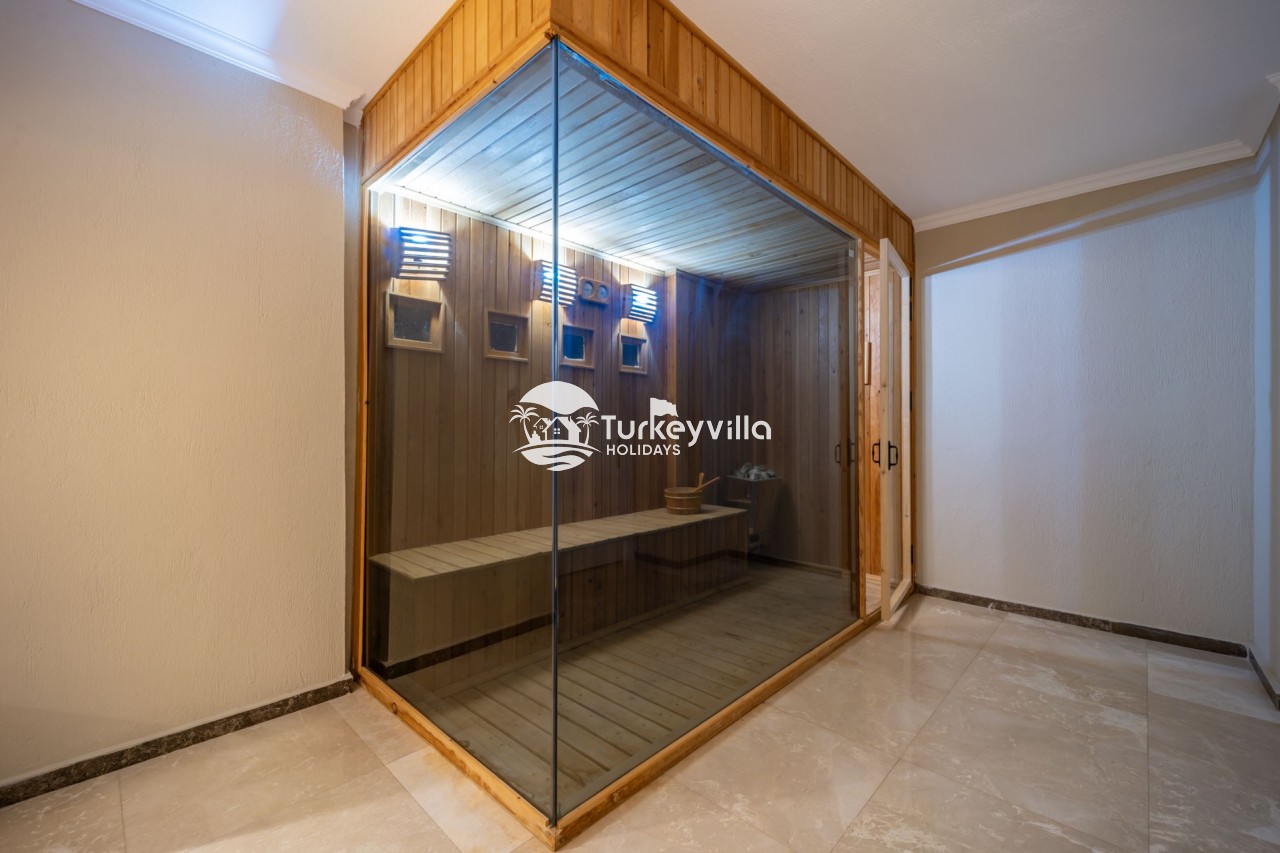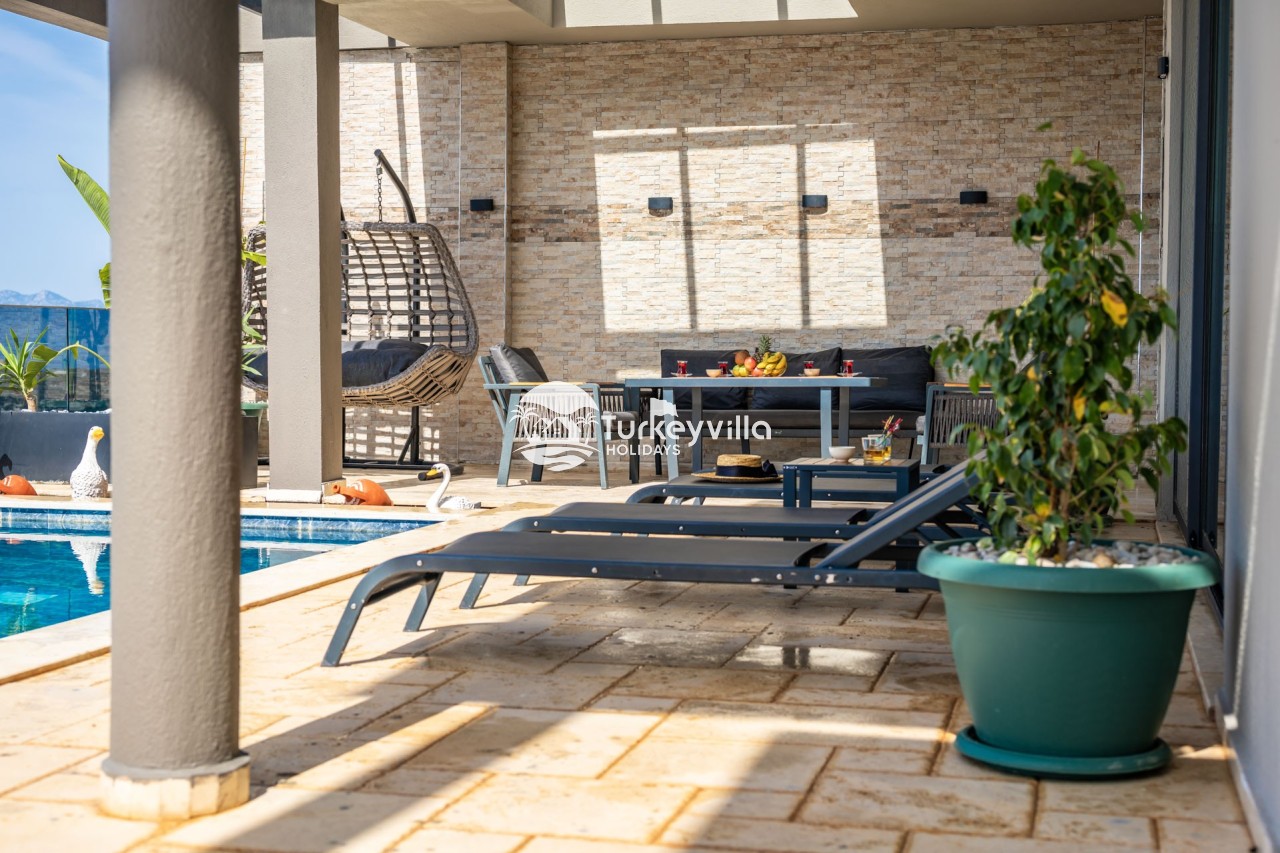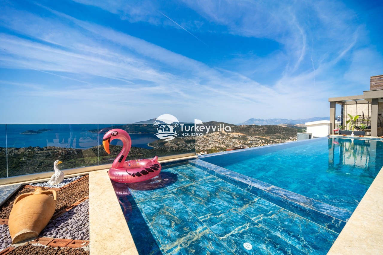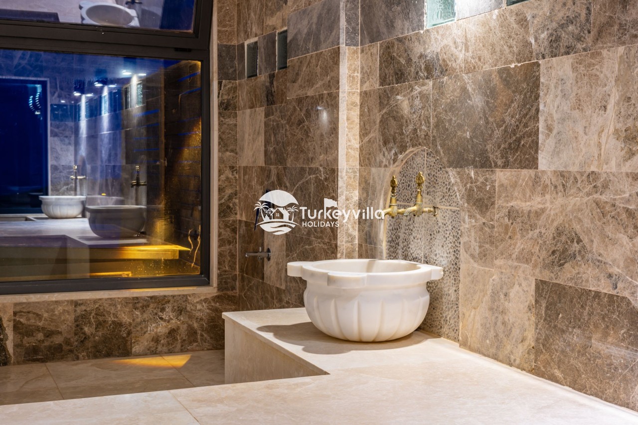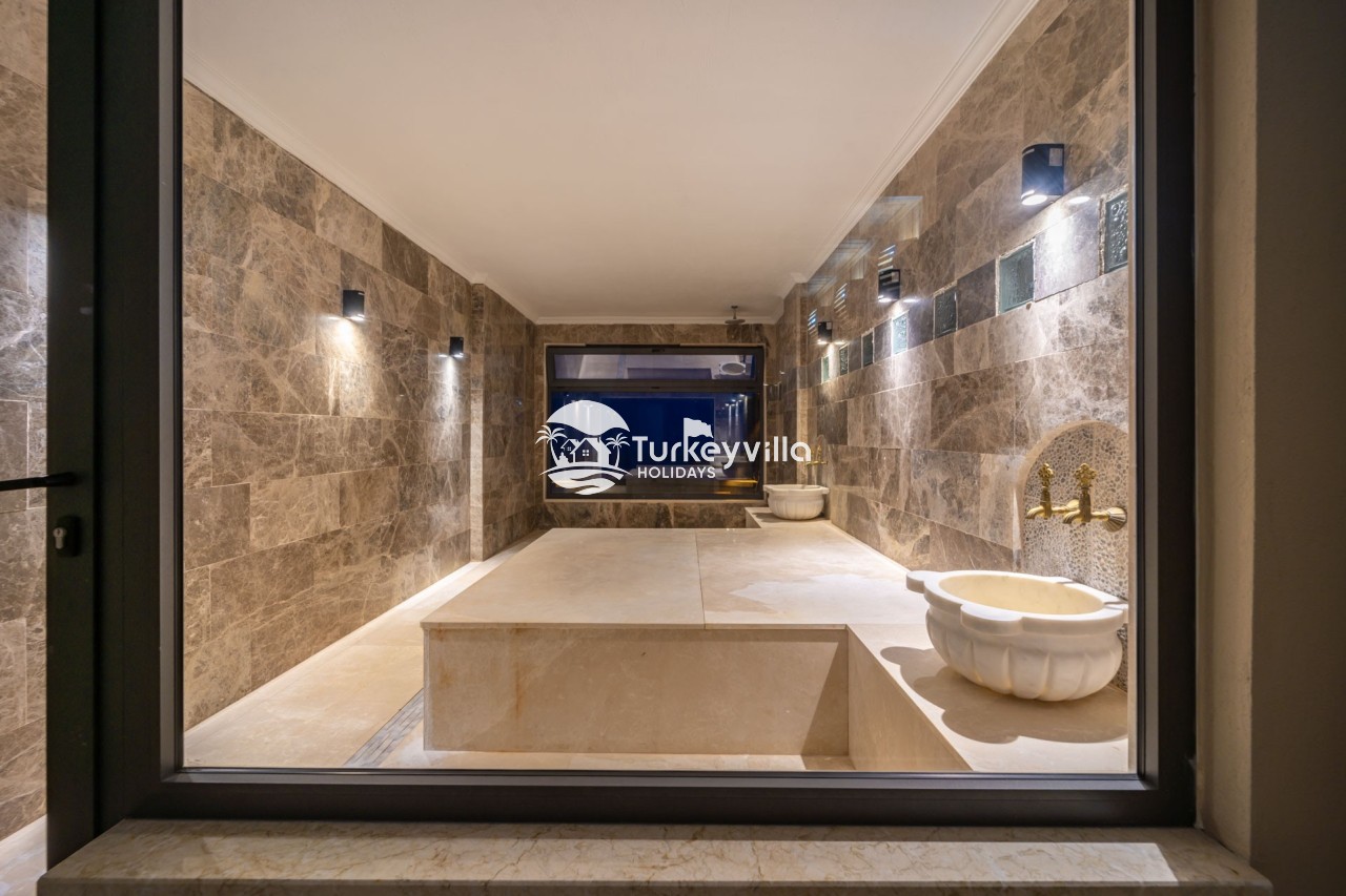Villa Anıl, stands out as a luxury villa in the Kördere region of Kalkan, in a peaceful environment surrounded by nature, with a unique sea view. This special villa is a perfect option for those looking for a quiet holiday. Luxurious facilities such as an infinity pool, Turkish bath, sauna and jacuzzi are designed to offer comfort and convenience to their guests.