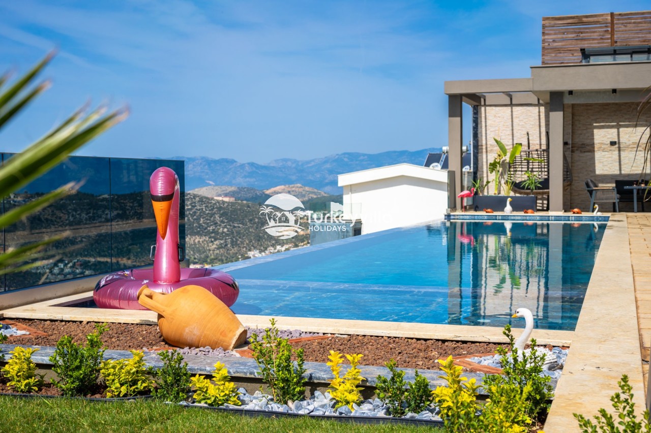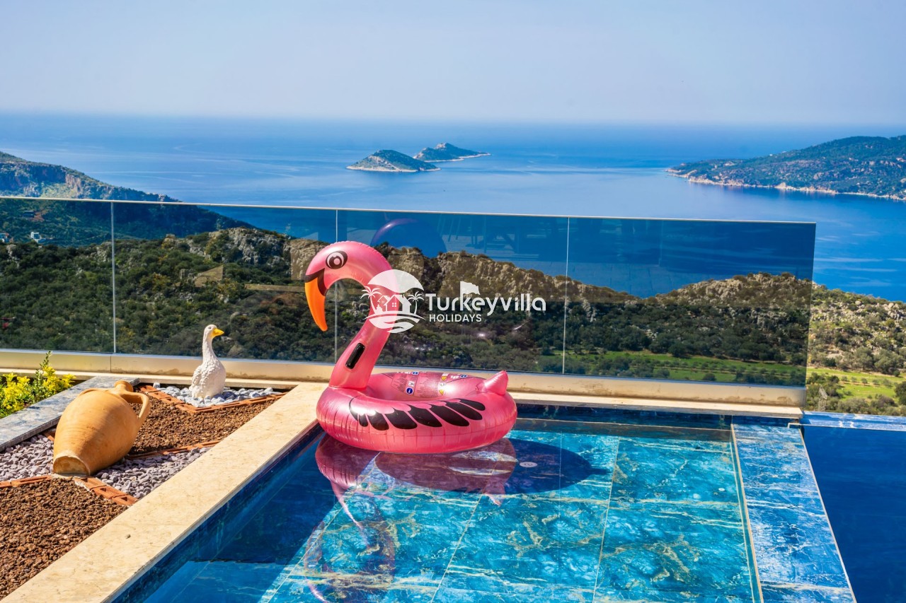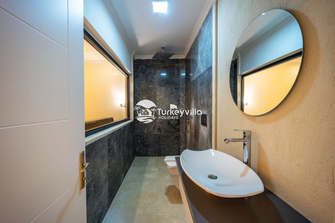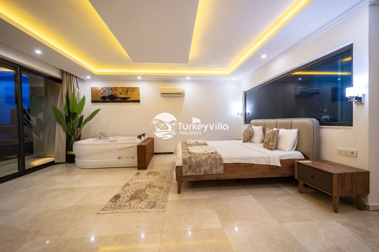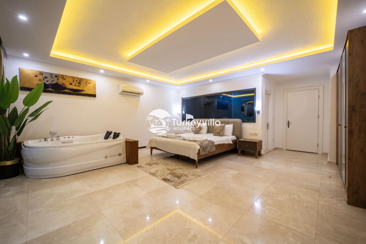 Villa Anıl, stands out as a luxury villa in the Kördere region of Kalkan, in a peaceful environment surrounded by nature, with a unique sea view. This special villa is a perfect option for those looking for a quiet holiday. Luxurious facilities such as an infinity pool, Turkish bath, sauna and jacuzzi are designed to offer comfort and convenience to their guests.