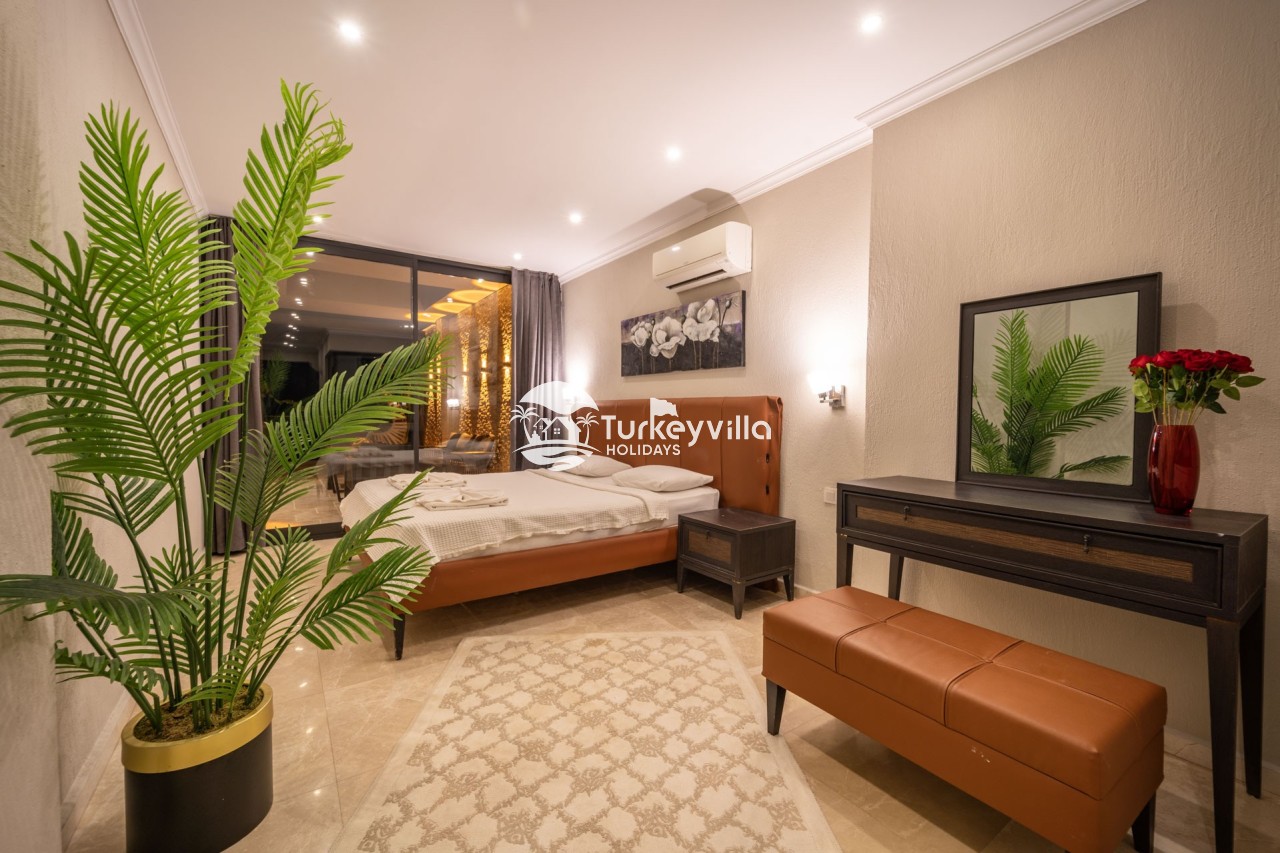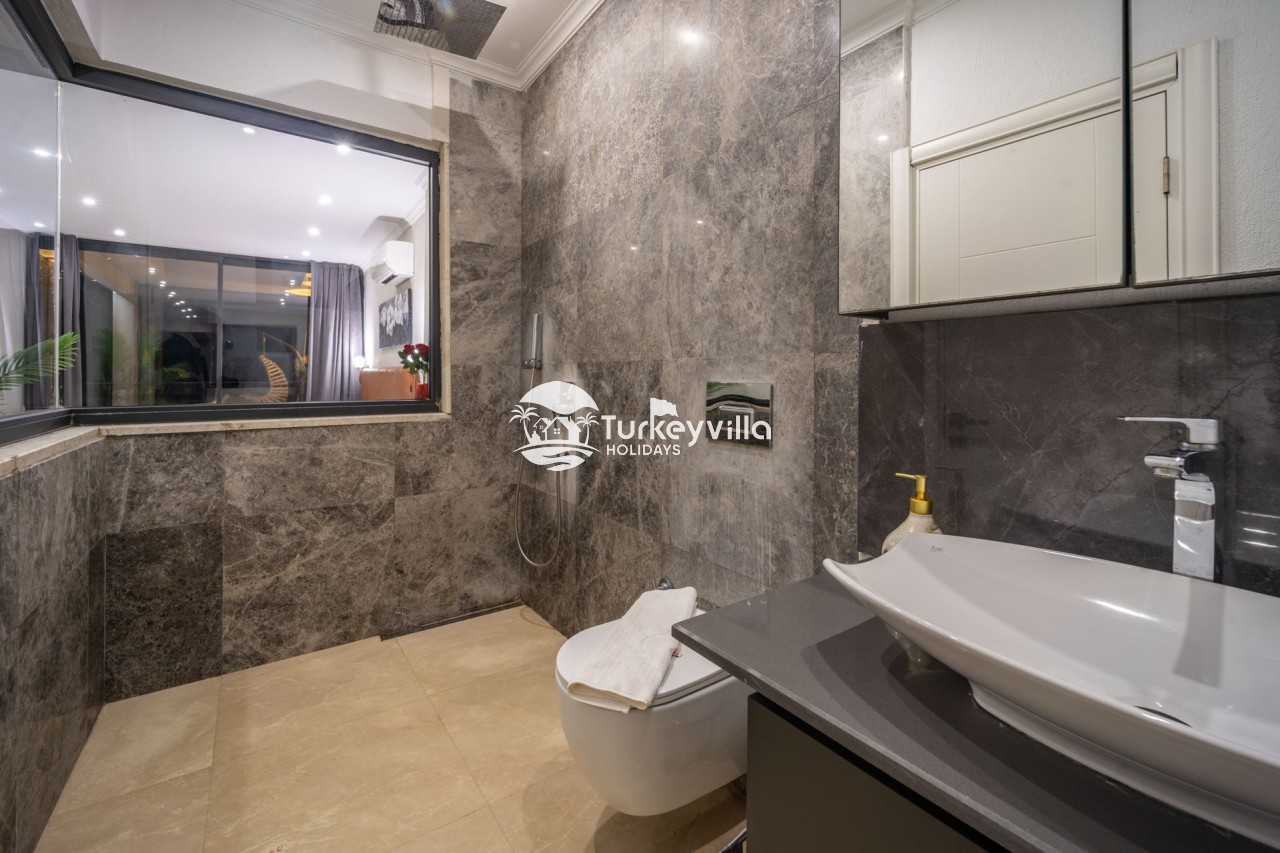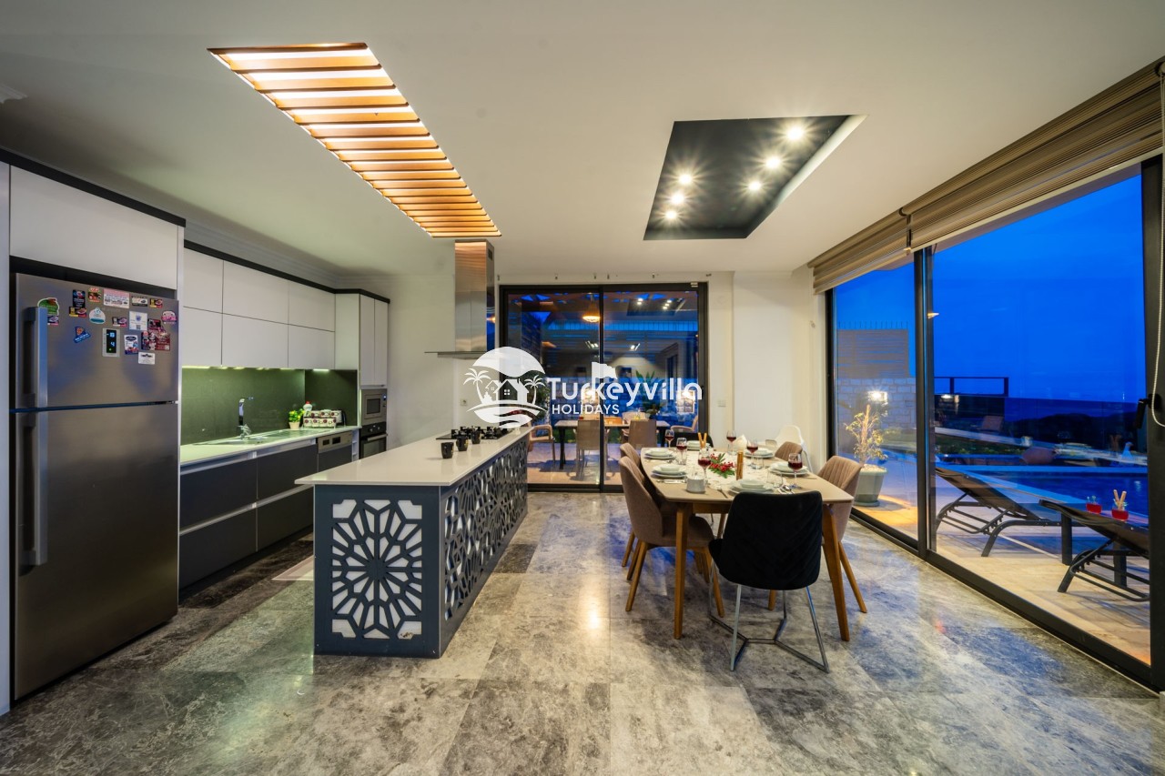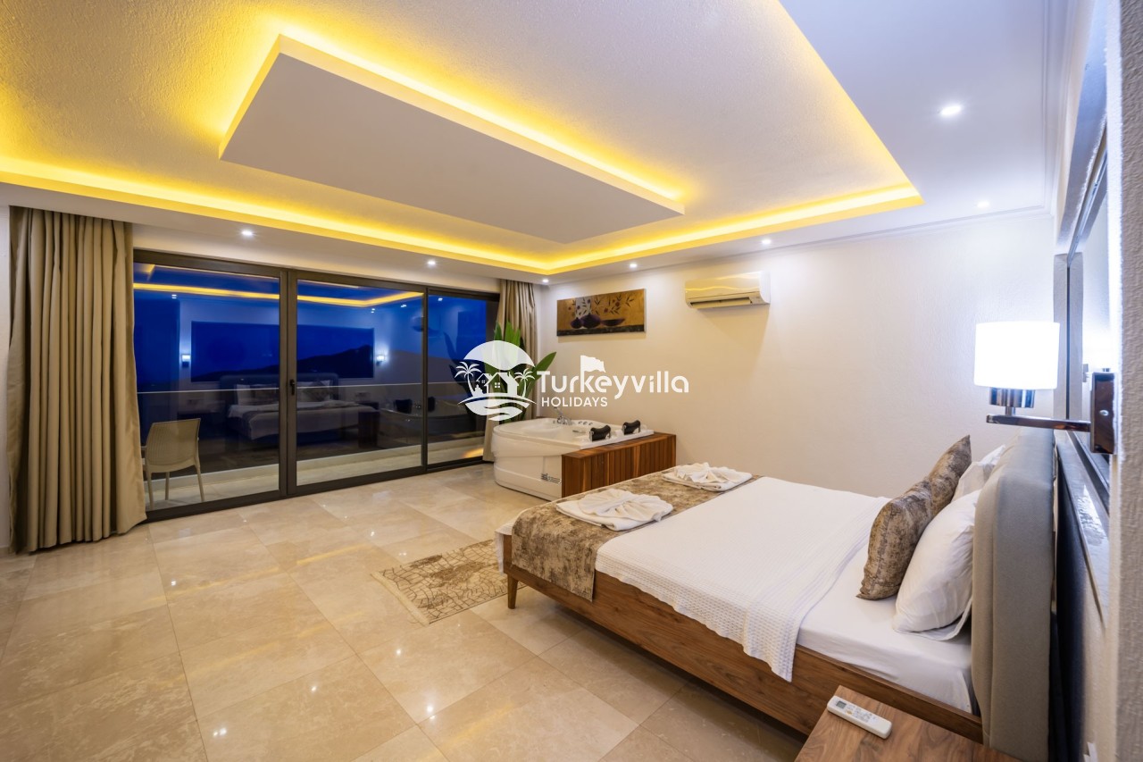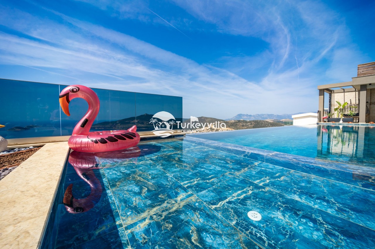 Villa Anıl, stands out as a luxury villa in the Kördere region of Kalkan, in a peaceful environment surrounded by nature, with a unique sea view. This special villa is a perfect option for those looking for a quiet holiday. Luxurious facilities such as an infinity pool, Turkish bath, sauna and jacuzzi are designed to offer comfort and convenience to their guests.