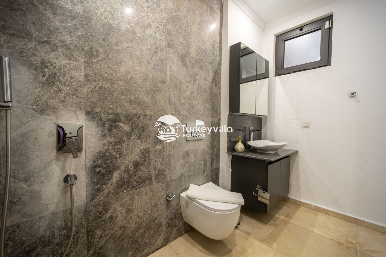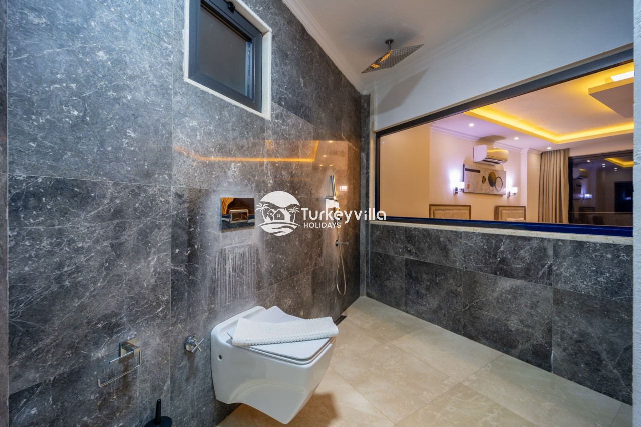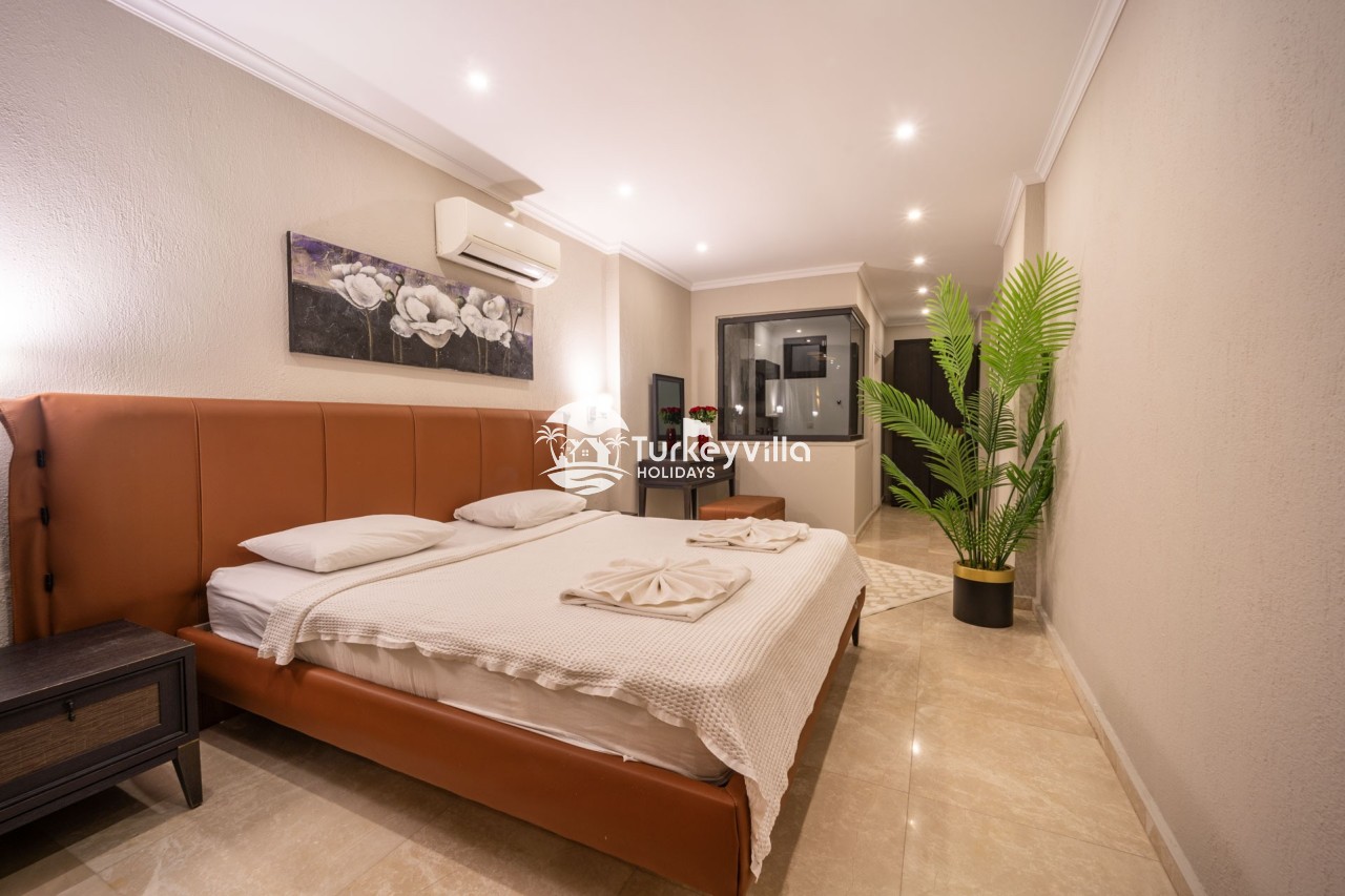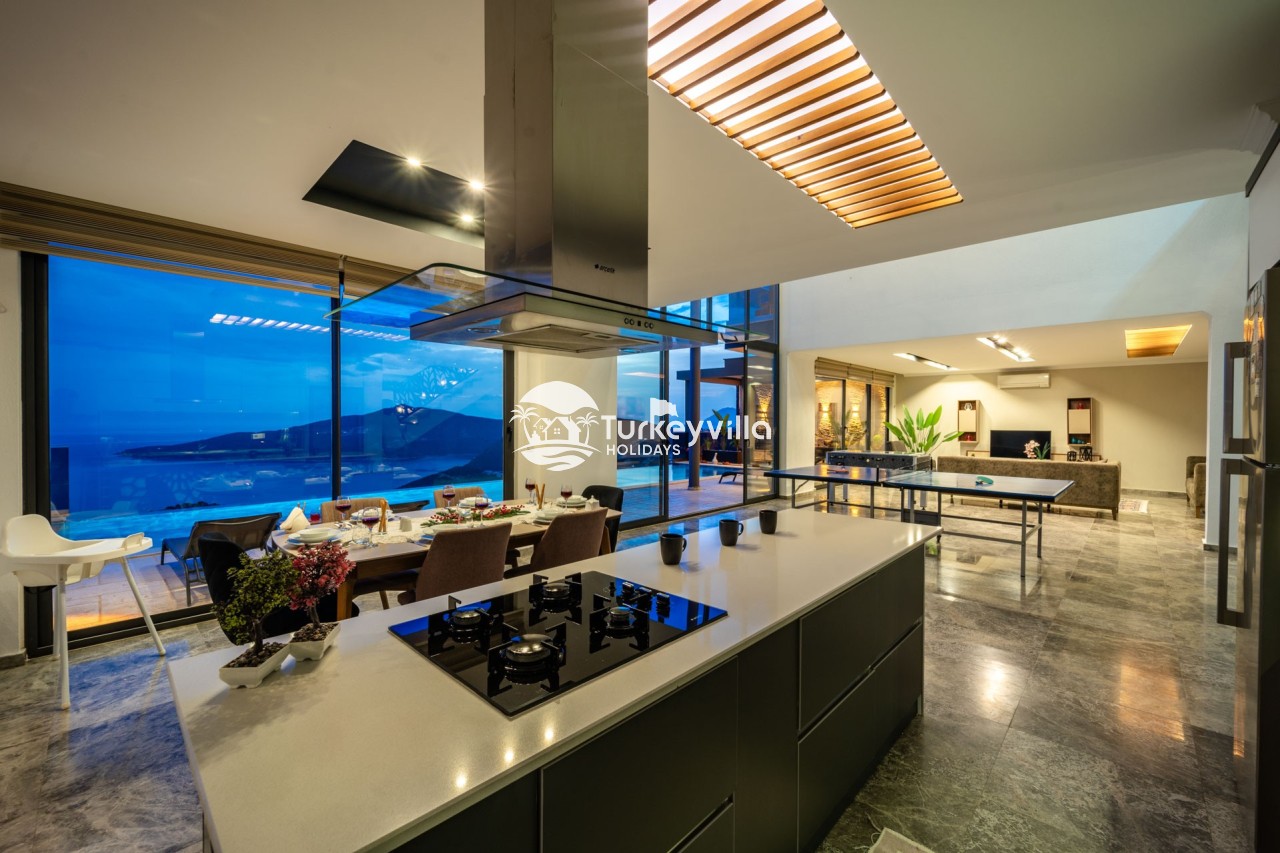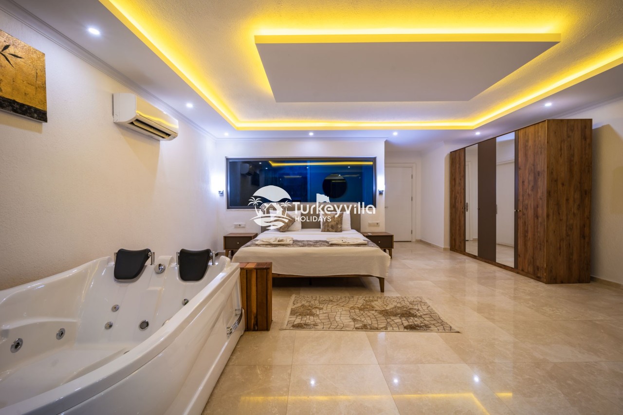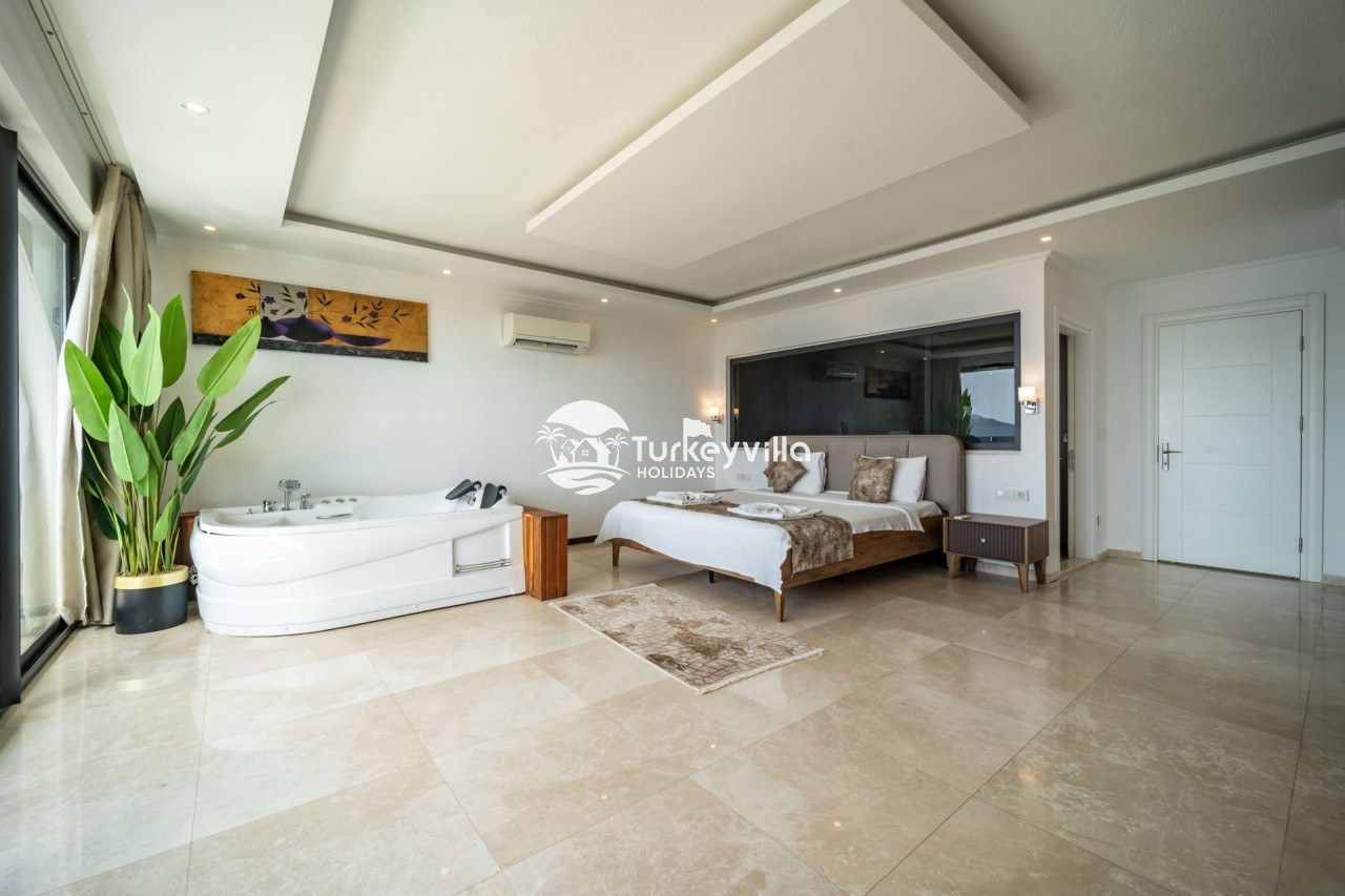 Villa Anıl, stands out as a luxury villa in the Kördere region of Kalkan, in a peaceful environment surrounded by nature, with a unique sea view. This special villa is a perfect option for those looking for a quiet holiday. Luxurious facilities such as an infinity pool, Turkish bath, sauna and jacuzzi are designed to offer comfort and convenience to their guests.