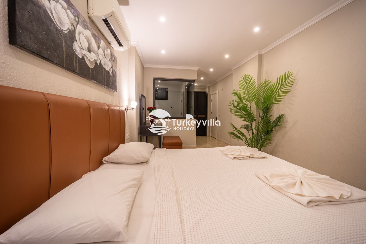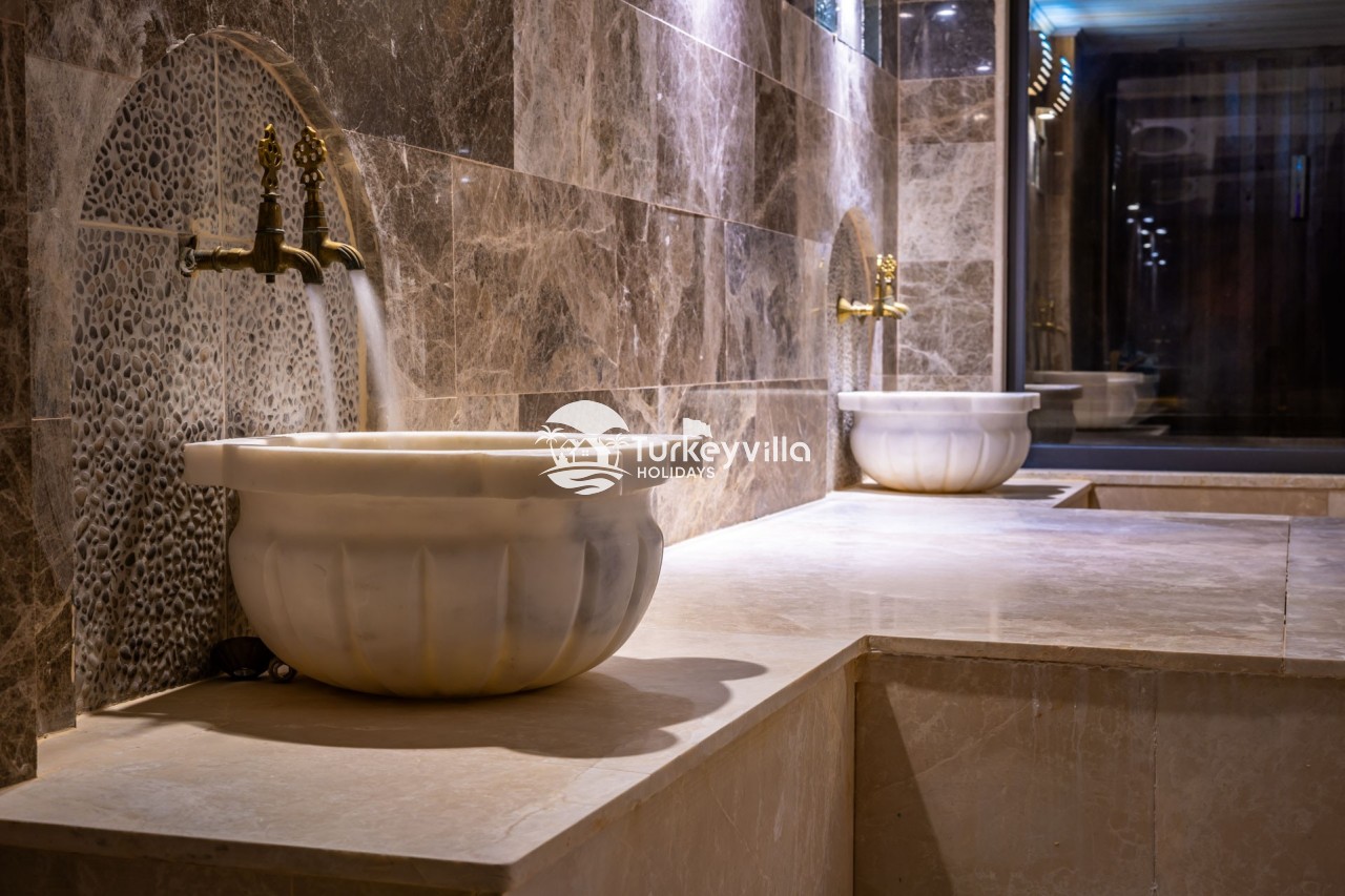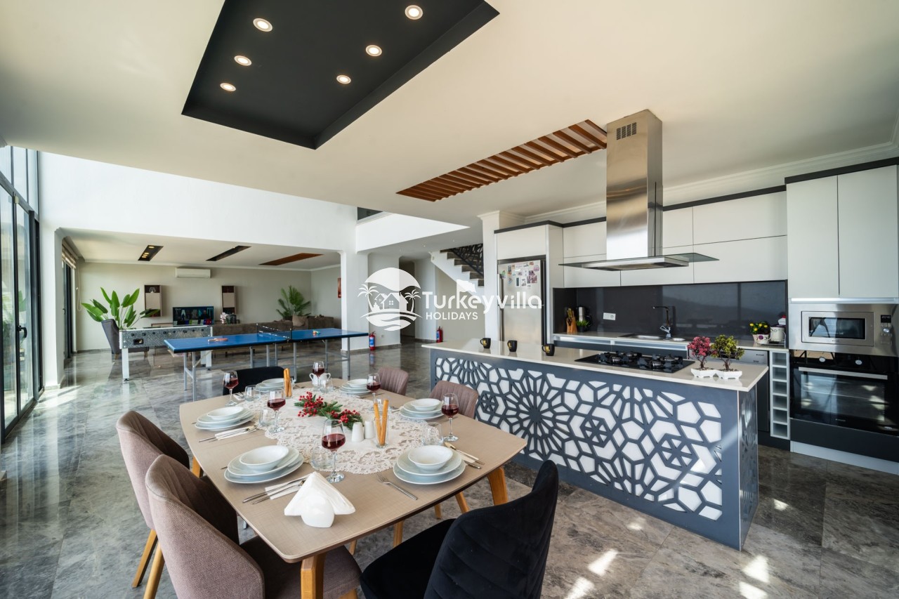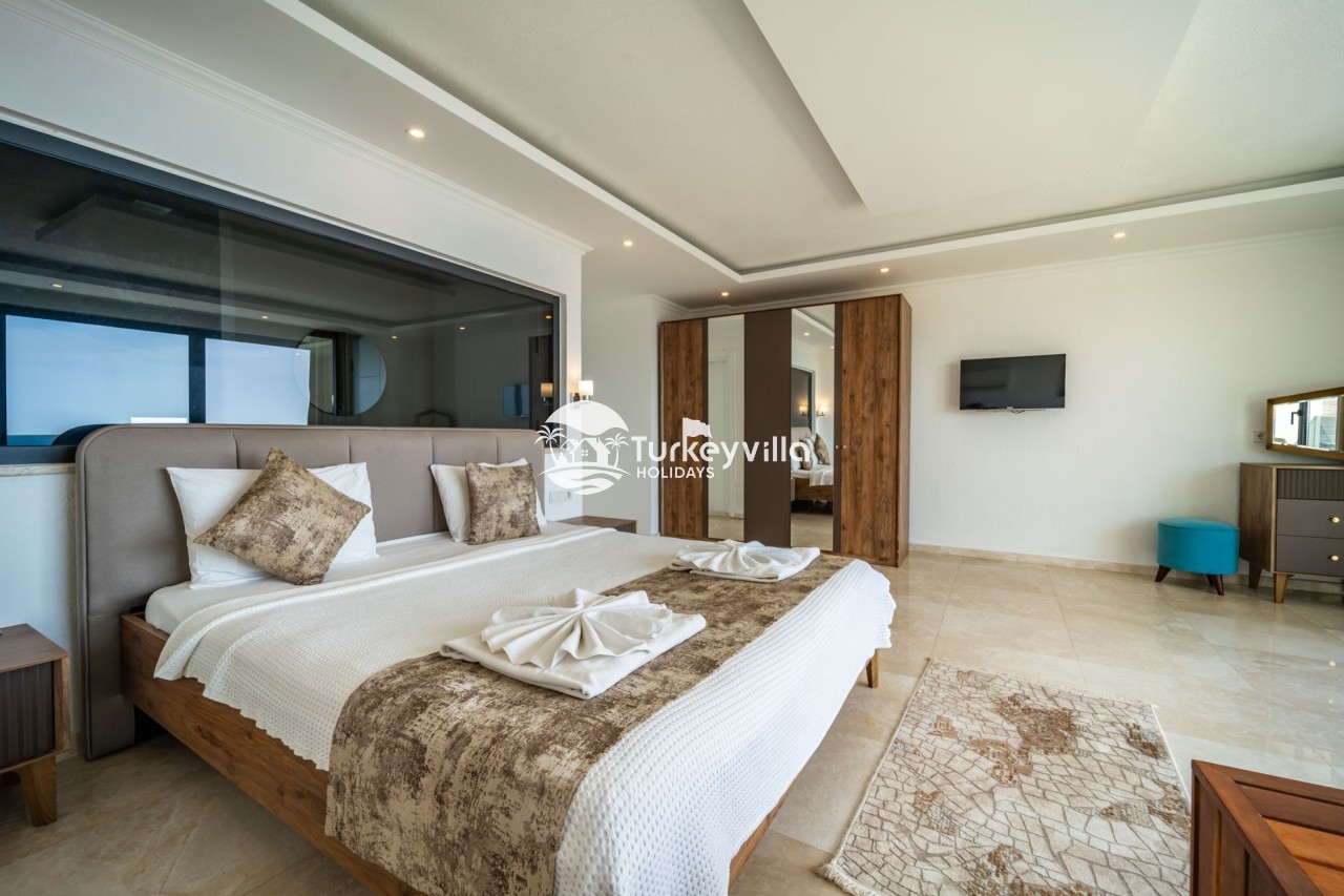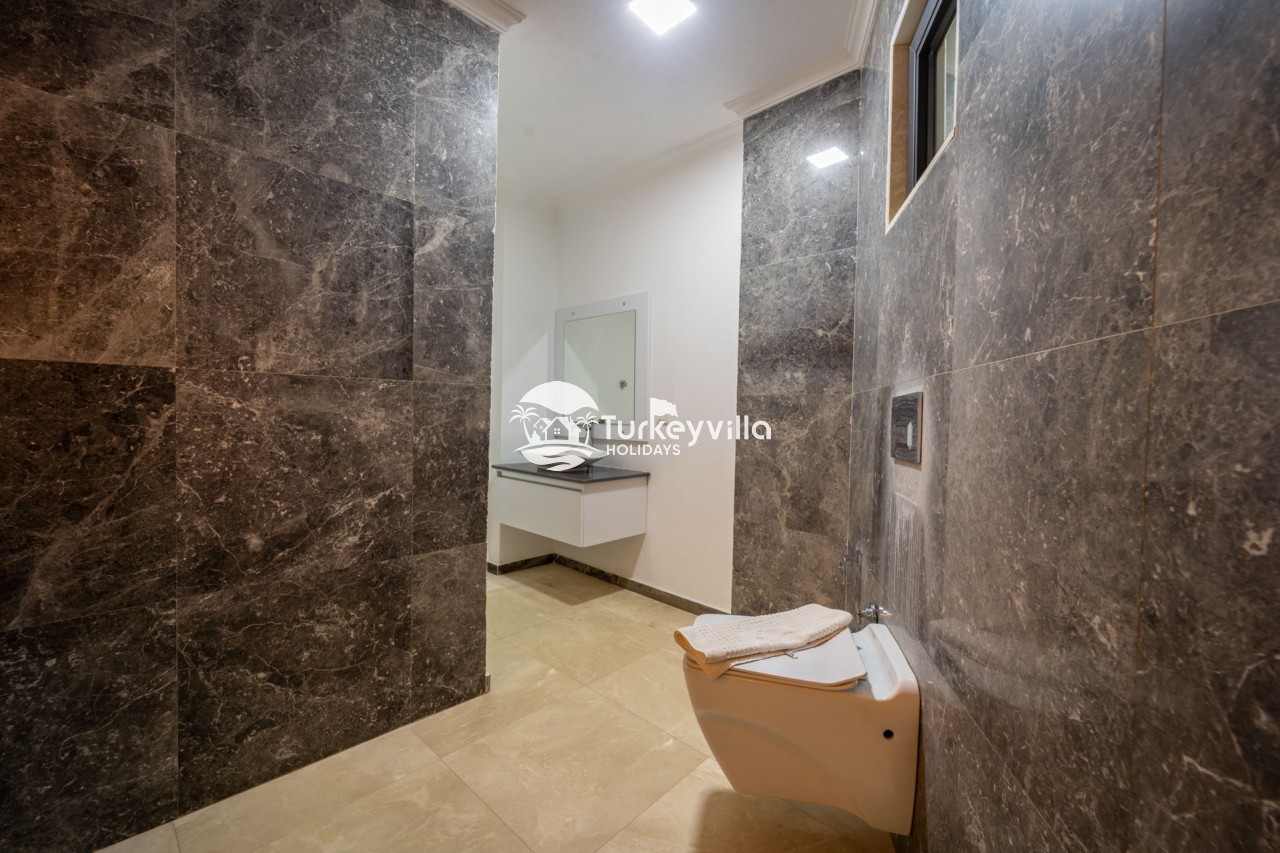 Villa Anıl, stands out as a luxury villa in the Kördere region of Kalkan, in a peaceful environment surrounded by nature, with a unique sea view. This special villa is a perfect option for those looking for a quiet holiday. Luxurious facilities such as an infinity pool, Turkish bath, sauna and jacuzzi are designed to offer comfort and convenience to their guests.