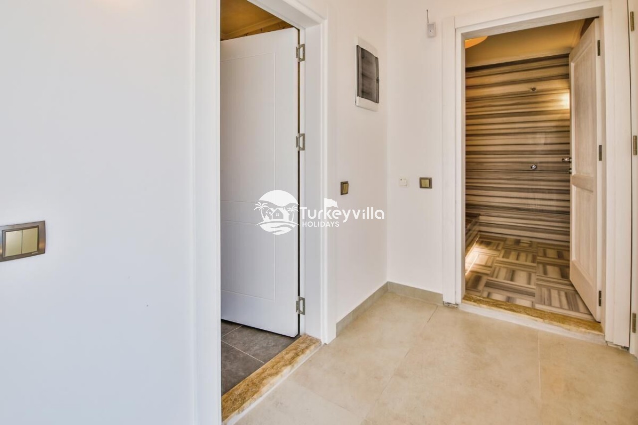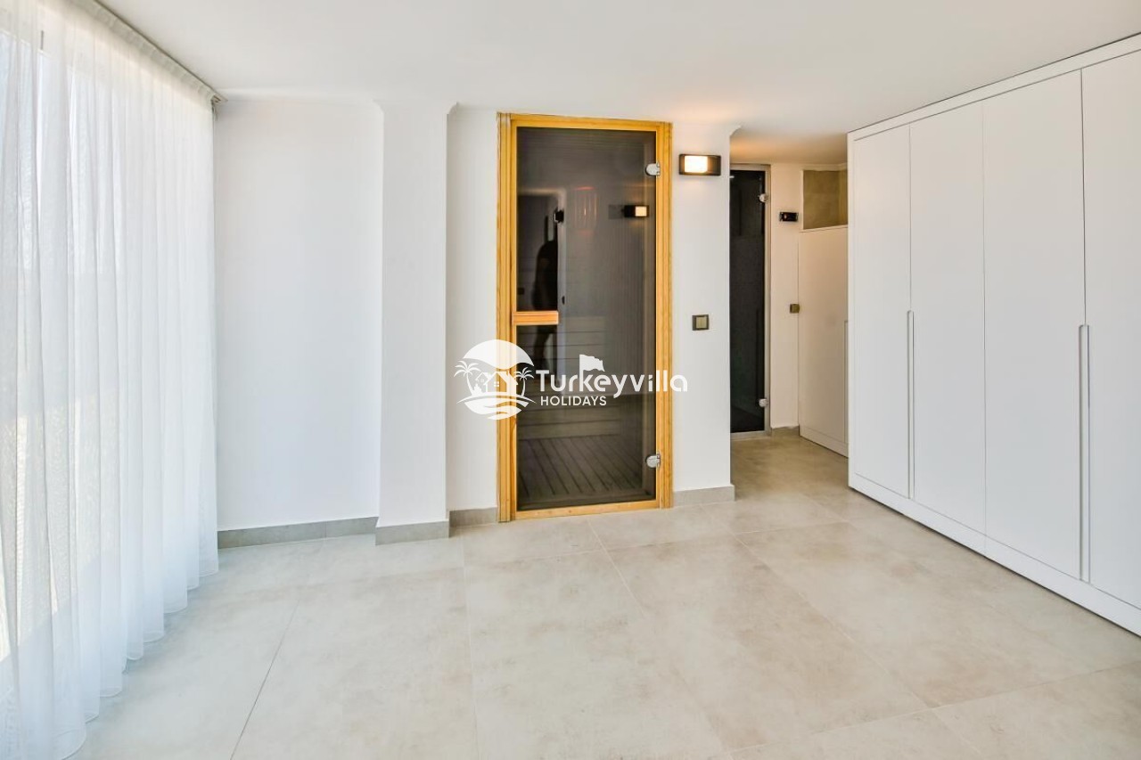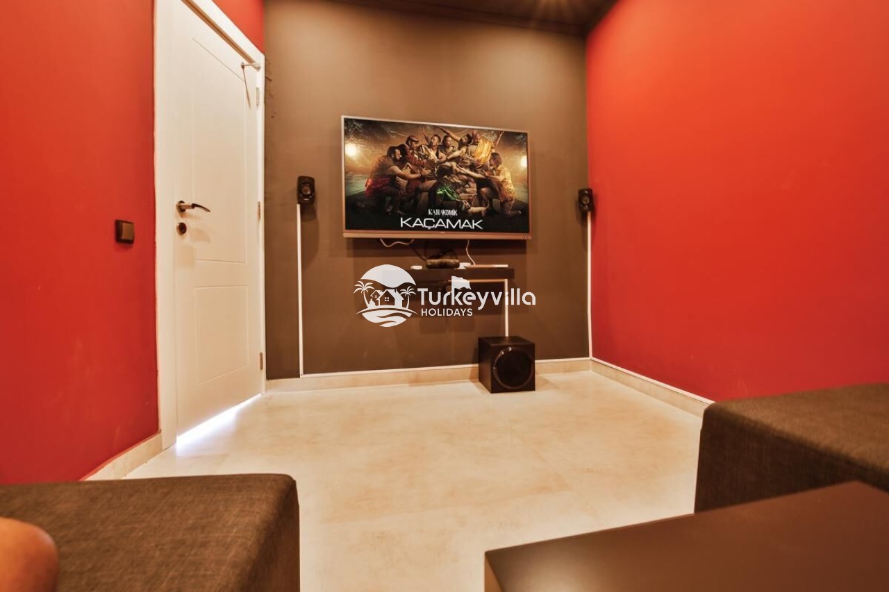 Antalya’s tourism center is located in the Kördere district of Kalkan. It has been designed with honeymoon couples in mind and can accommodate 2 people in a single room. Our villa, which stands out with its magnificent panoramic sea view, offers its guests a wonderful holiday opportunity. It is an ideal villa for honeymooners and conservative families. Villa Arma is a suitable option for our guests who want to spend a holiday away from sight. The villa has been designed with all the details in mind. There is a sauna, steam room, Turkish bath, cinema room (Android TV and 5+1 sound system are available).