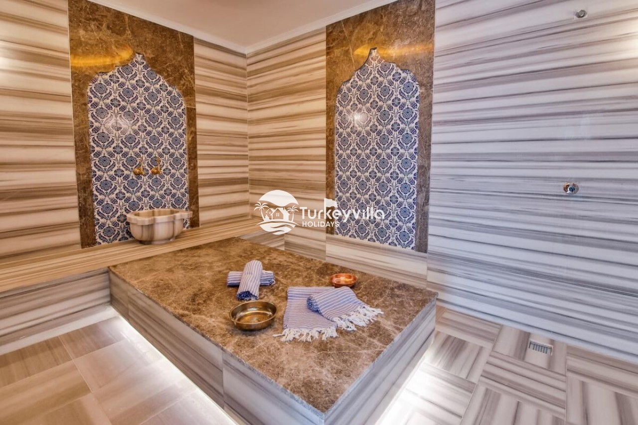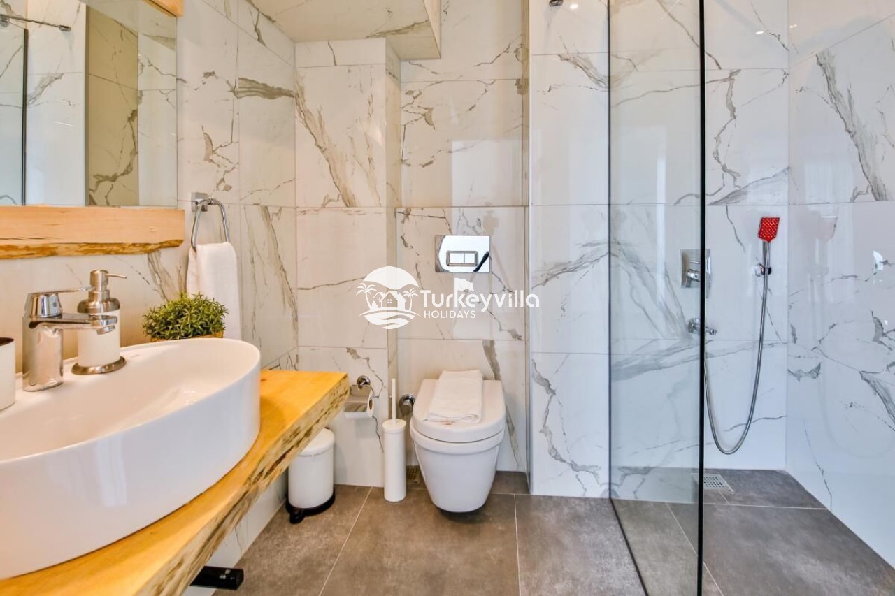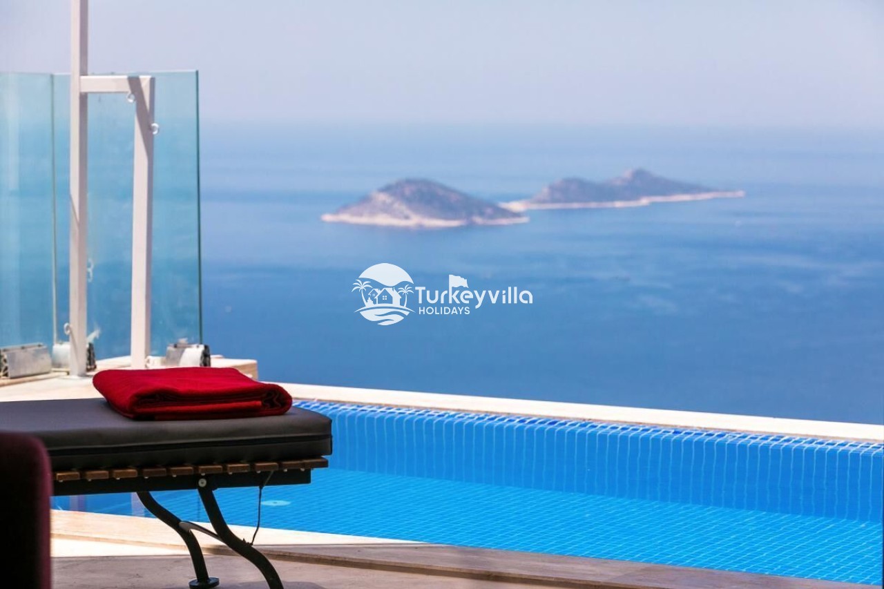 Antalya’s tourism center is located in the Kördere district of Kalkan. It has been designed with honeymoon couples in mind and can accommodate 2 people in a single room. Our villa, which stands out with its magnificent panoramic sea view, offers its guests a wonderful holiday opportunity. It is an ideal villa for honeymooners and conservative families. Villa Arma is a suitable option for our guests who want to spend a holiday away from sight. The villa has been designed with all the details in mind. There is a sauna, steam room, Turkish bath, cinema room (Android TV and 5+1 sound system are available).