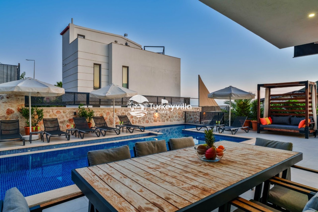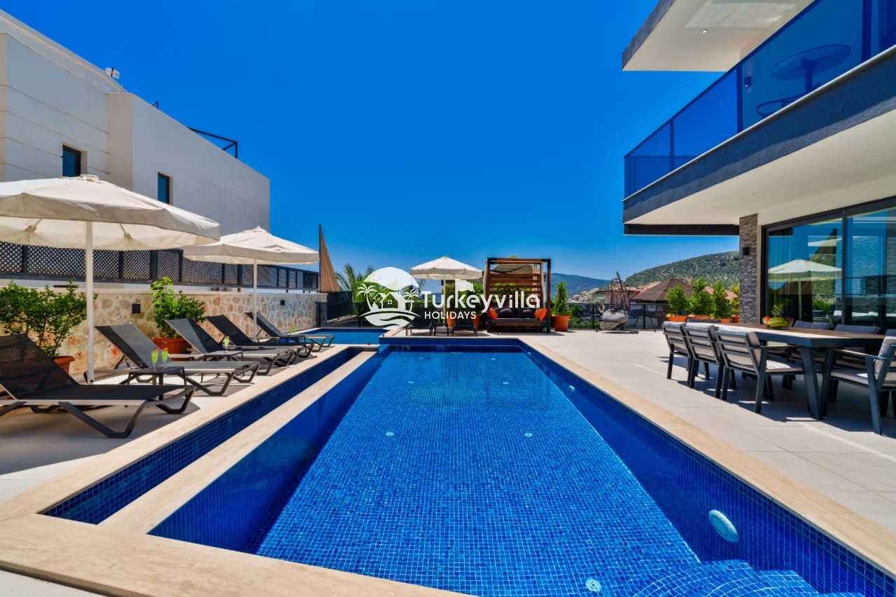 Villa Cassa, is a luxury holiday villa located in the central Kızıltaş area of Kalkan, offering breathtaking sea views and elegant design. With 4 bedrooms and a capacity for 8 guests, it’s the perfect choice for large families or groups of friends seeking comfort, luxury, and convenience.