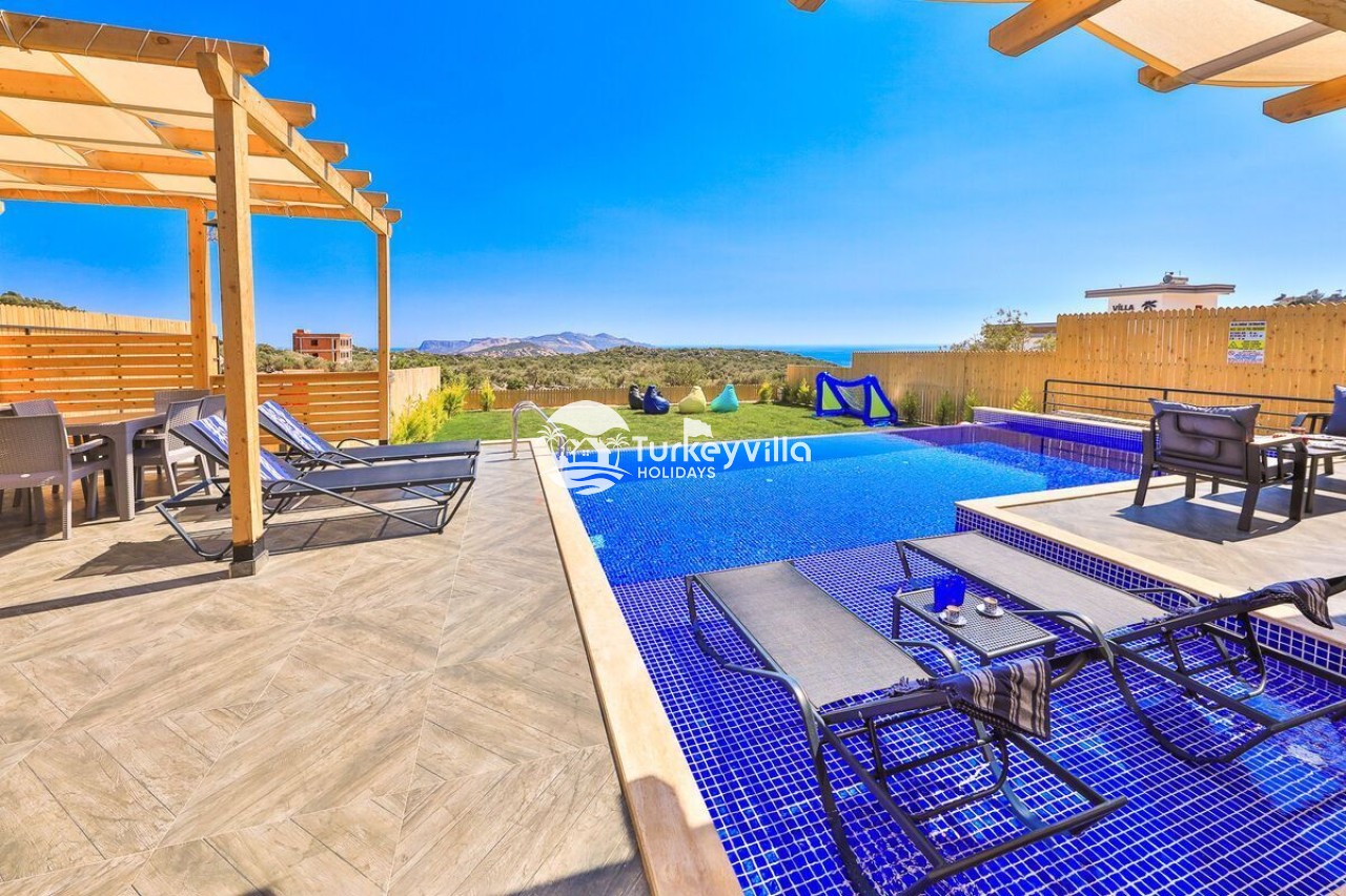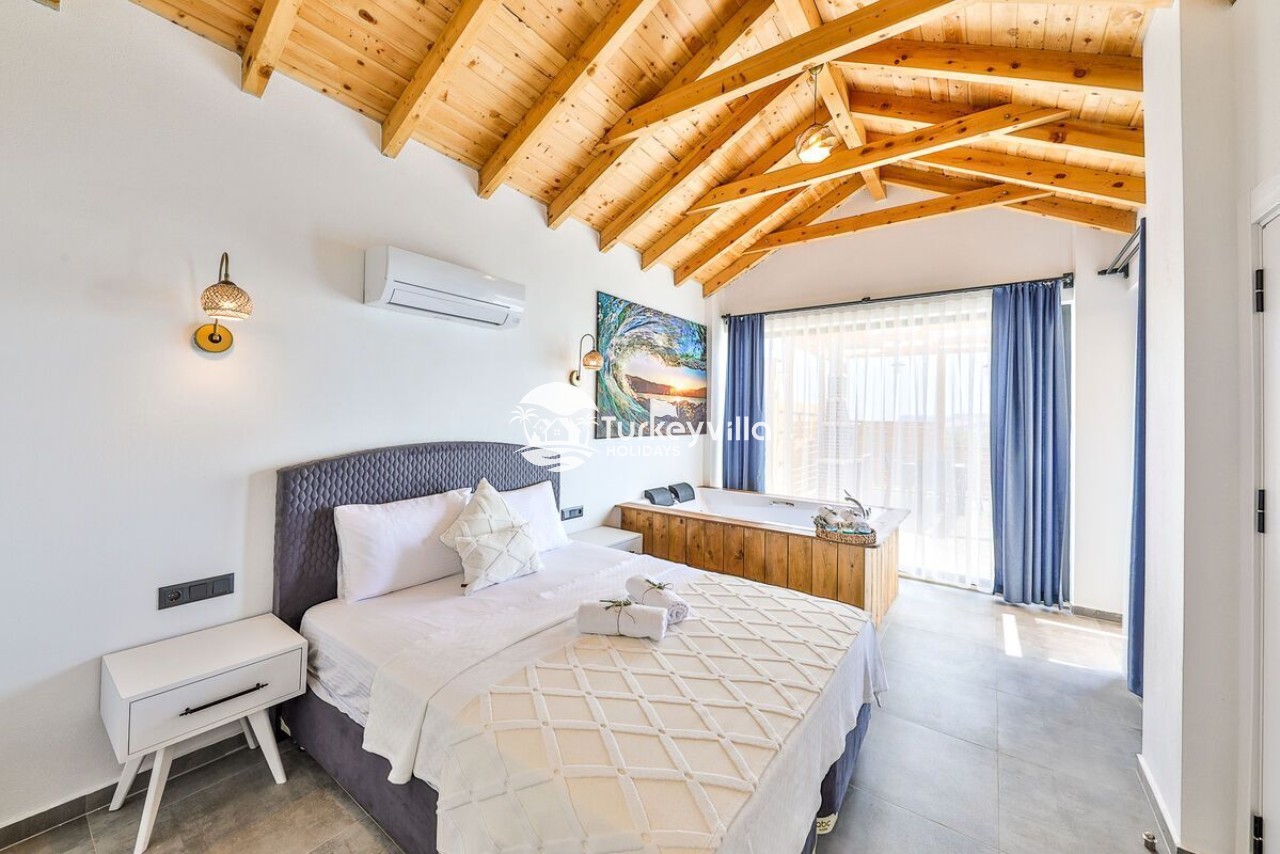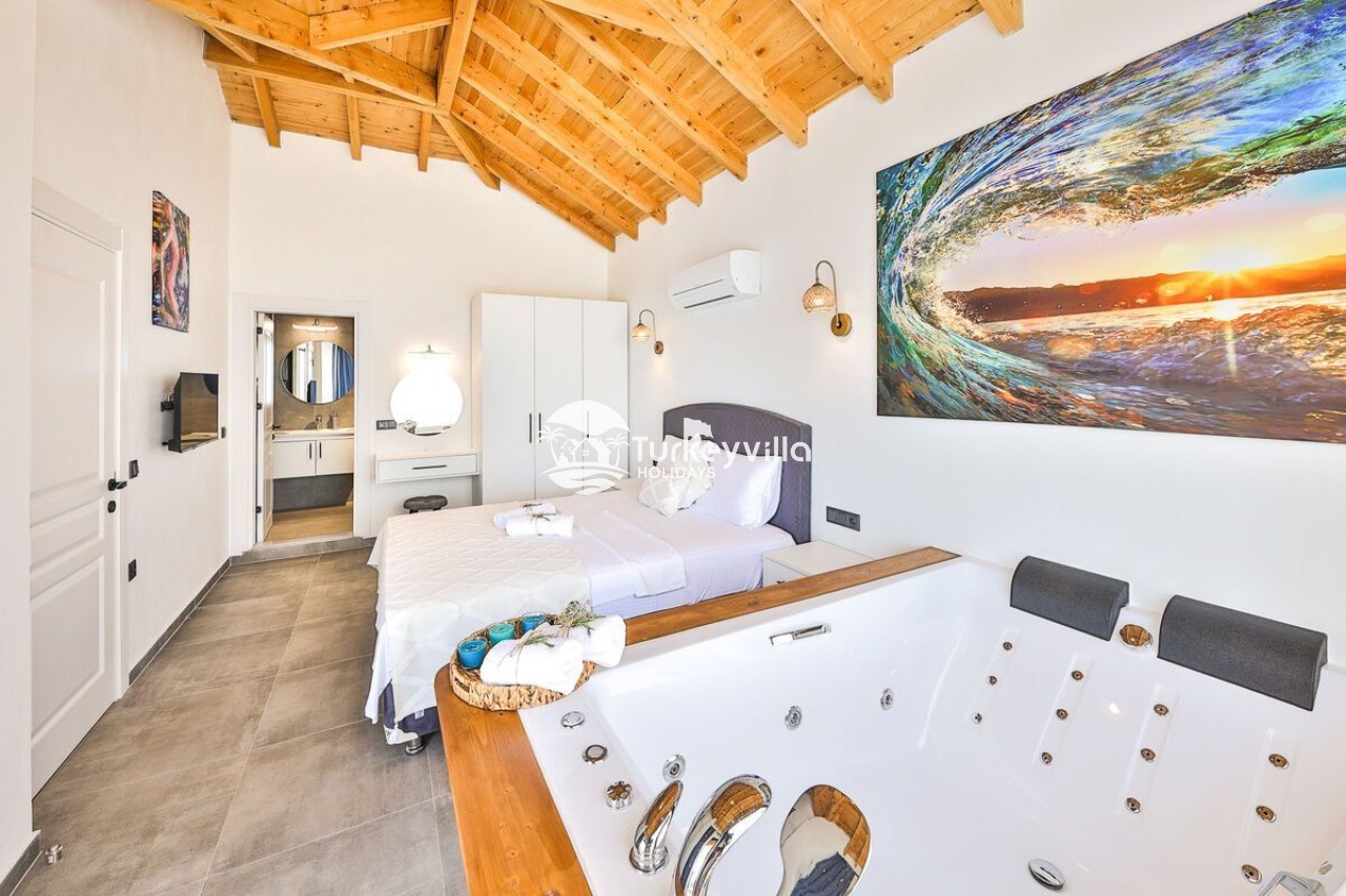 Villa Çıtıpıt is located in Kaş Gökseki area. Its construction was completed in July 2022. Located 5 km from the center of Kas, our villa is accompanied by sea and nature views. It is extremely modern and spaciously decorated and has a large garden area, pool terrace. There is also a jacuzzi in our villa, which is an ideal option for honeymooners and nuclear families. It has 2 bedrooms and its capacity is limited to 4 people.