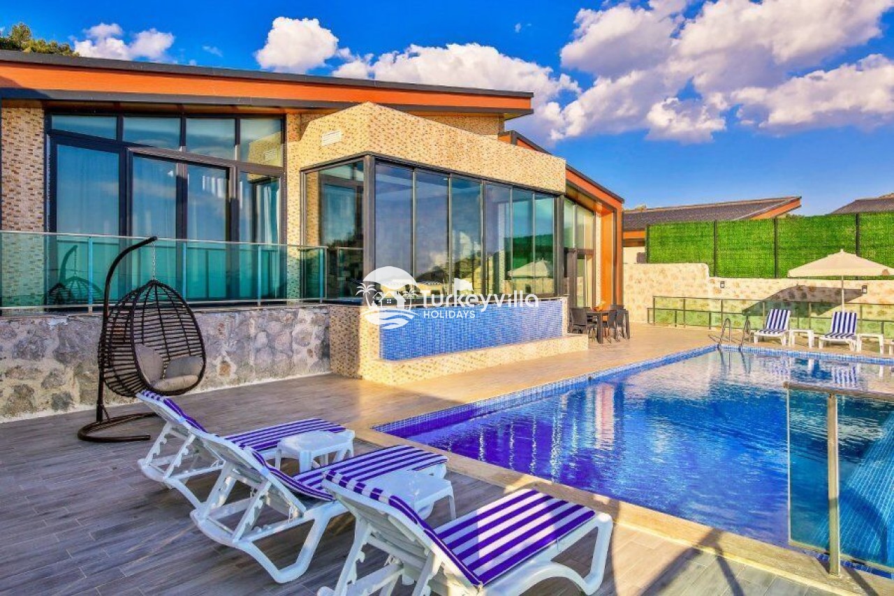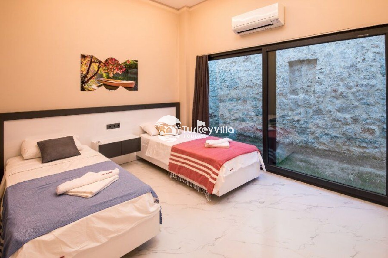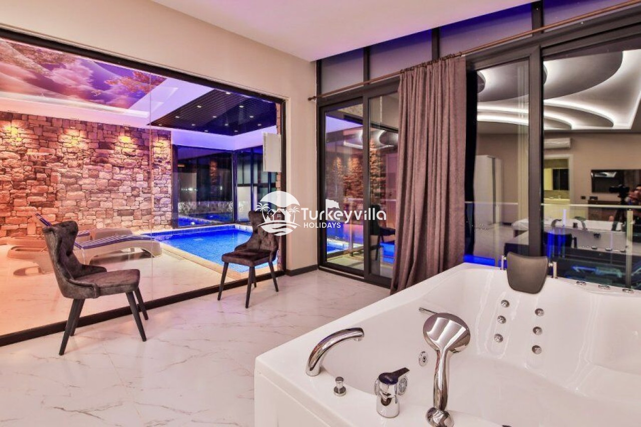 Villa Kalis 2 is one of the protected villas in Kalkan Islamlar Region with 2 bedrooms for 4 people, en-suite bathroom in each room. The garden terrace and private pool are ideal for conservative families and groups of crowded friends who don’t seem to be from the outside. The villa has a heated pool and a master bedroom with jacuzzi. Designed with modern furniture and American kitchen concept.
