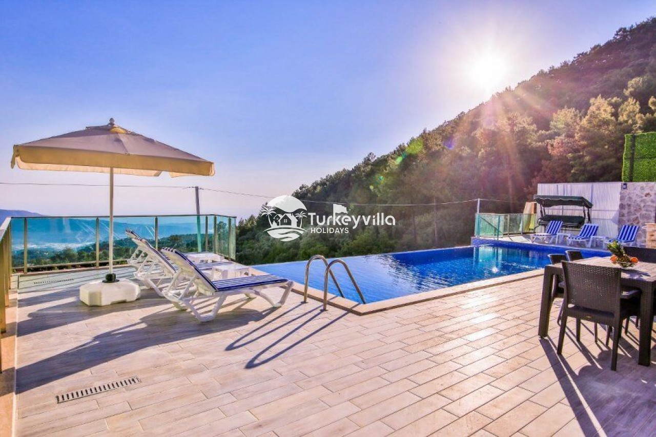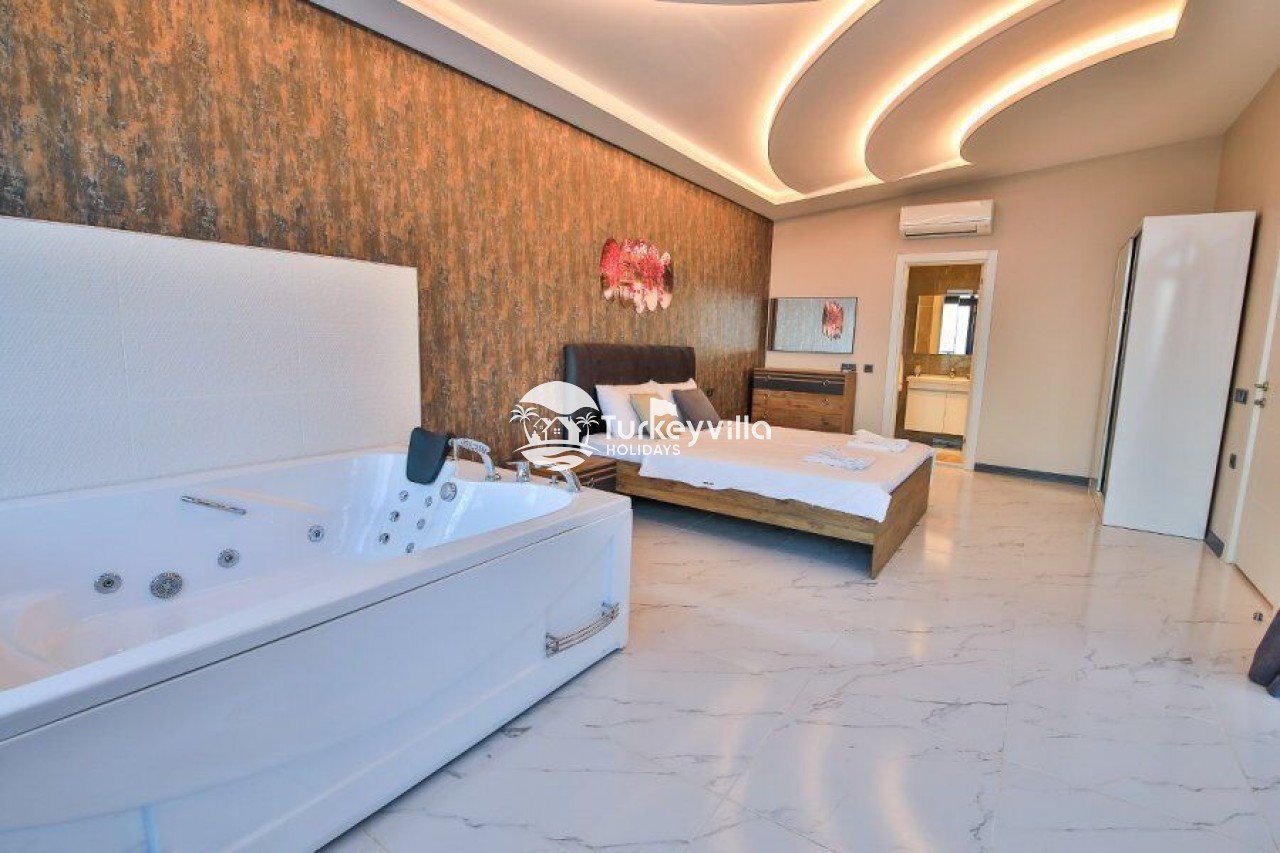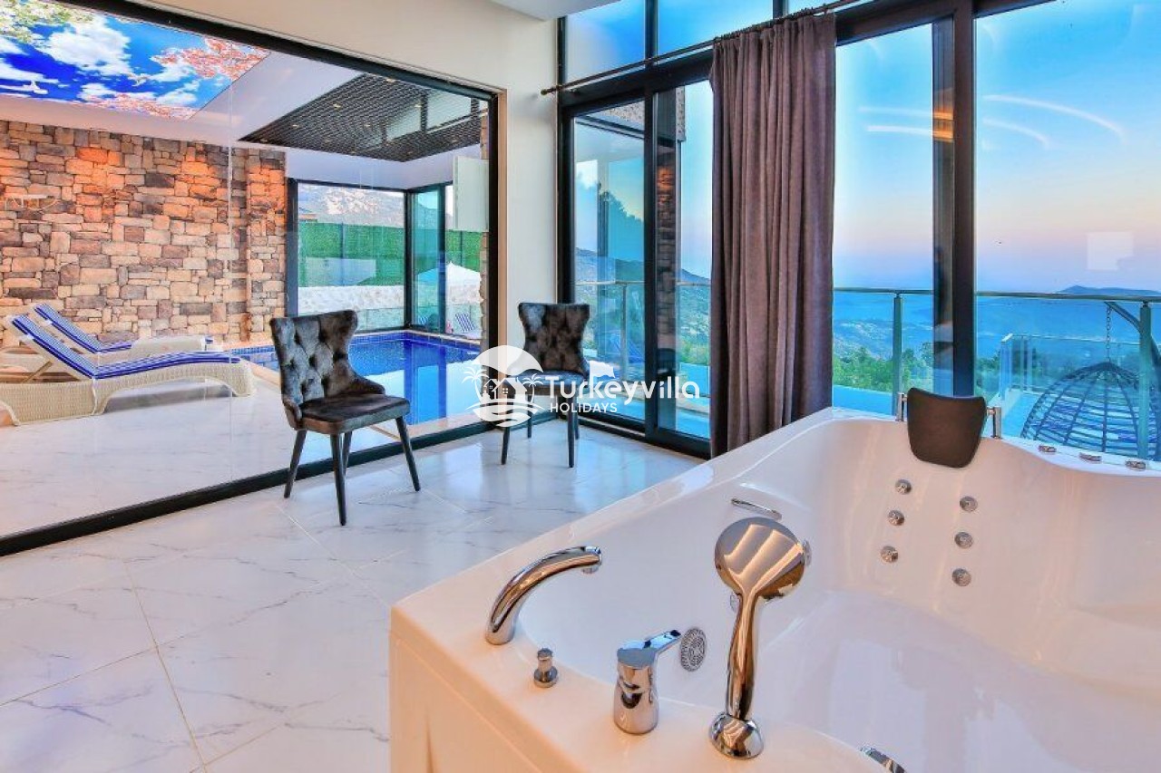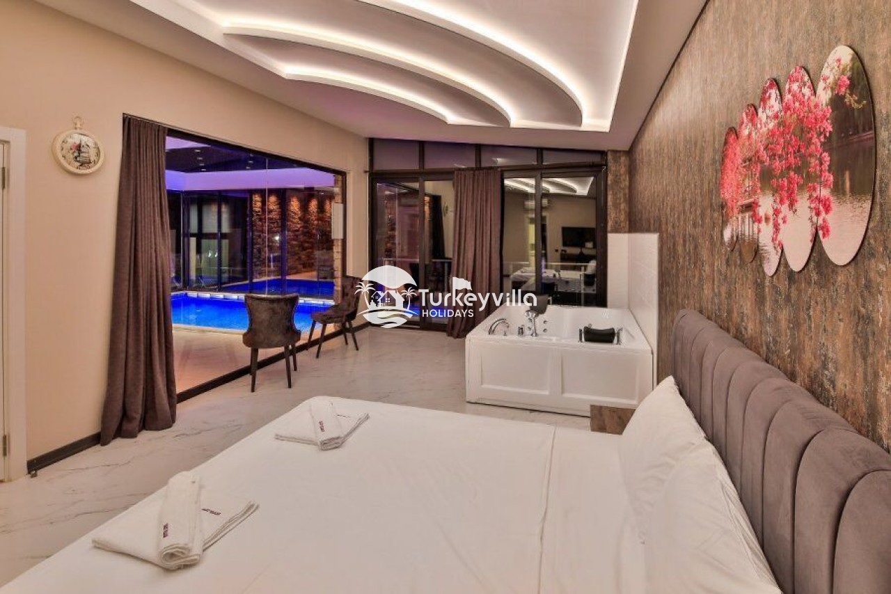 Villa Kalis 2 is one of the protected villas in Kalkan Islamlar Region with 2 bedrooms for 4 people, en-suite bathroom in each room. The garden terrace and private pool are ideal for conservative families and groups of crowded friends who don’t seem to be from the outside. The villa has a heated pool and a master bedroom with jacuzzi. Designed with modern furniture and American kitchen concept.