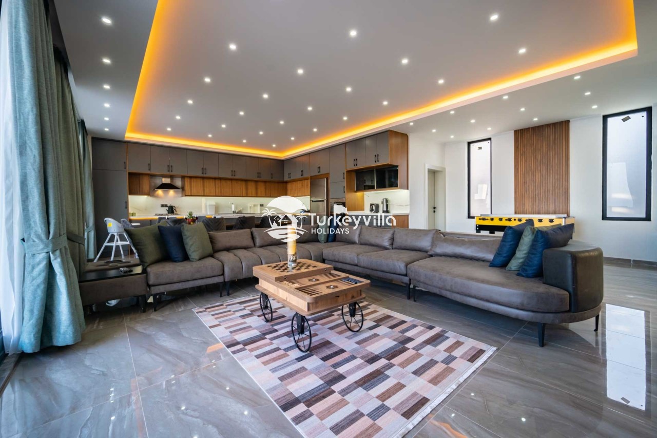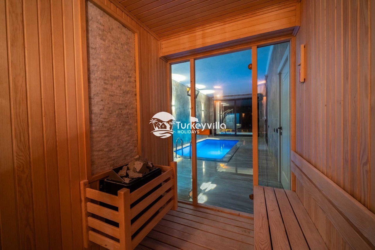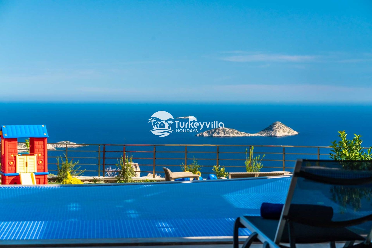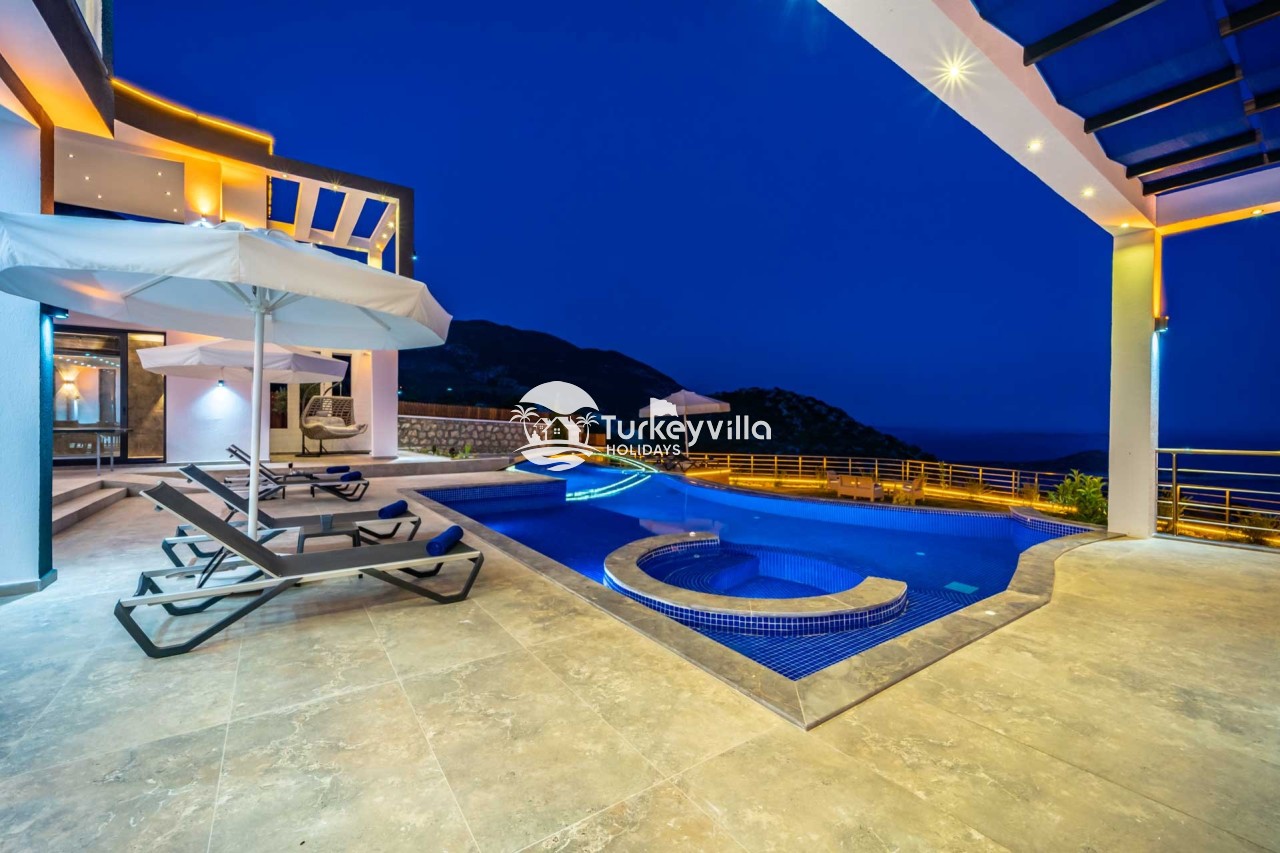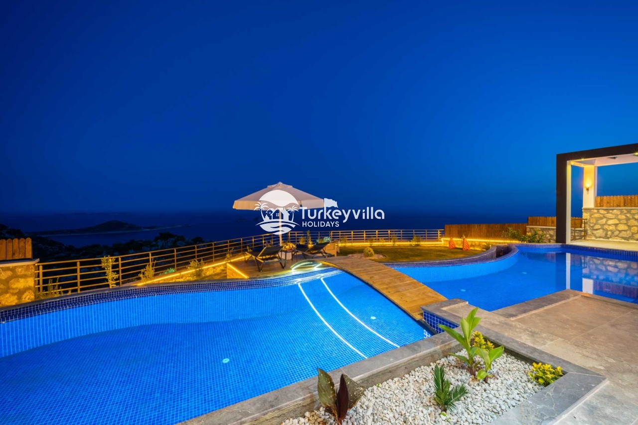 Villa Kenan Our ultra-luxury rental villa, built in 2023 in the Kalkan Ulugöl region, has 6 bedrooms and a capacity of 11 people. It is an ideal option for large families and groups of friends. Our villa, which has an uninterrupted sea view, offers you privileges within the villa. In addition to having a Sauna, Turkish Bath, Double Jacuzzi and Indoor Heating pool and a jacuzzi in the outdoor pool, the garden area where you can have pleasant moments, table tennis and table football, and the children’s playground have been carefully prepared for your children to enjoy their holiday. Villa Kenan, Kalkan villa, Kalkan rental villas, large family villas, villas with children’s pools, villas with jacuzzis, villas with sea views, villas with conservative pools, villas with heated pools, villas with private pools, villas with children’s playgrounds are among the options.