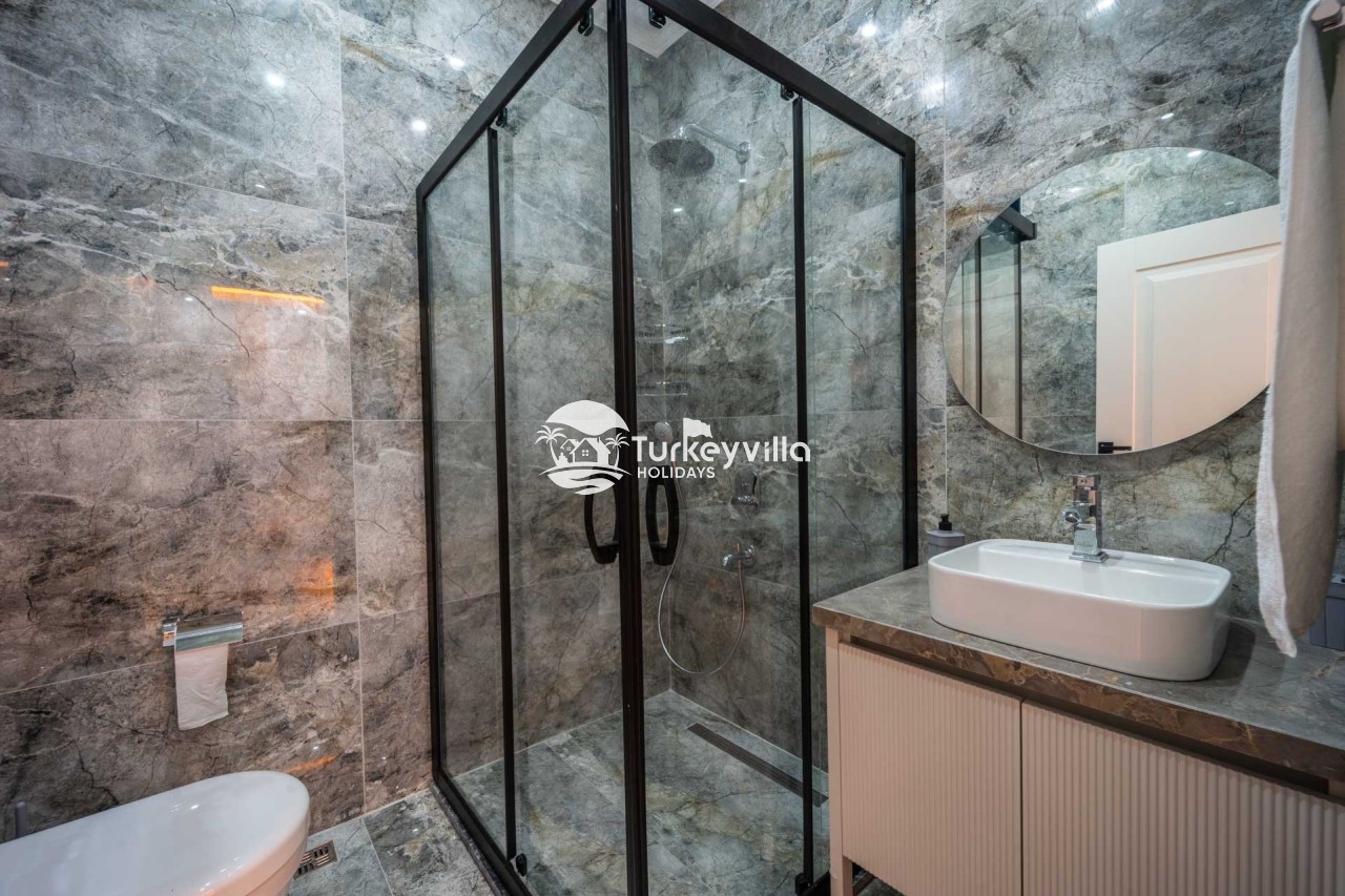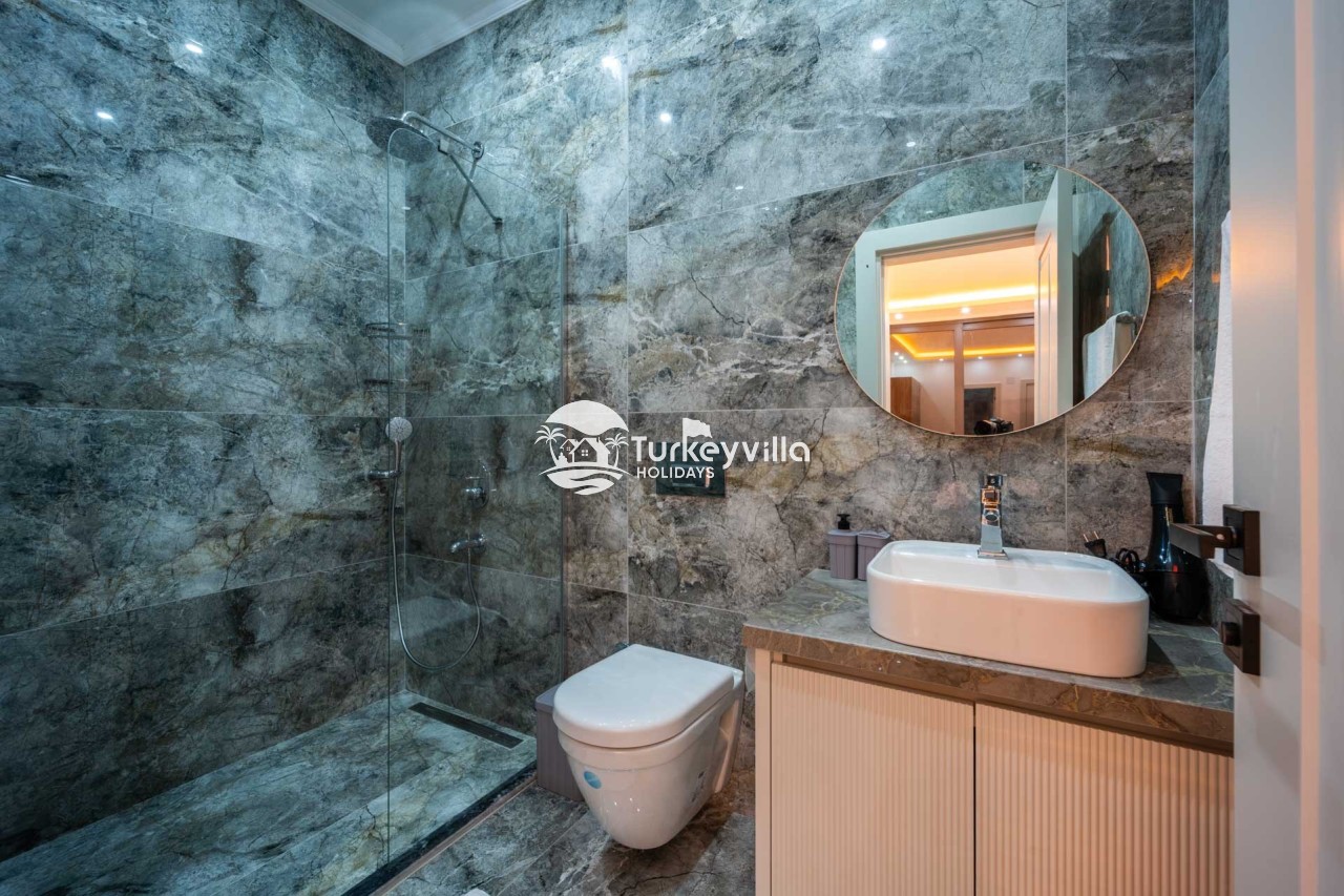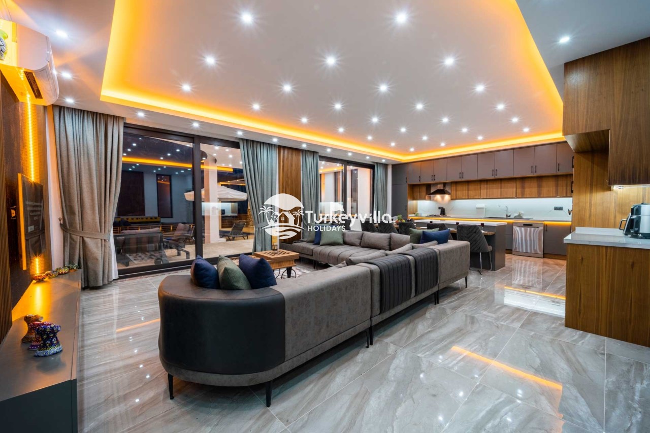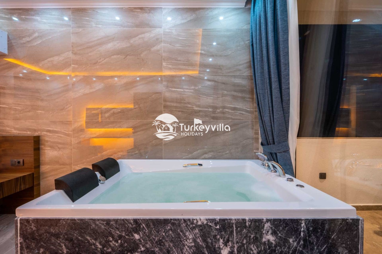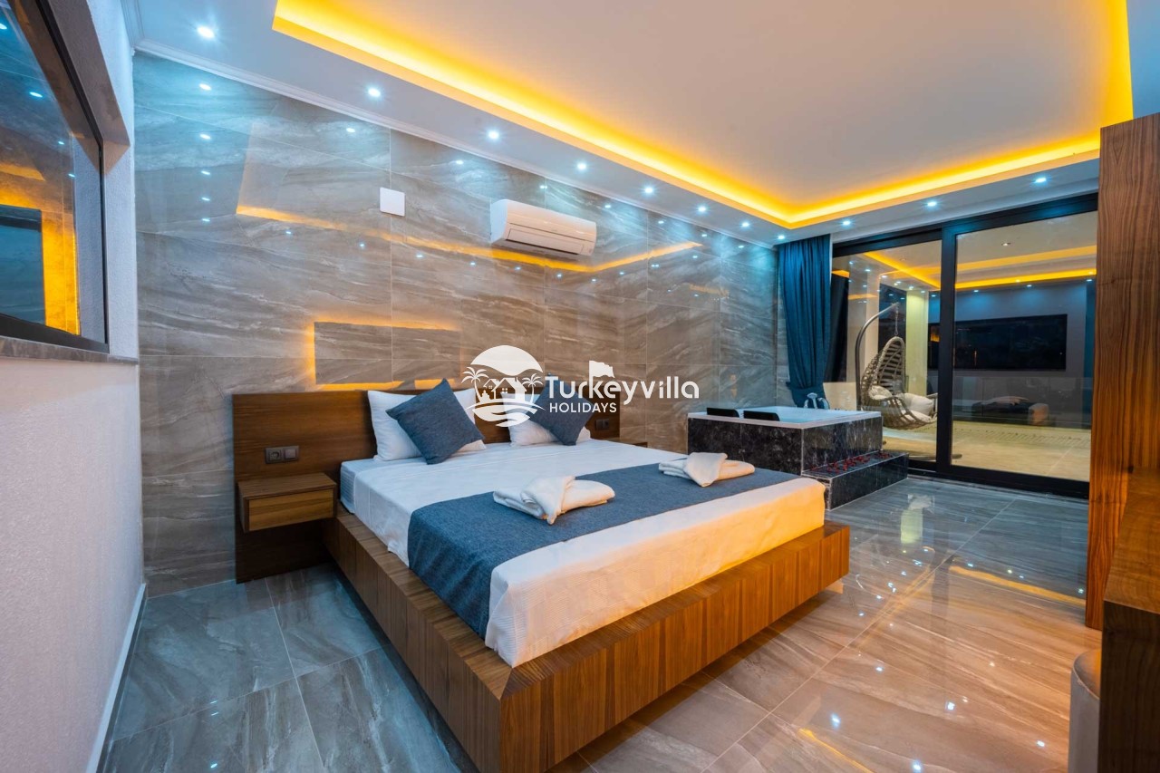 Villa Kenan Our ultra-luxury rental villa, built in 2023 in the Kalkan Ulugöl region, has 6 bedrooms and a capacity of 11 people. It is an ideal option for large families and groups of friends. Our villa, which has an uninterrupted sea view, offers you privileges within the villa. In addition to having a Sauna, Turkish Bath, Double Jacuzzi and Indoor Heating pool and a jacuzzi in the outdoor pool, the garden area where you can have pleasant moments, table tennis and table football, and the children’s playground have been carefully prepared for your children to enjoy their holiday. Villa Kenan, Kalkan villa, Kalkan rental villas, large family villas, villas with children’s pools, villas with jacuzzis, villas with sea views, villas with conservative pools, villas with heated pools, villas with private pools, villas with children’s playgrounds are among the options.