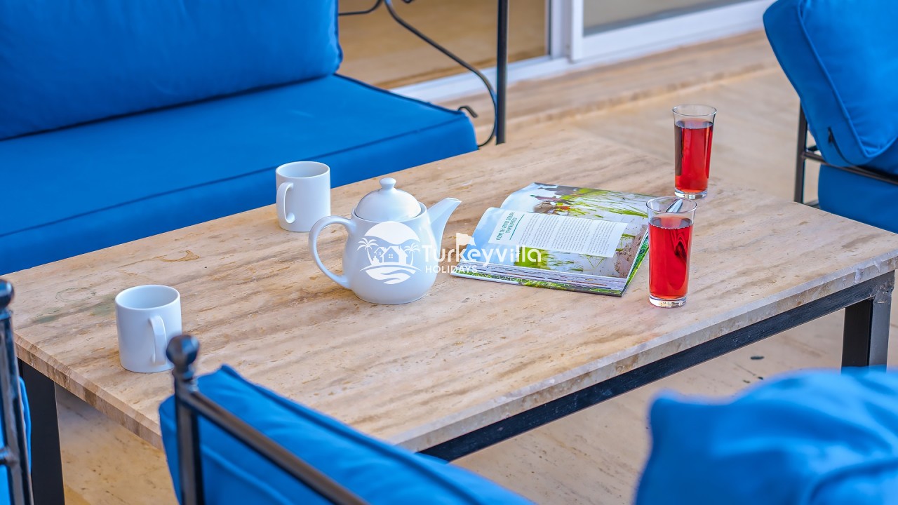 There is a TV / DVD unit and quality sitting and resting groups in the living room. Professional materials are used in the kitchen of the villa and it has a fully equipped kitchen that is equipped to meet your every need.