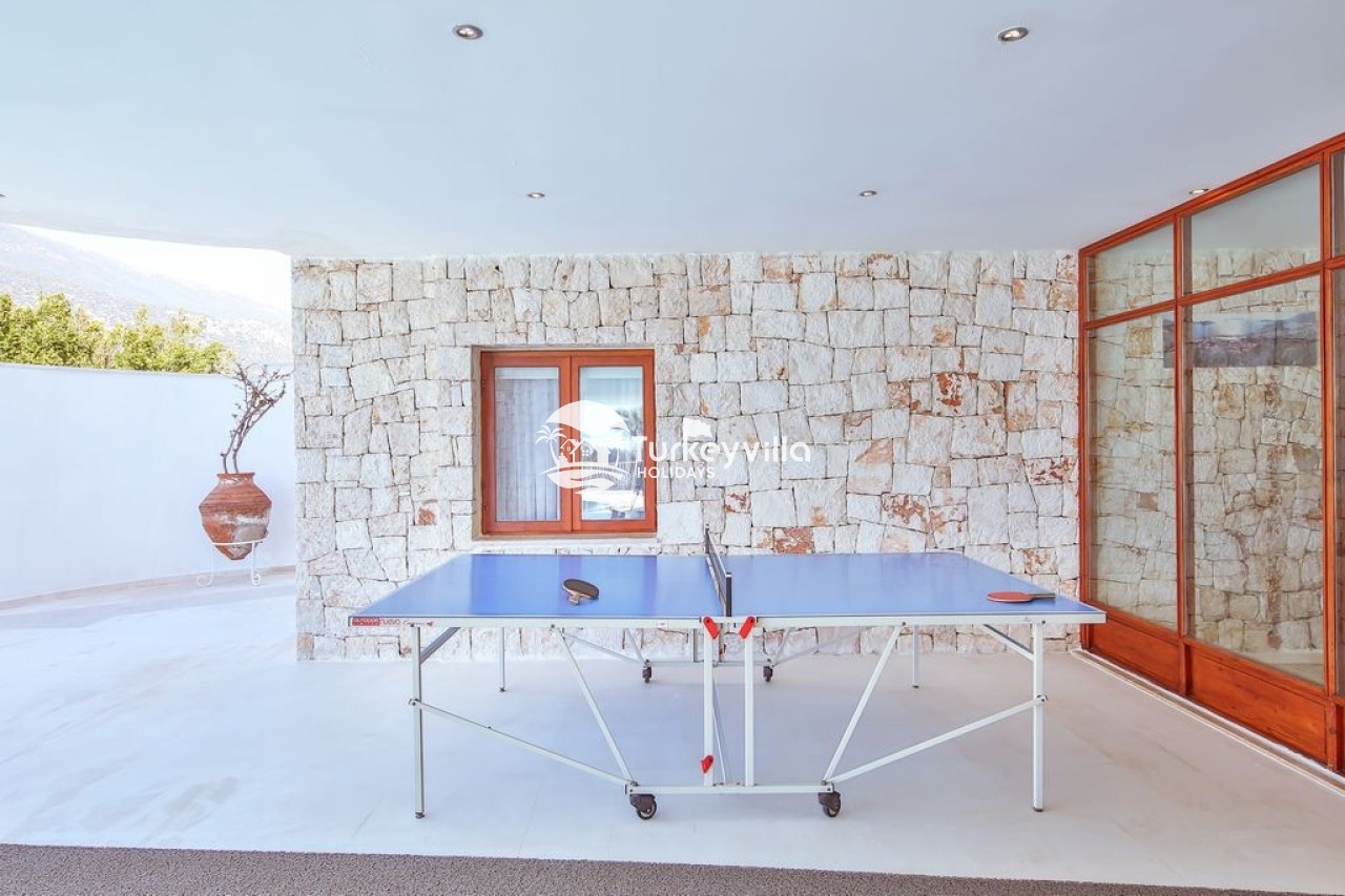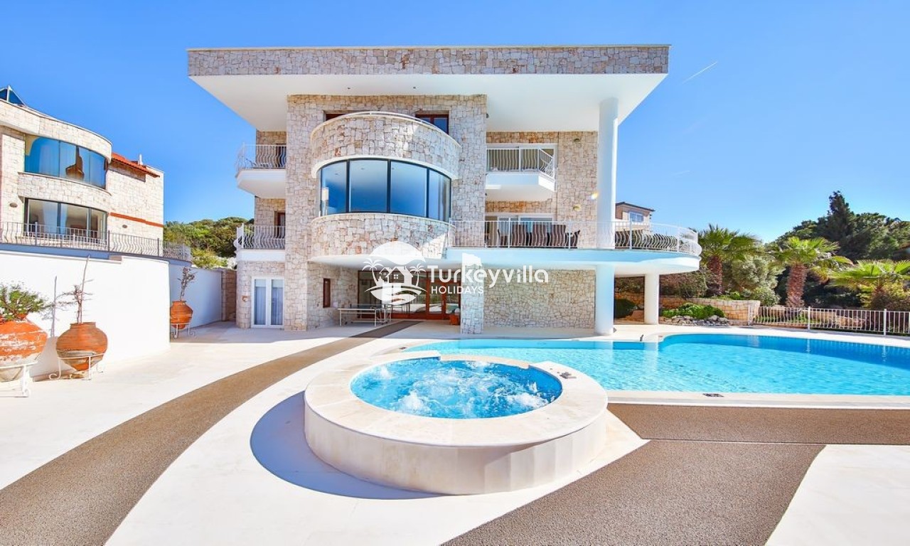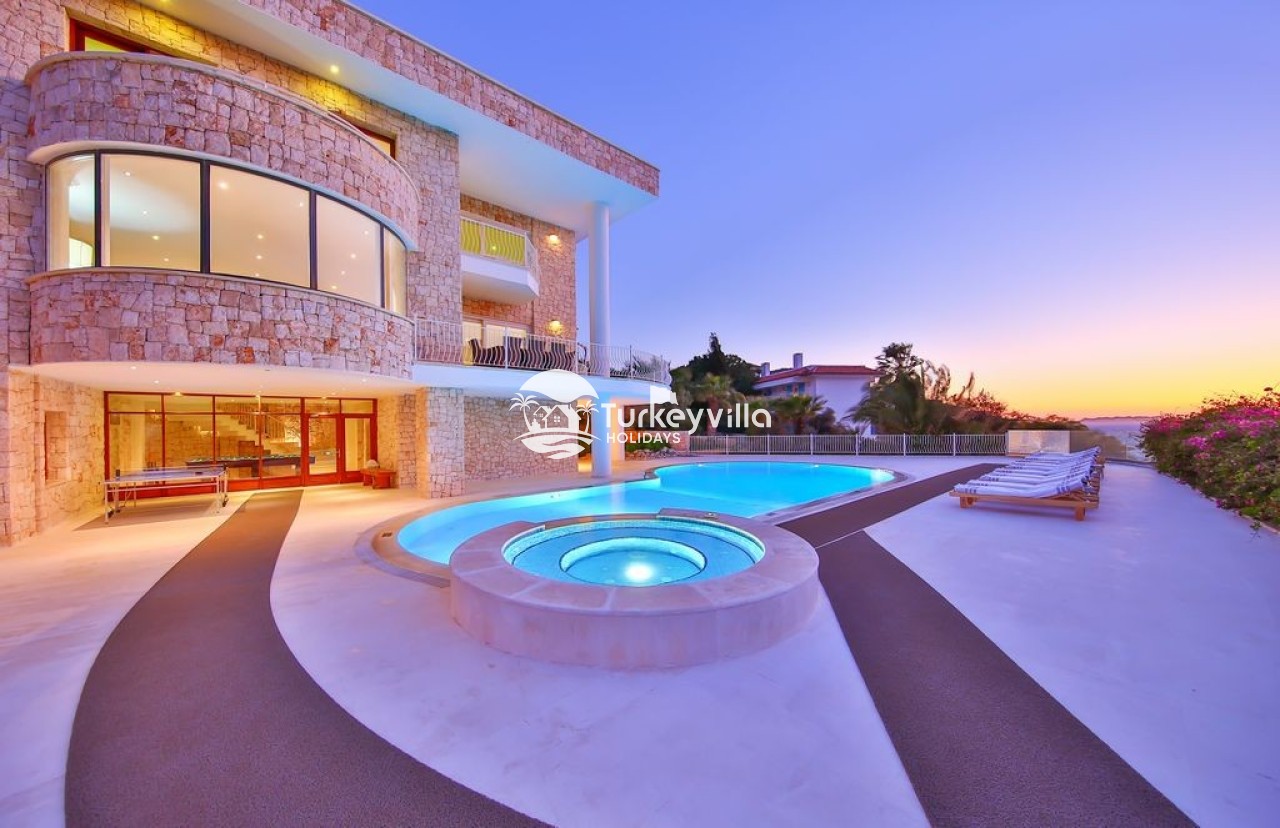 Villa view is a spacious luxury 6 bedroom villa with stylish contemporary interior and furnishings. It is located on the lagoon side of the exclusive Kas peninsula. It is the ideal location to enjoy a holiday with family or a group of friends. The sun terrace and pool, with separate jacuzzi, are perfect for lazy relaxing days. A pool table and a tennis table provide entertainment for more competitive guests.