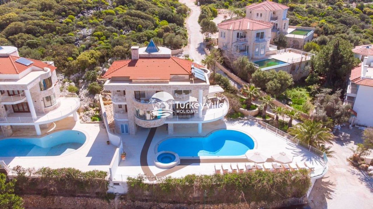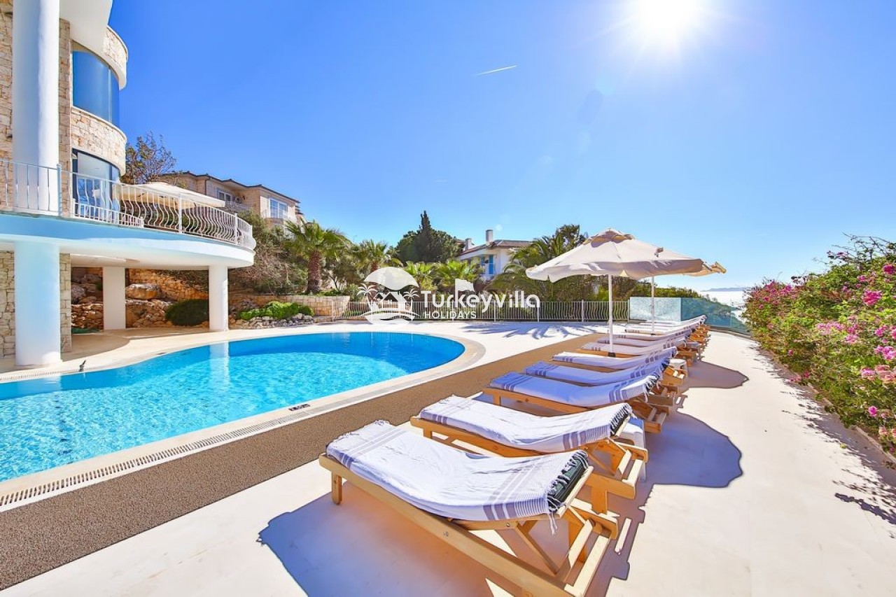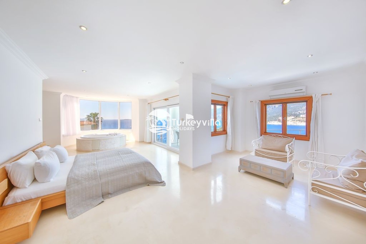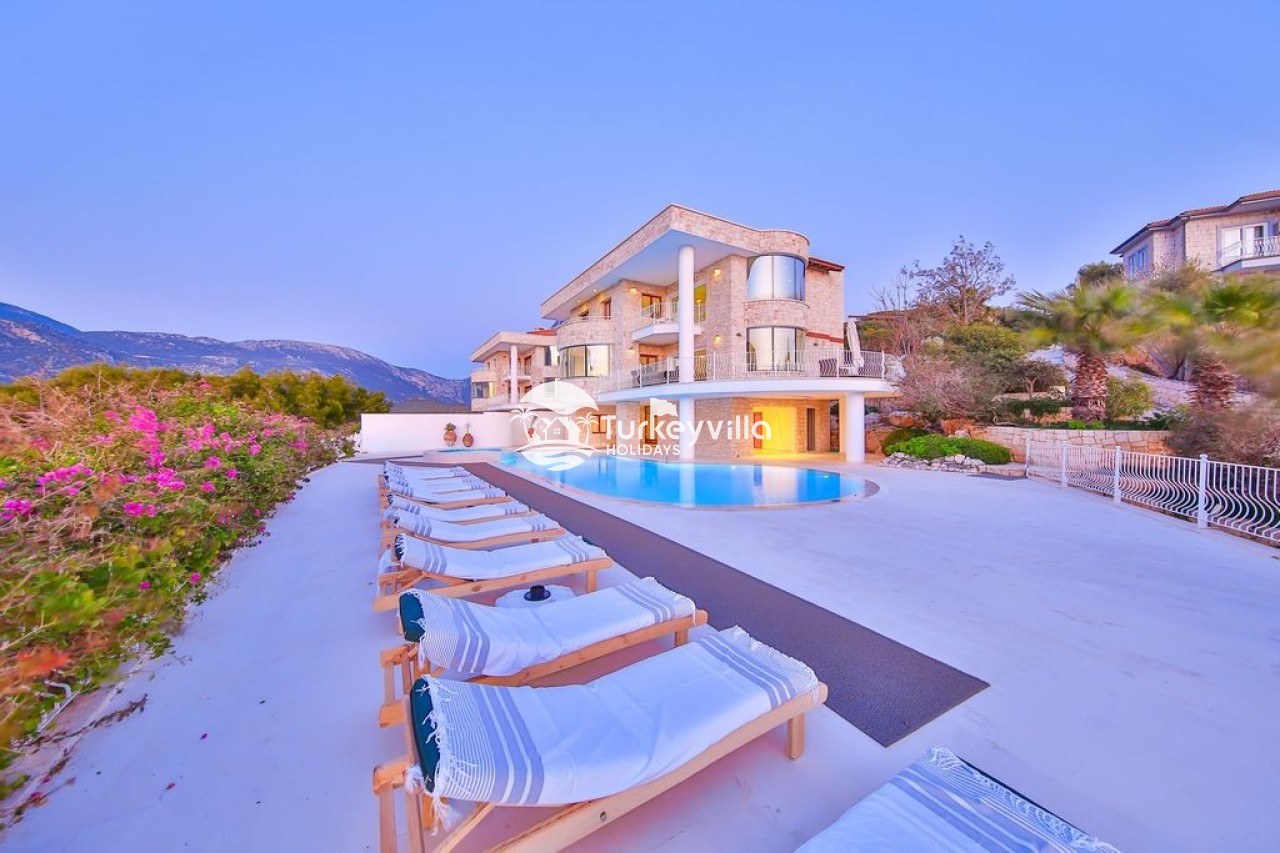Villa view is a spacious luxury 6 bedroom villa with stylish contemporary interior and furnishings. It is located on the lagoon side of the exclusive Kas peninsula. It is the ideal location to enjoy a holiday with family or a group of friends. The sun terrace and pool, with separate jacuzzi, are perfect for lazy relaxing days. A pool table and a tennis table provide entertainment for more competitive guests.
